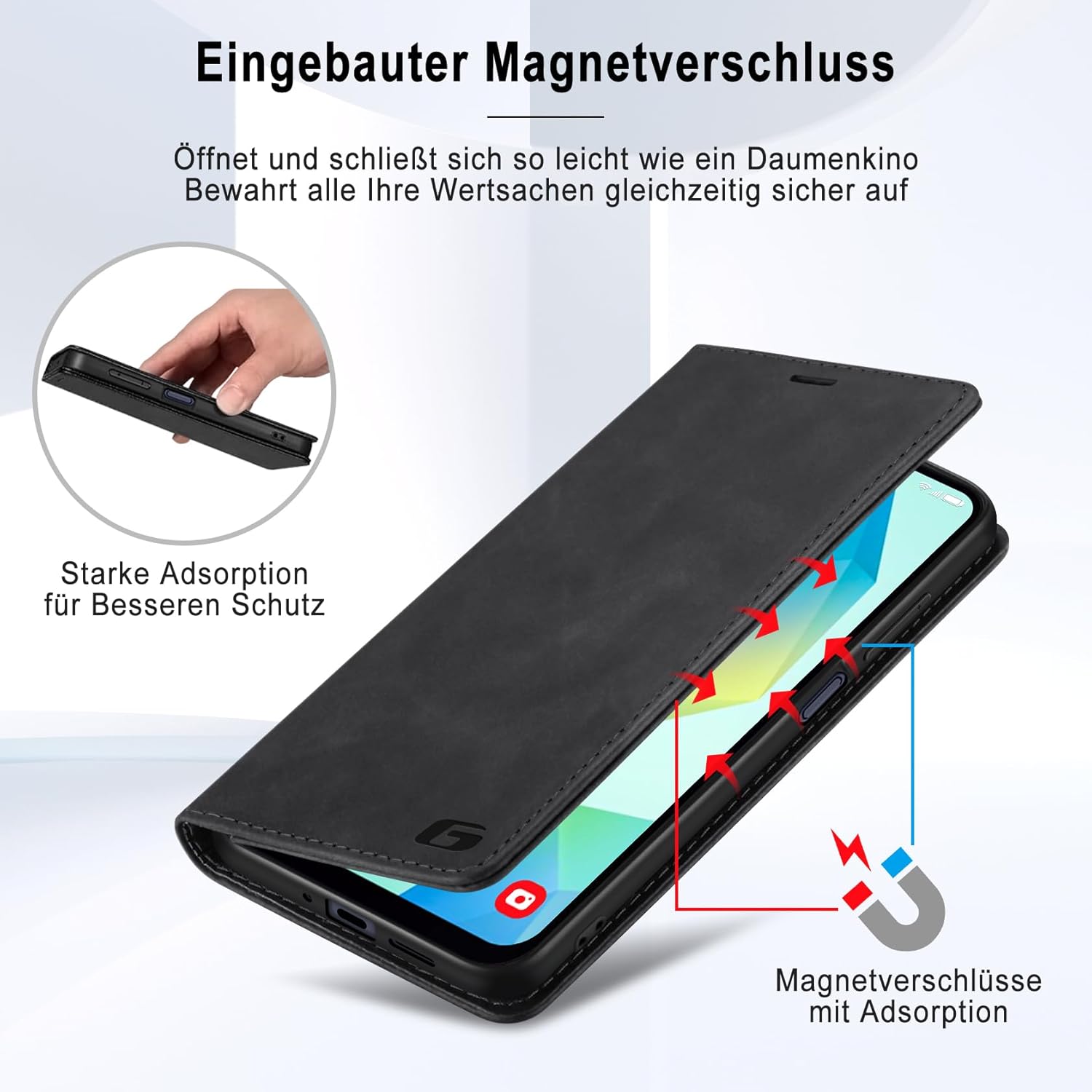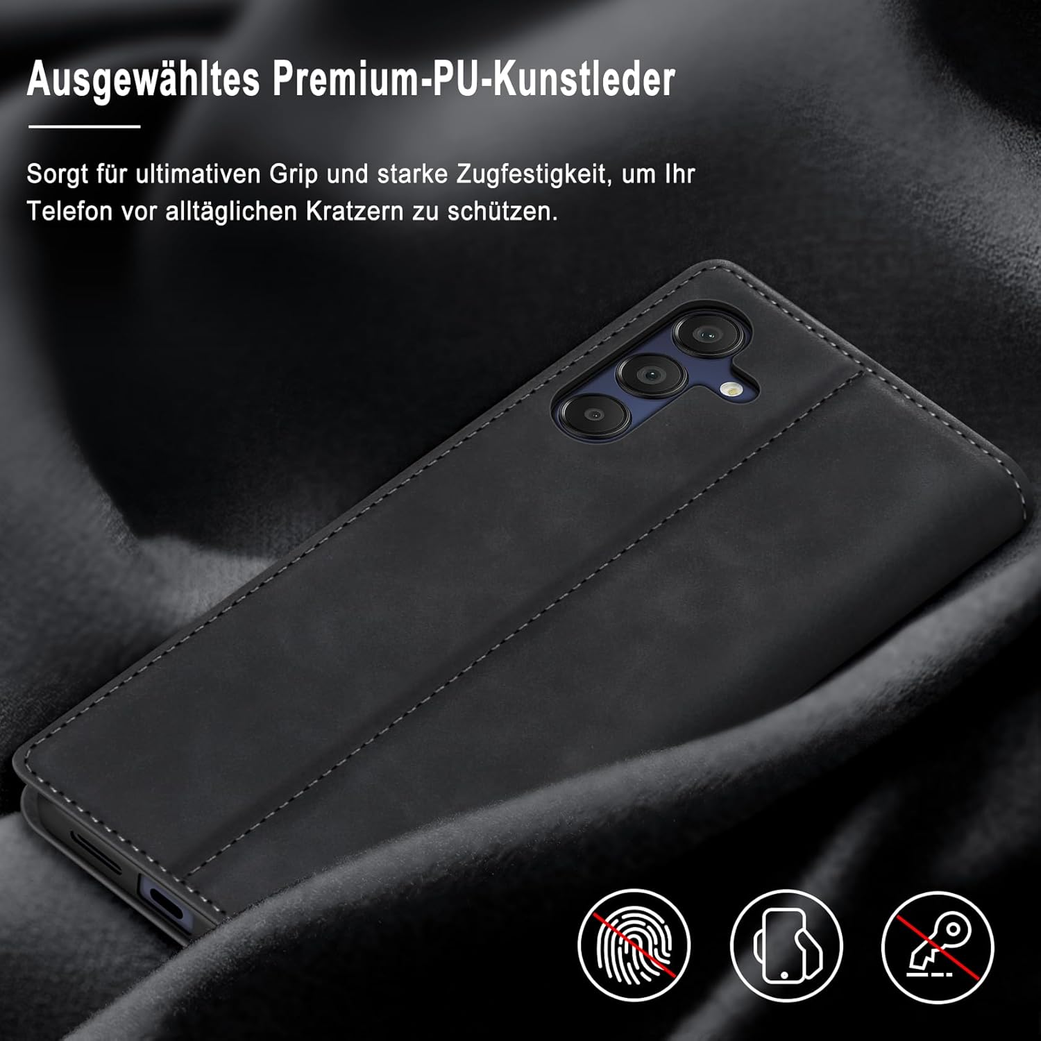 Калъф за мобилен телефон за Samsung Galaxy A16 5G / 4G и 2 протектора за екран, първокласен сгъваем портфейл с магнитен слот за карти, функция стойка, защитен калъф за Samsung A16