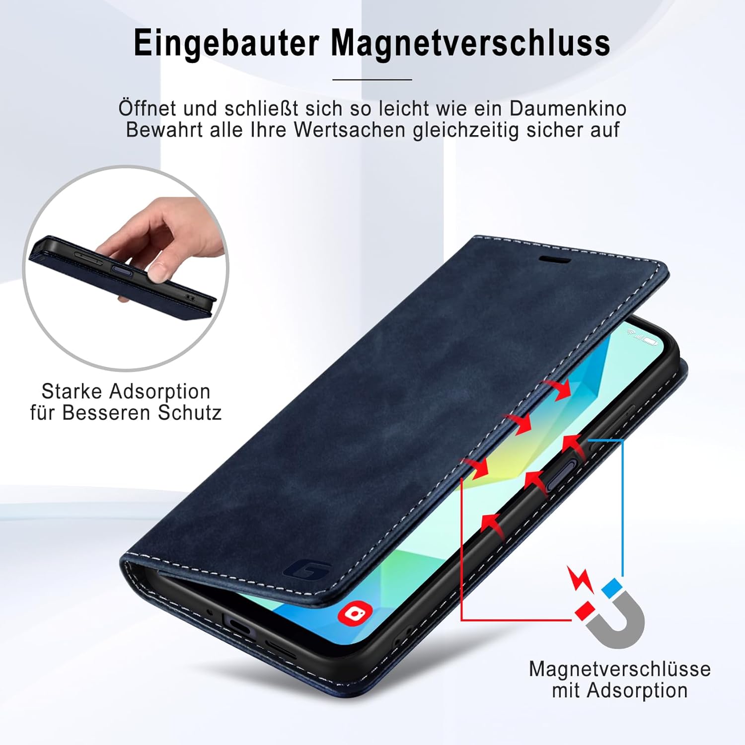 • Вградено магнитно закопчаване: Калъфът за мобилен телефон Guisessy за Samsung Galaxy S25 FE има вградено магнитно закопчаване, може лесно да се отваря и затваря, прави използването на телефона по-лесно и удобно. Вграденото силно магнитно закопчаване подобрява магнитната връзка, предпазва телефона ви, когато не се използва, като ефективно предотвратява случайно отваряне на калъфа.