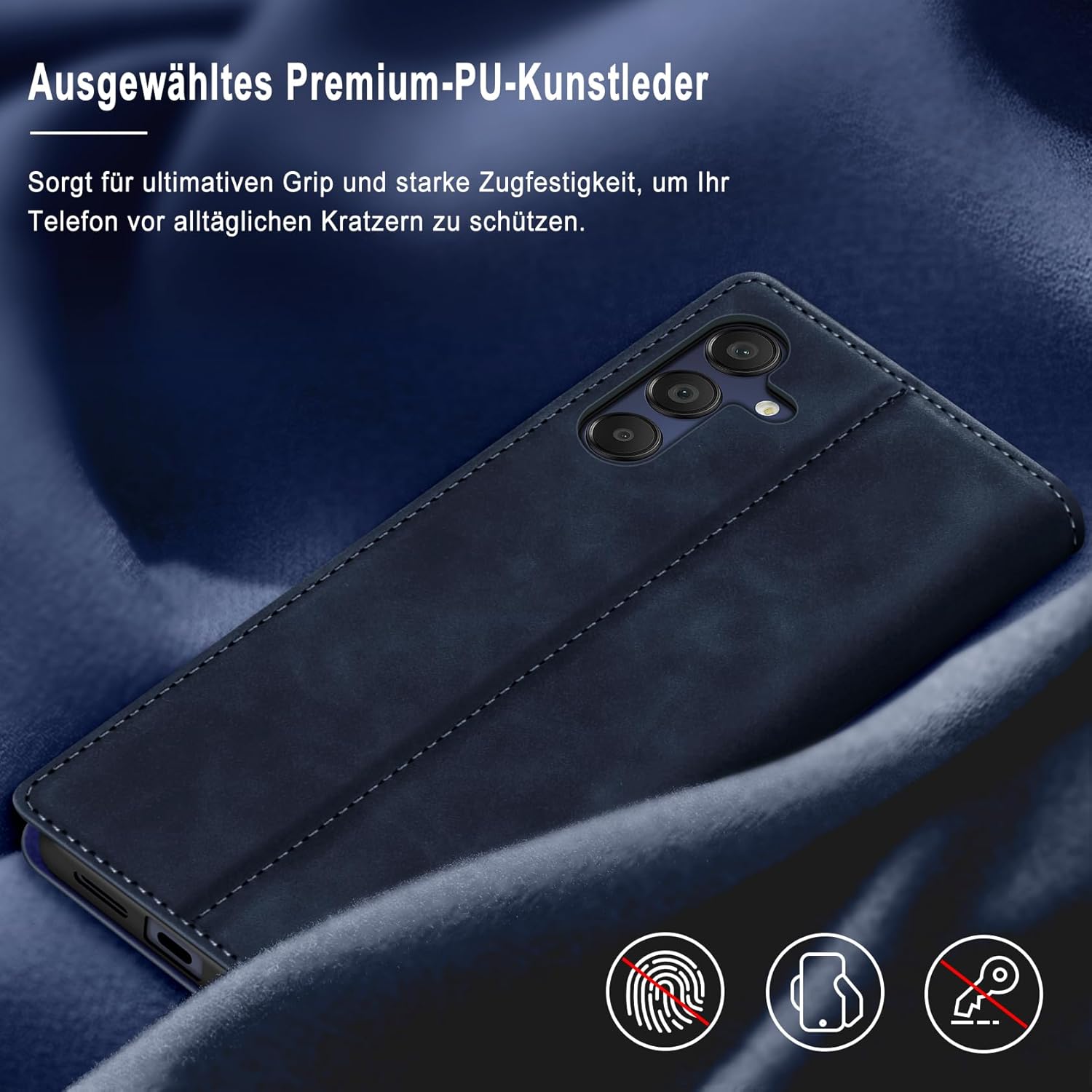 • Премиум PU кожа: Този калъф-портфейл за Samsung Galaxy S25 FE 5G е изработен от висококачествена изкуствена кожа PU и мек и гладък силиконов TPU. Елегантен външен вид, качествената PU има деликатен захват и силна якост на опън, но също така е удароустойчив и осигурява максимална защита от замърсявания, удари и драскотини, осигурявайки отлична 360-градусова всестранна защита.
