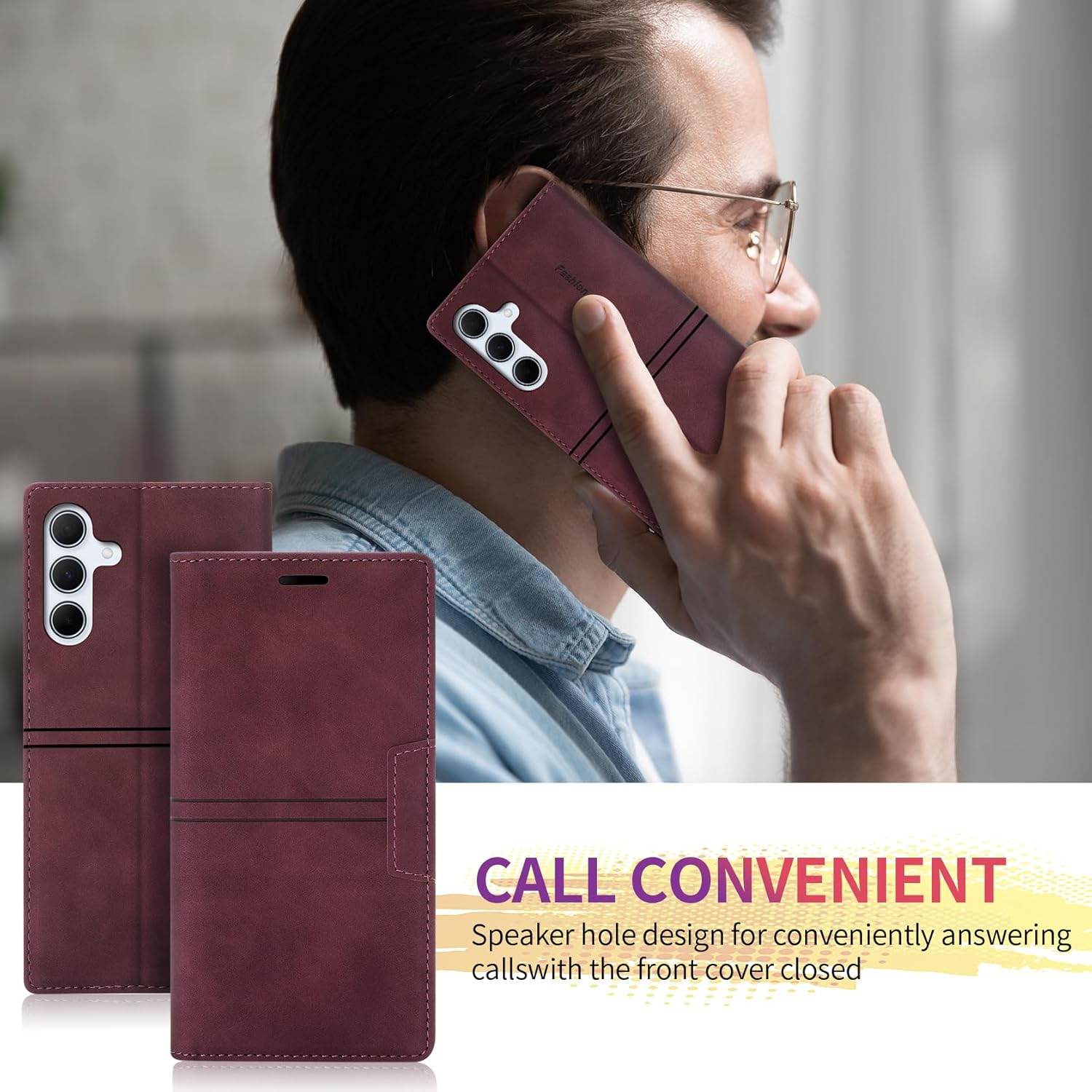 • Премиум PU кожа: Този калъф-портфейл за Samsung Galaxy S25 FE 5G е изработен от висококачествена изкуствена кожа PU и мек и гладък силиконов TPU. Елегантен външен вид, качествената PU има деликатен захват и силна якост на опън, но също така е удароустойчив и осигурява максимална защита от замърсявания, удари и драскотини, осигурявайки отлична 360-градусова всестранна защита.