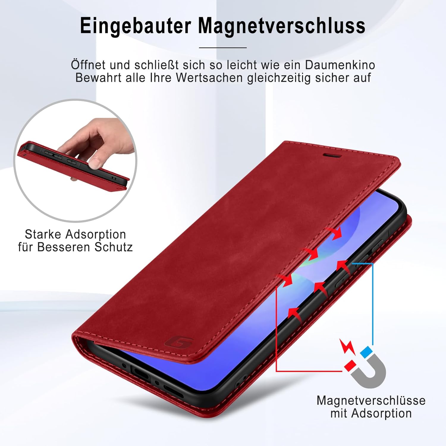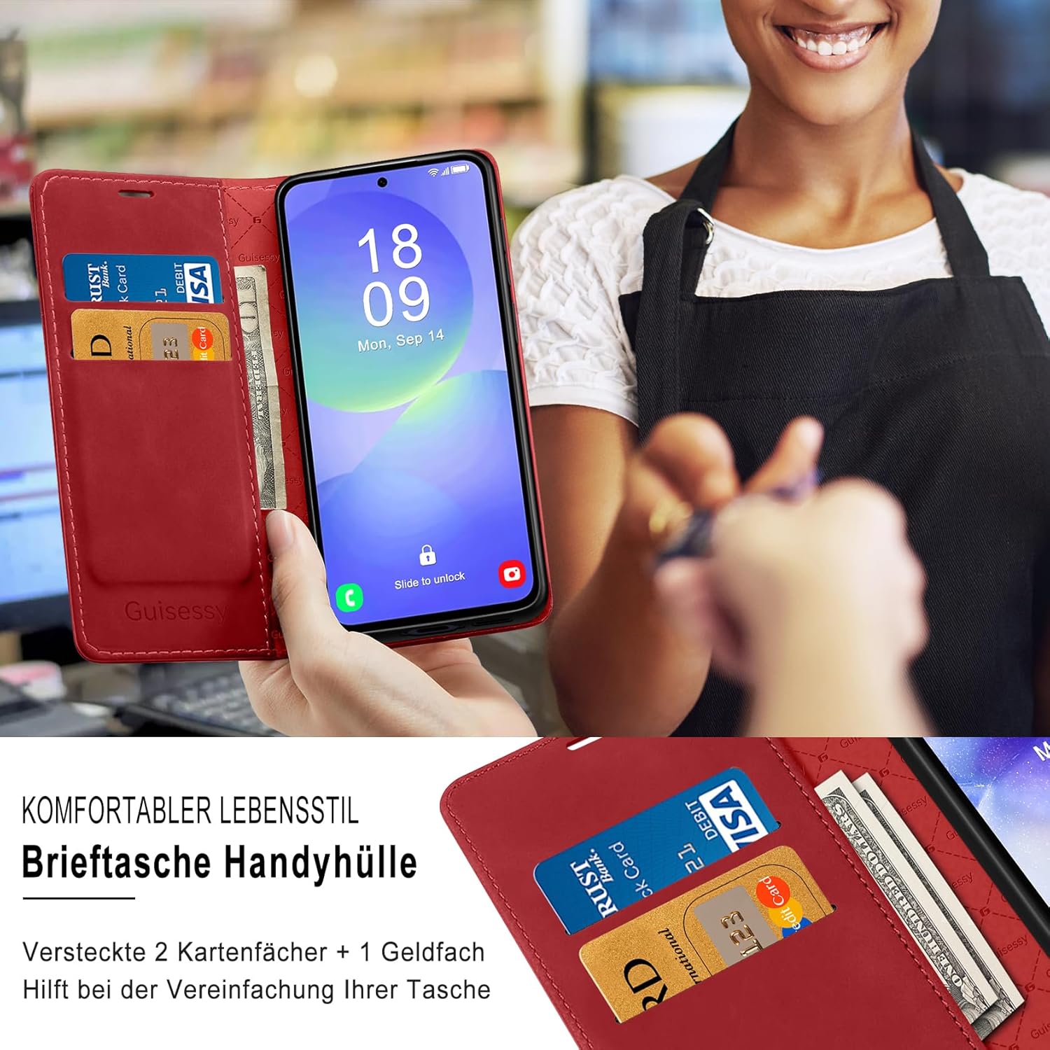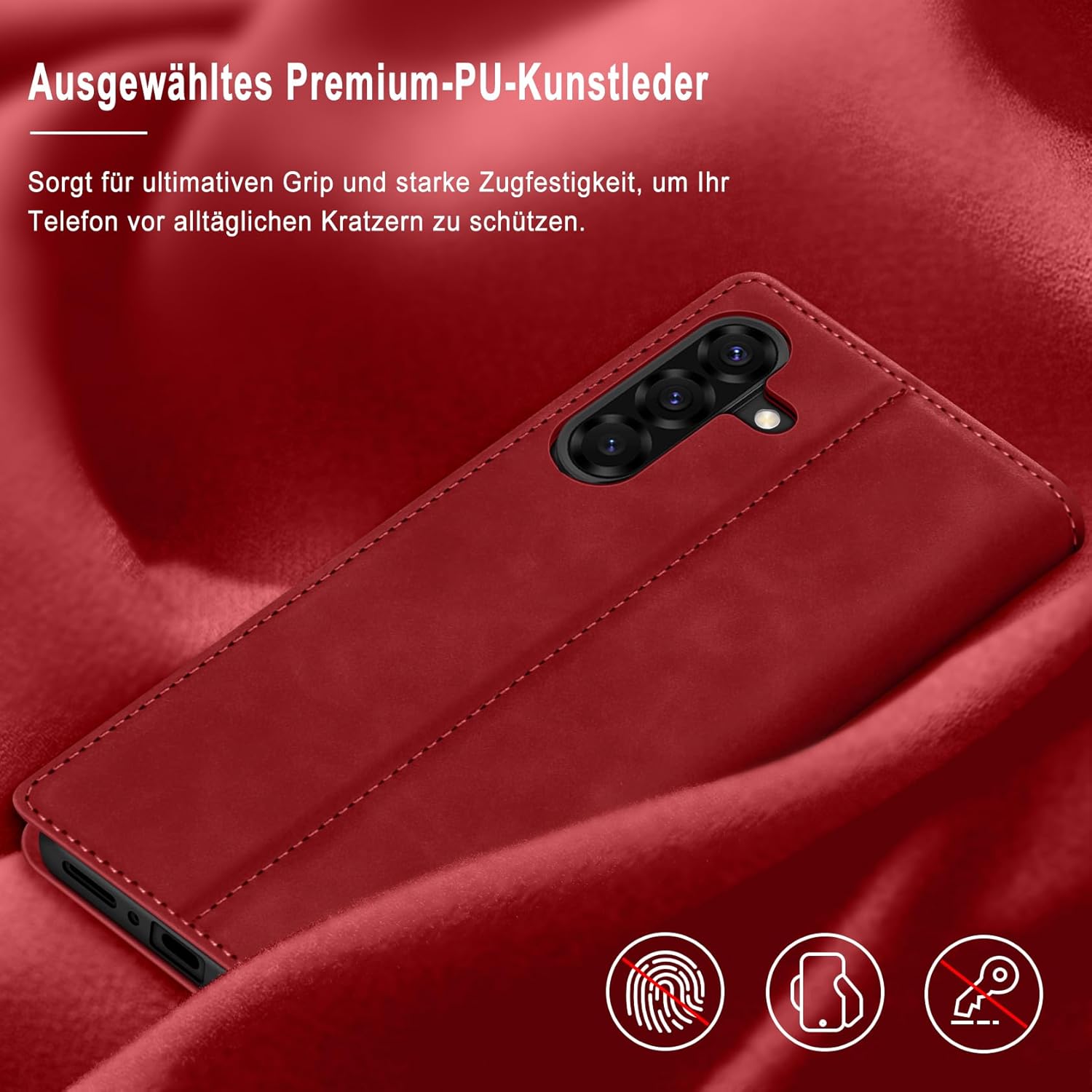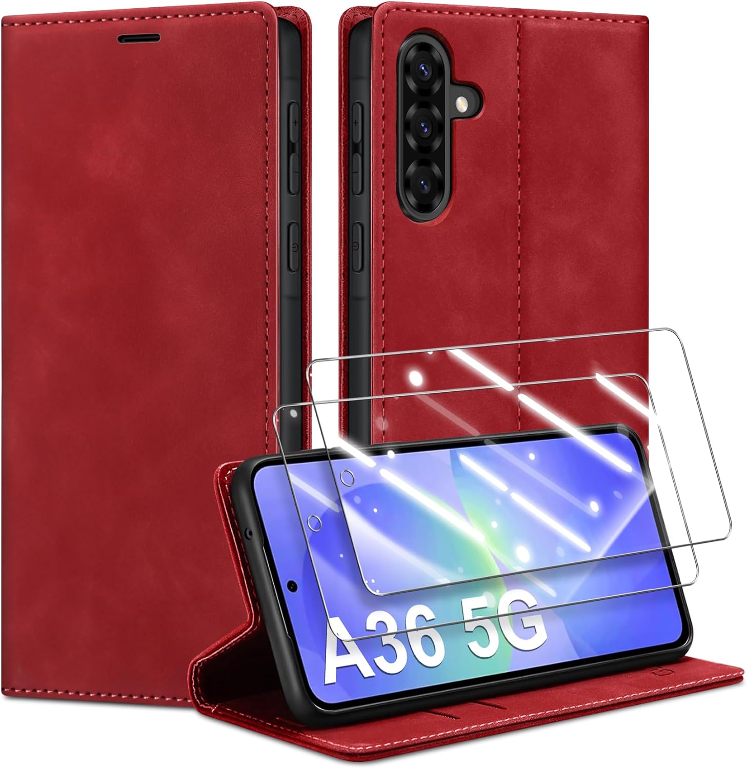 Калъф за мобилен телефон за Samsung Galaxy A36 5G, кожен калъф и 2 протектора за екран, първокласен сгъваем калъф-портфейл с магнитен слот за карти, функция стойка, защитен калъф за Samsung A36, червен