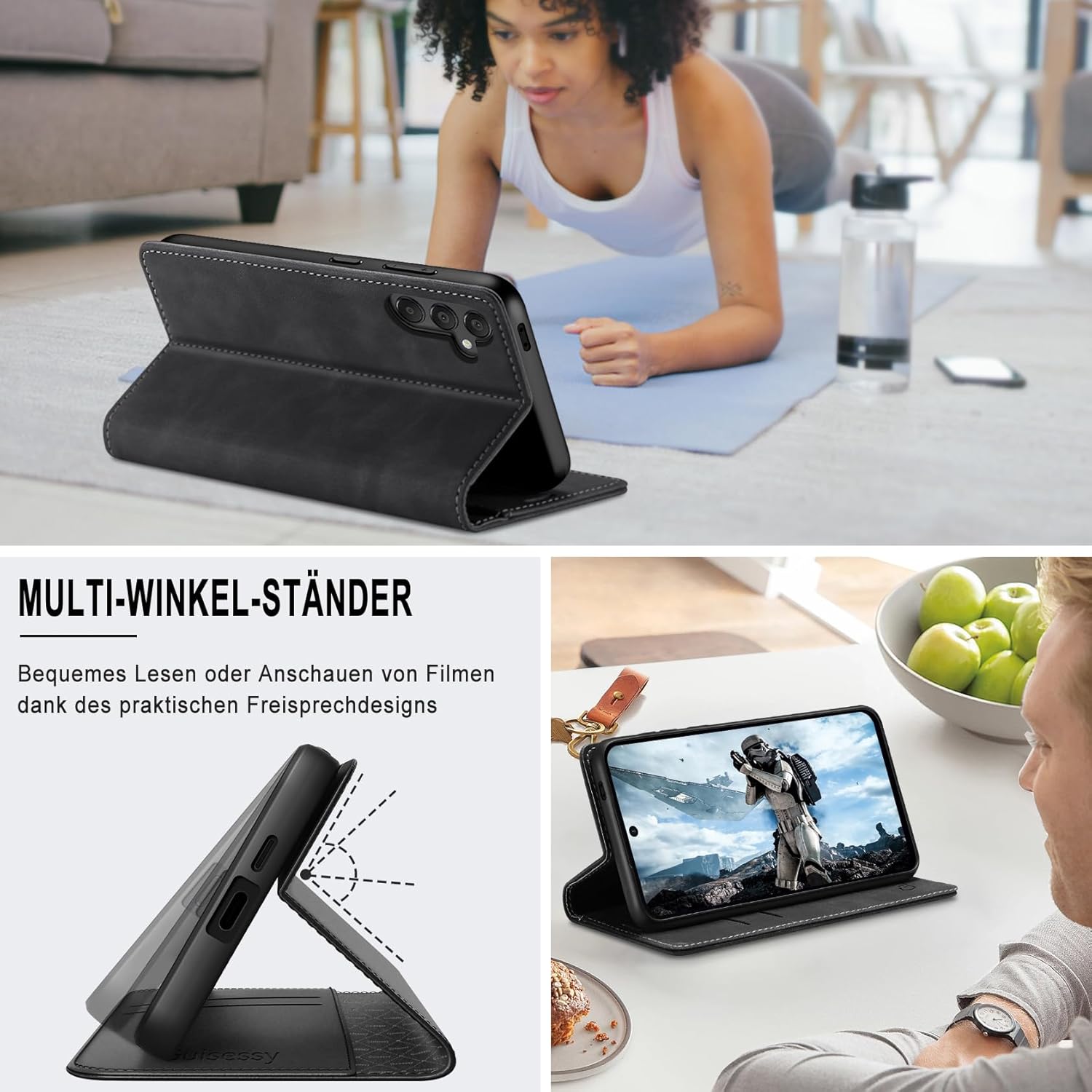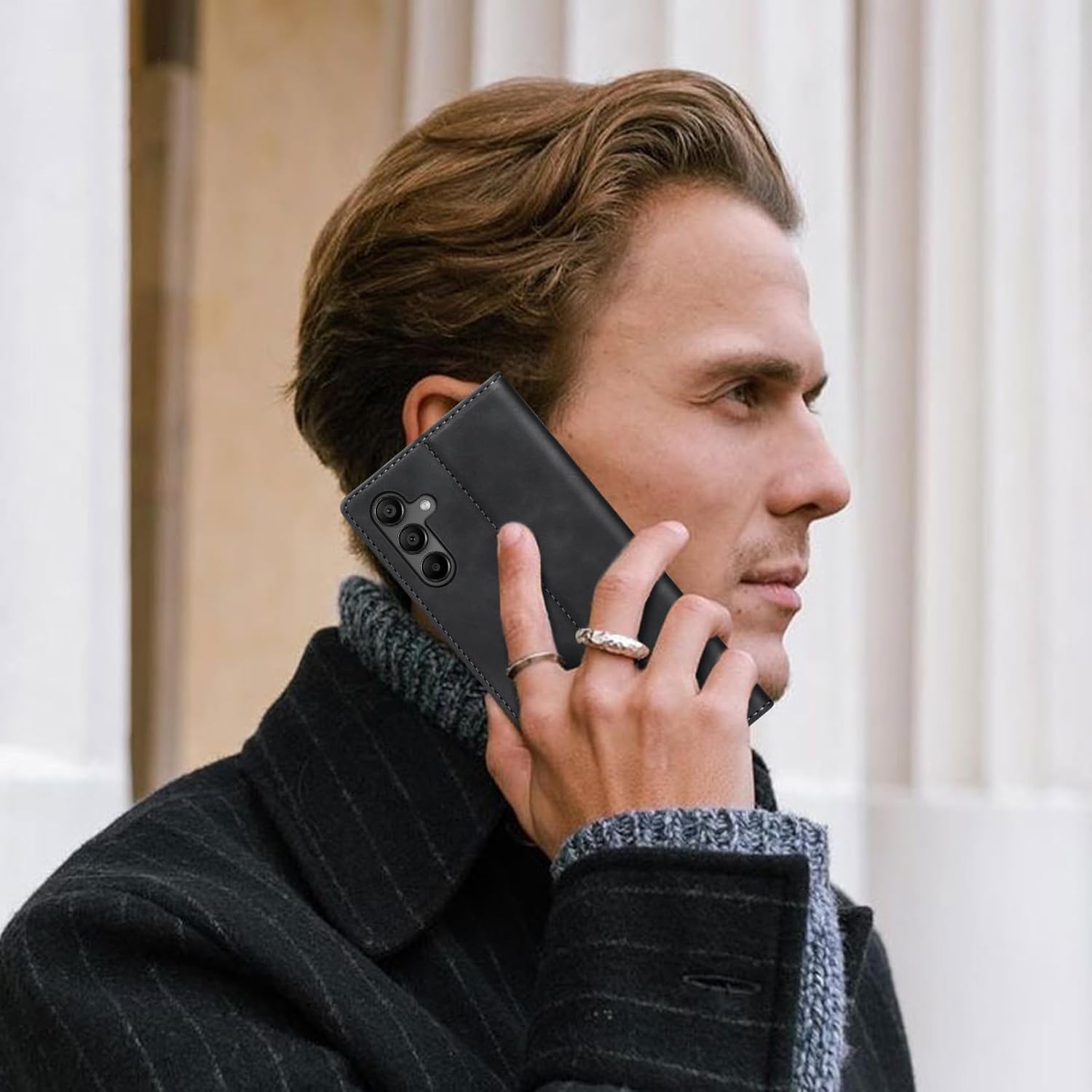 • Премиум PU кожа: Този калъф-портфейл за Samsung Galaxy S25 FE 5G е изработен от висококачествена изкуствена кожа PU и мек и гладък силиконов TPU. Елегантен външен вид, качествената PU има деликатен захват и силна якост на опън, но също така е удароустойчив и осигурява максимална защита от замърсявания, удари и драскотини, осигурявайки отлична 360-градусова всестранна защита.