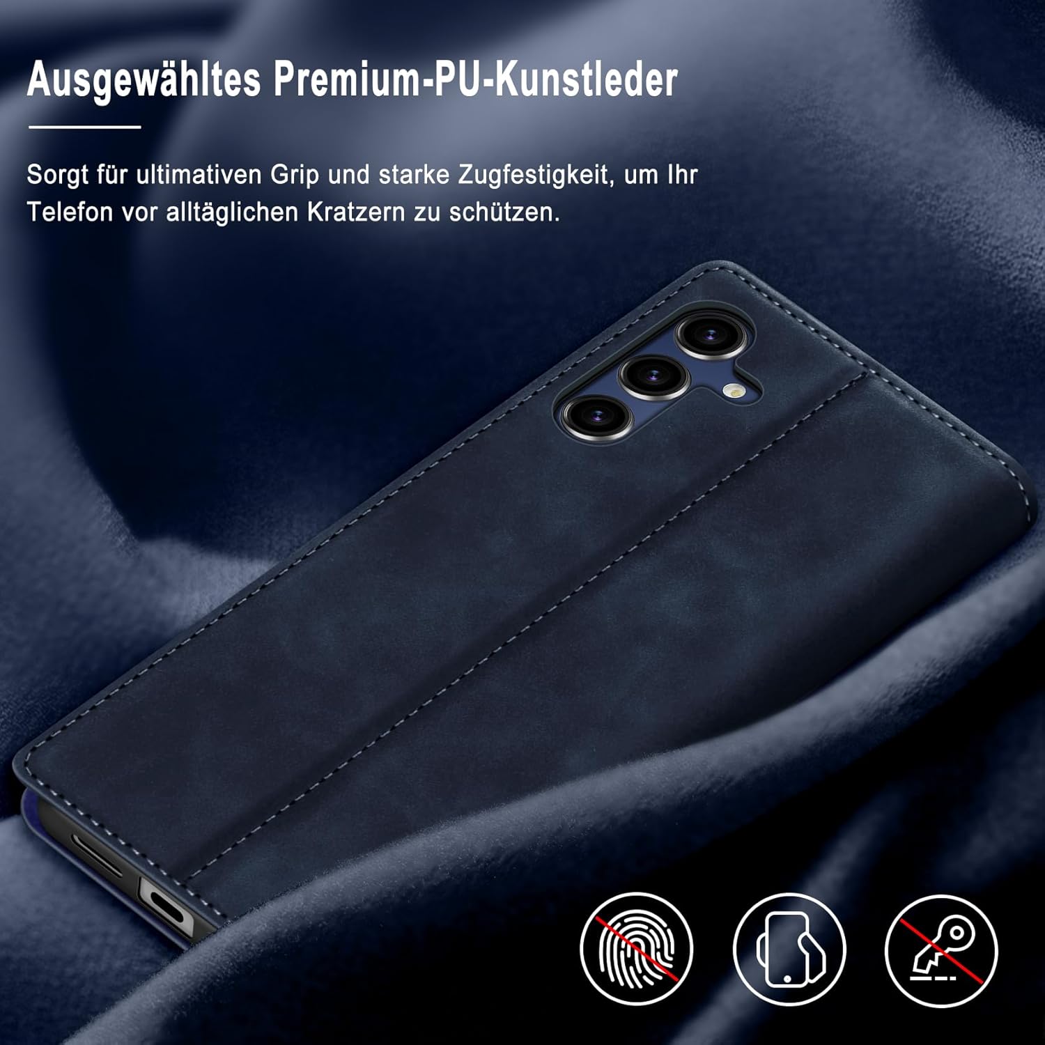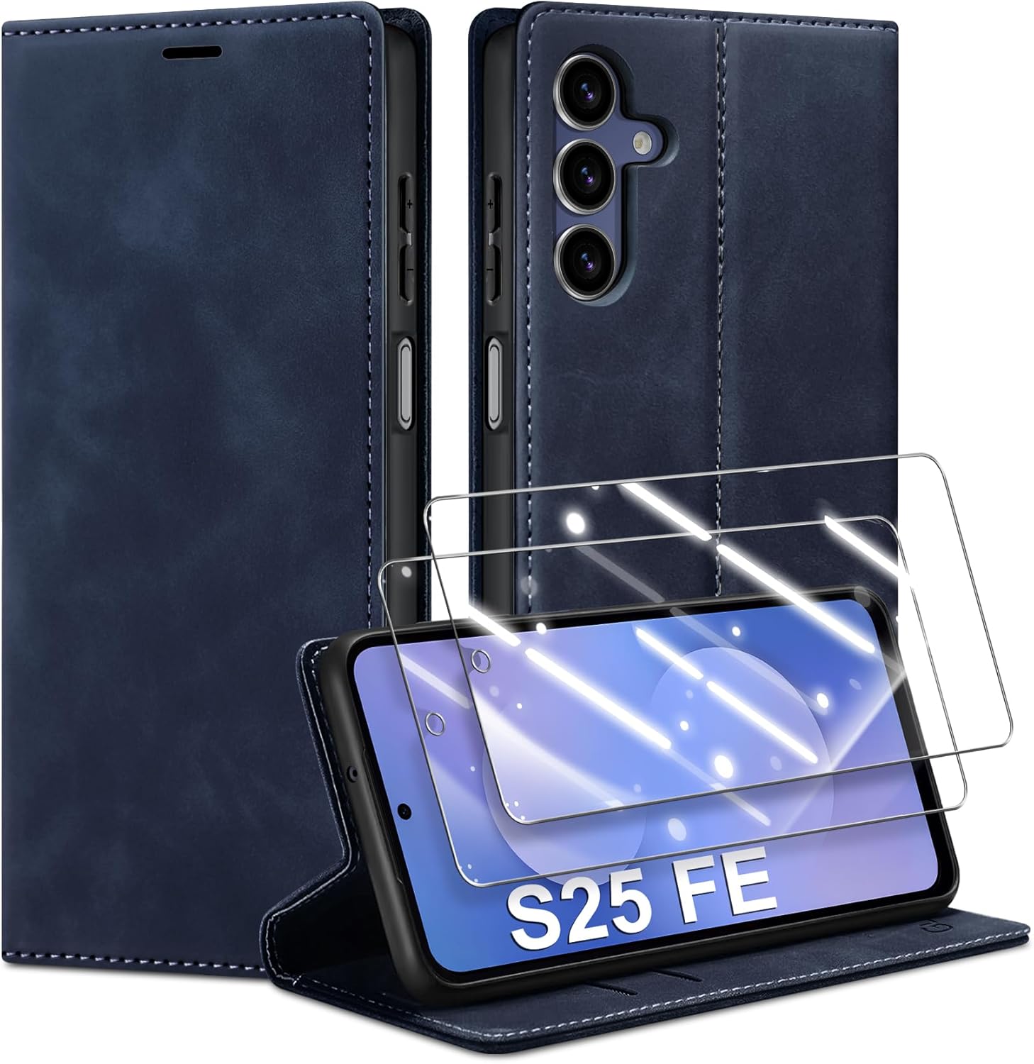 Калъф за мобилен телефон за Samsung Galaxy S25 FE 5G и 2 протектора за екран, първокласен кожен сгъваем калъф-портфейл, [магнит] [слот за карти] [функция стойка] защитен калъф за Samsung S25 FE