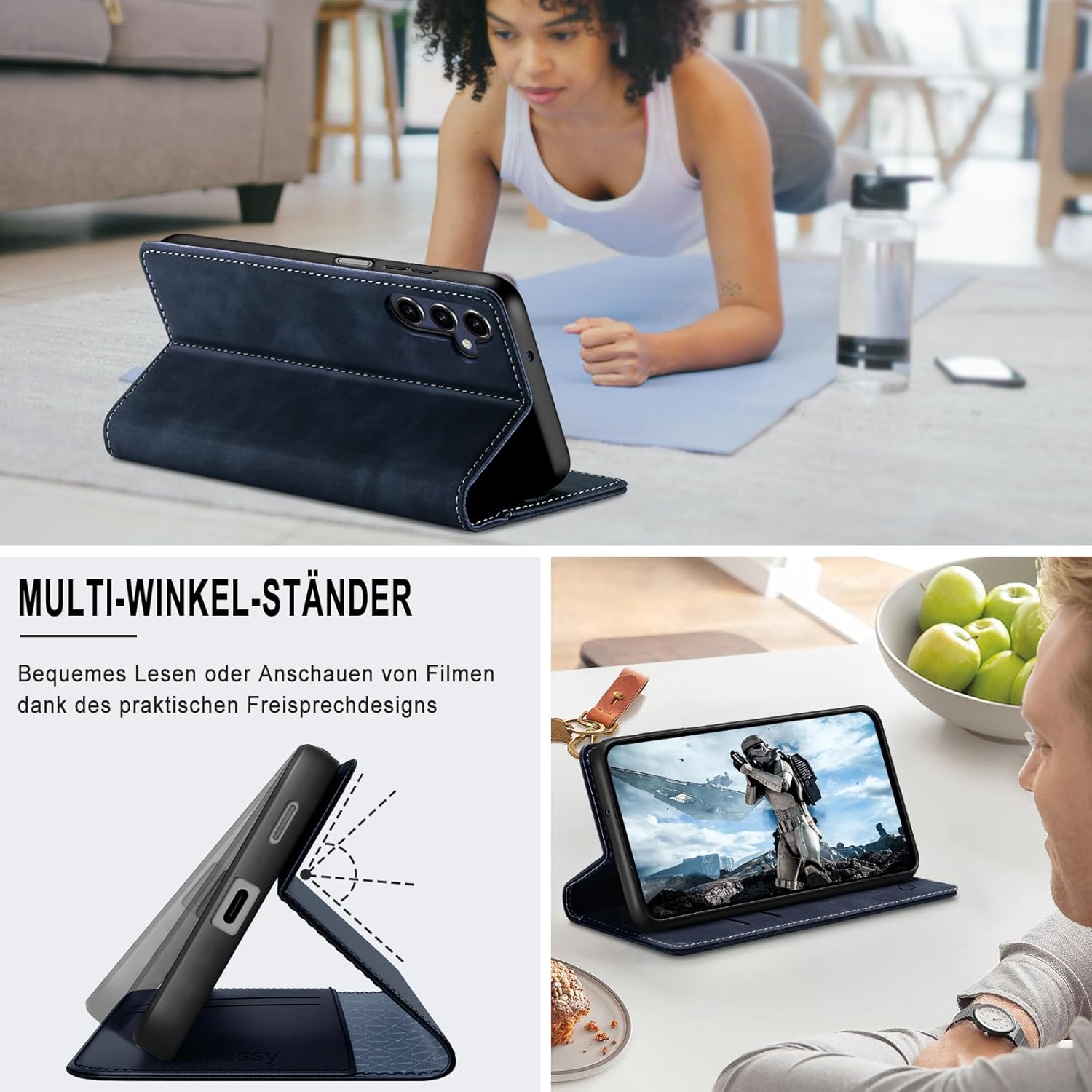 • Стил портфейл: съвместим с Samsung Galaxy S25 FE, сгъваем кожен калъф, перфектна комбинация от калъф за мобилен телефон и портфейл. Два слота за карти за кредитни карти, лична карта, визитки и страничен джоб за пари, касови бележки и сметки. Може да служи като калъф и сигурен преносим портфейл.