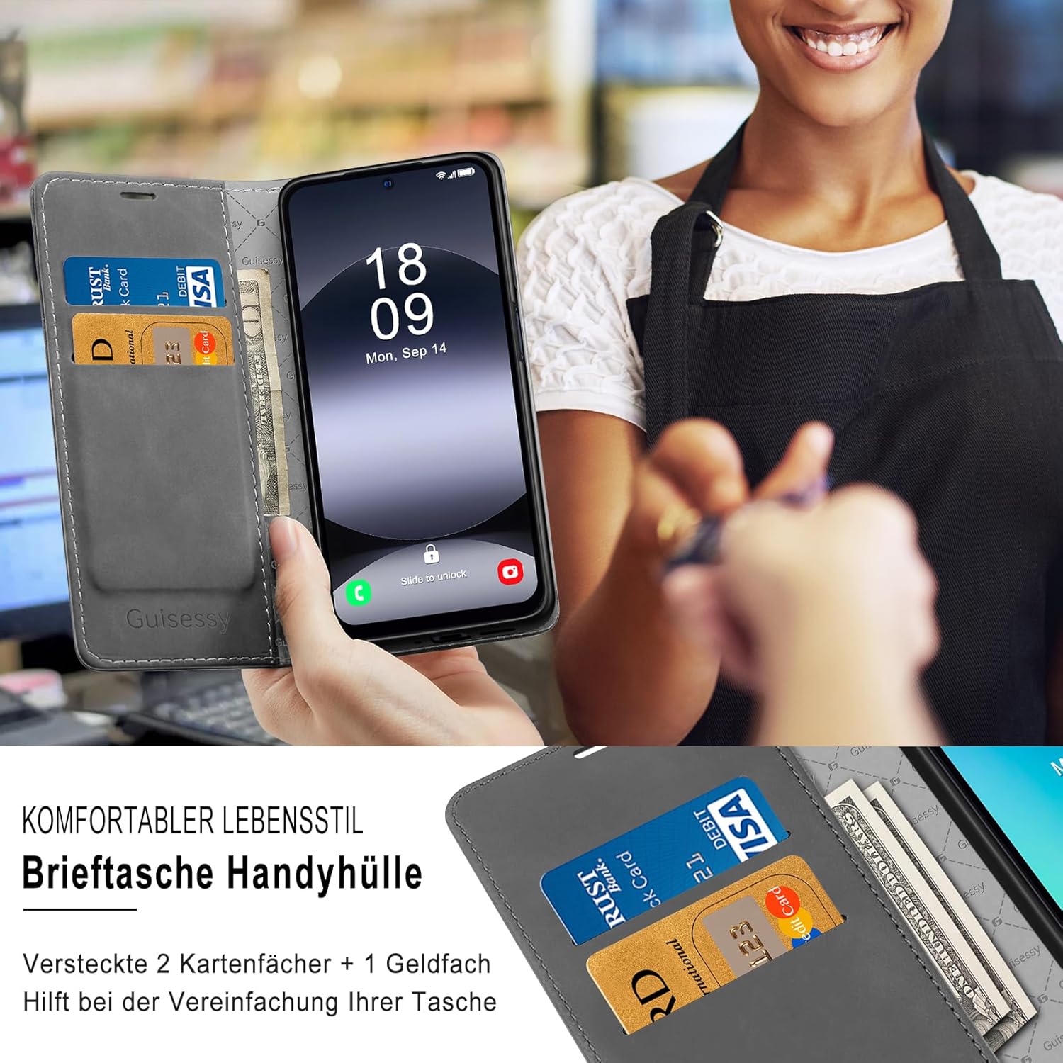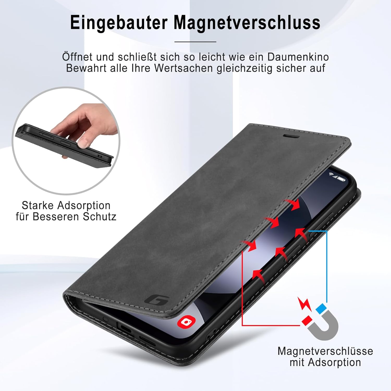 • Вградено магнитно закопчаване: Калъфът за мобилен телефон Guisessy за Samsung Galaxy S25 FE има вградено магнитно закопчаване, може лесно да се отваря и затваря, прави използването на телефона по-лесно и удобно. Вграденото силно магнитно закопчаване подобрява магнитната връзка, предпазва телефона ви, когато не се използва, като ефективно предотвратява случайно отваряне на калъфа.