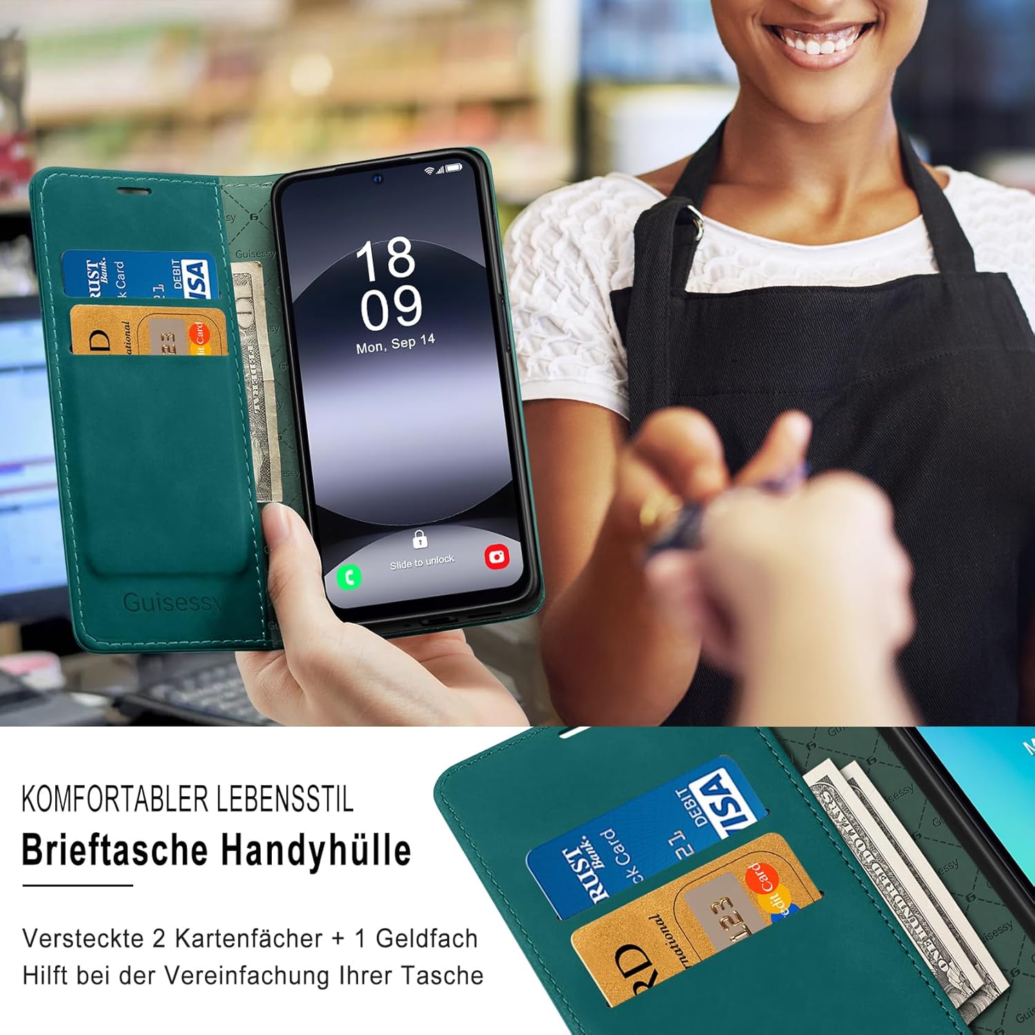 • Вградено магнитно закопчаване: Калъфът за мобилен телефон Guisessy за Samsung Galaxy S25 FE има вградено магнитно закопчаване, може лесно да се отваря и затваря, прави използването на телефона по-лесно и удобно. Вграденото силно магнитно закопчаване подобрява магнитната връзка, предпазва телефона ви, когато не се използва, като ефективно предотвратява случайно отваряне на калъфа.