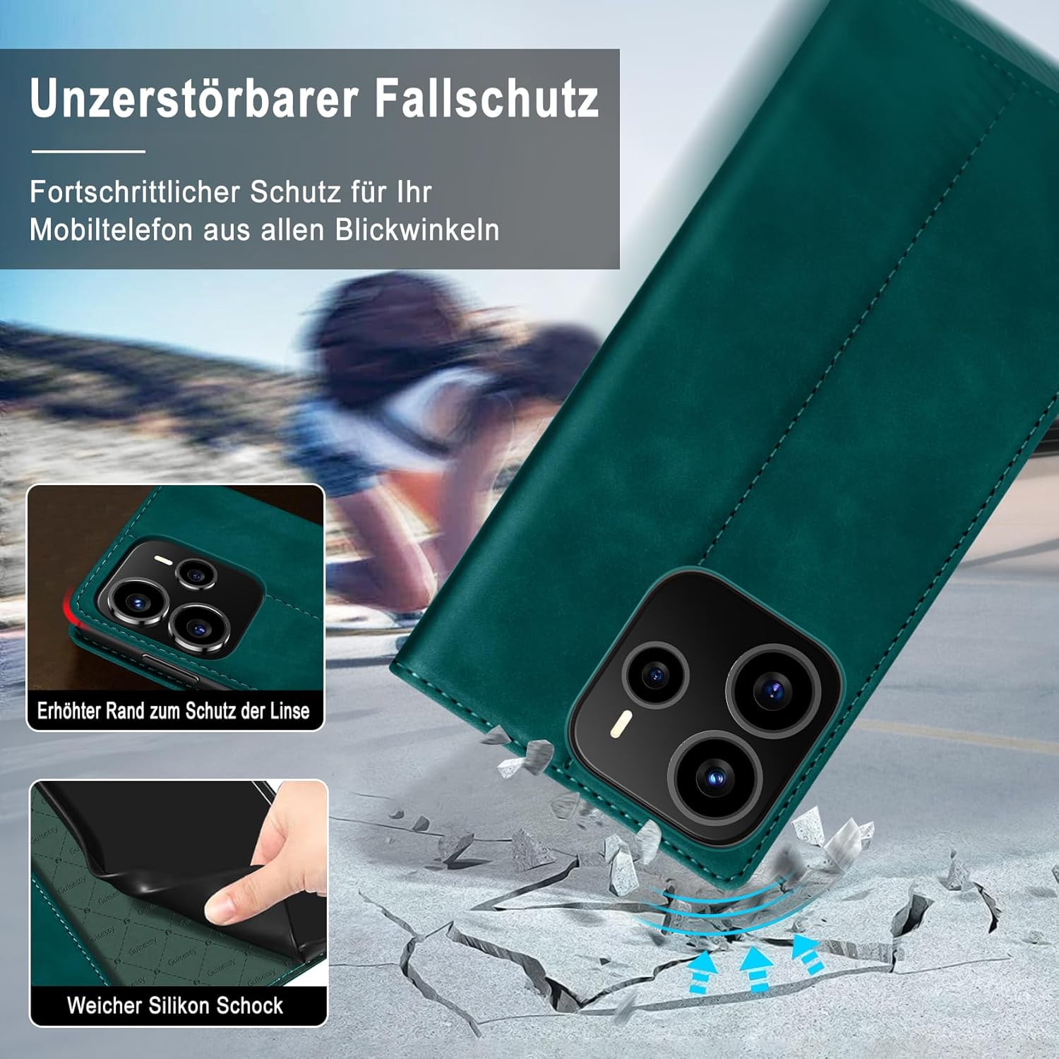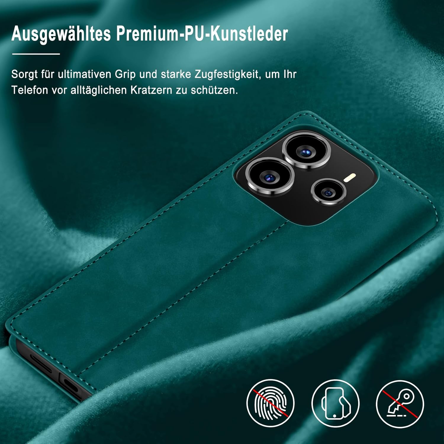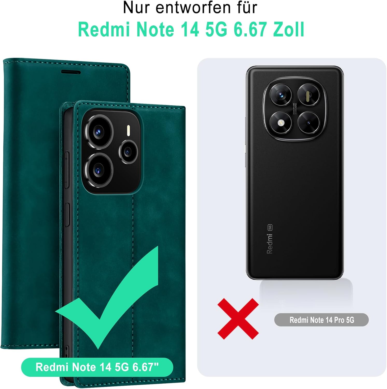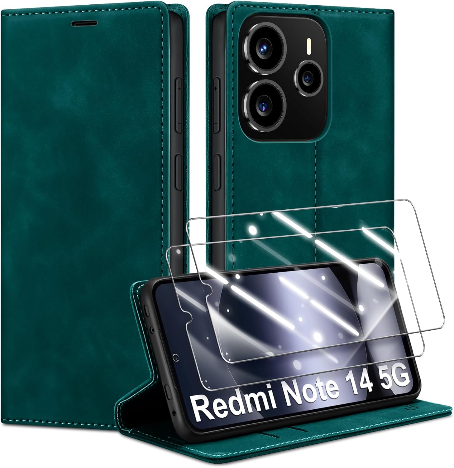 Калъф за мобилен телефон за Xiaomi Redmi Note 14 5G, кожен калъф и 2 протектора за екран, първокласен сгъваем калъф-портфейл с магнитен слот за карти, функция стойка, защитен калъф за Redmi Note