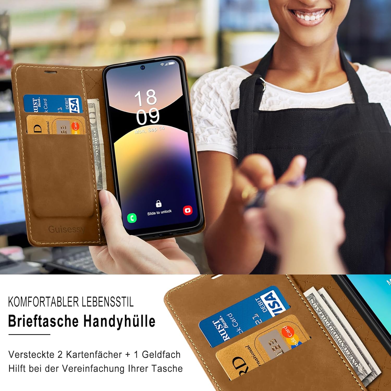 • Вградено магнитно закопчаване: Калъфът за мобилен телефон Guisessy за Samsung Galaxy S25 FE има вградено магнитно закопчаване, може лесно да се отваря и затваря, прави използването на телефона по-лесно и удобно. Вграденото силно магнитно закопчаване подобрява магнитната връзка, предпазва телефона ви, когато не се използва, като ефективно предотвратява случайно отваряне на калъфа.