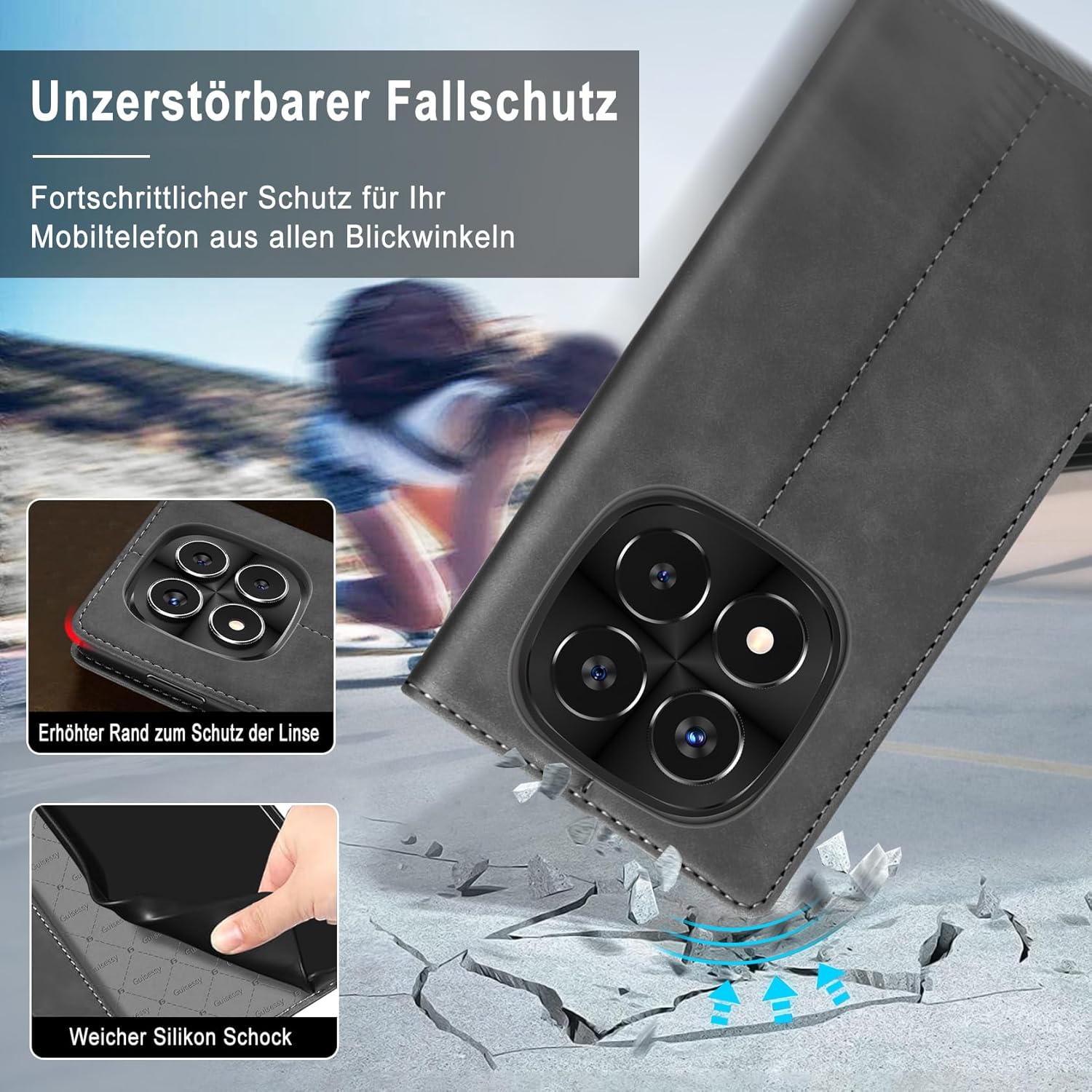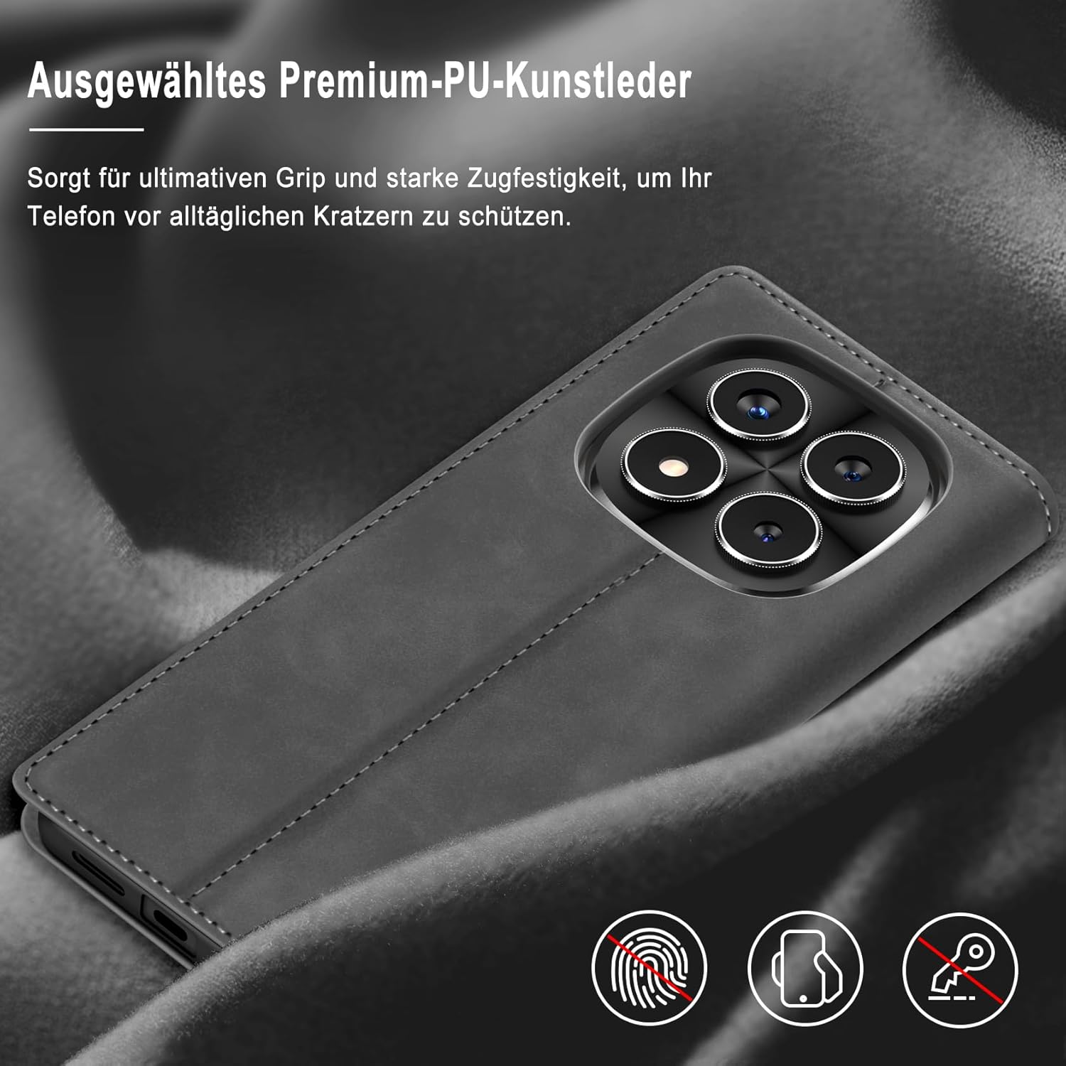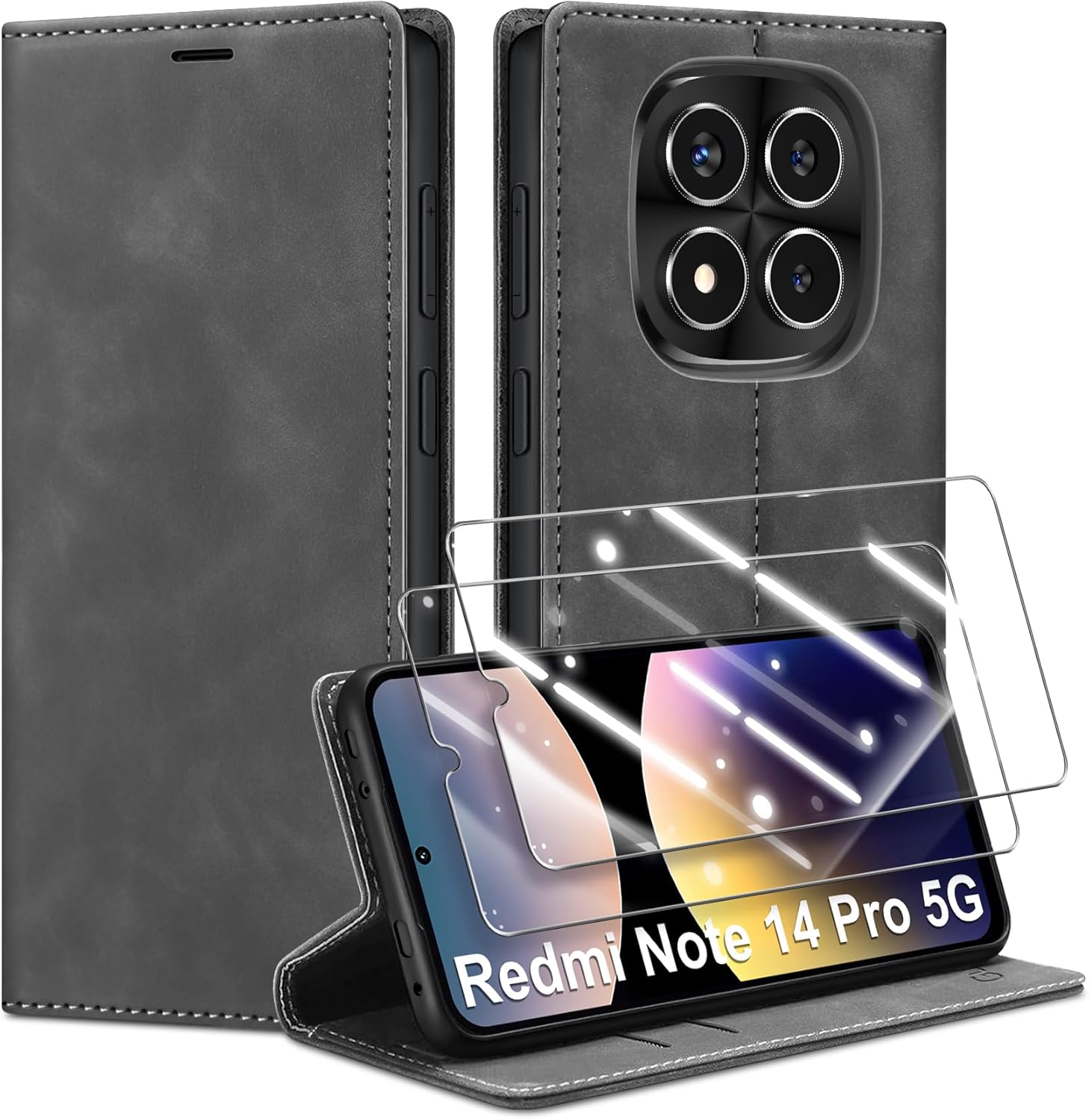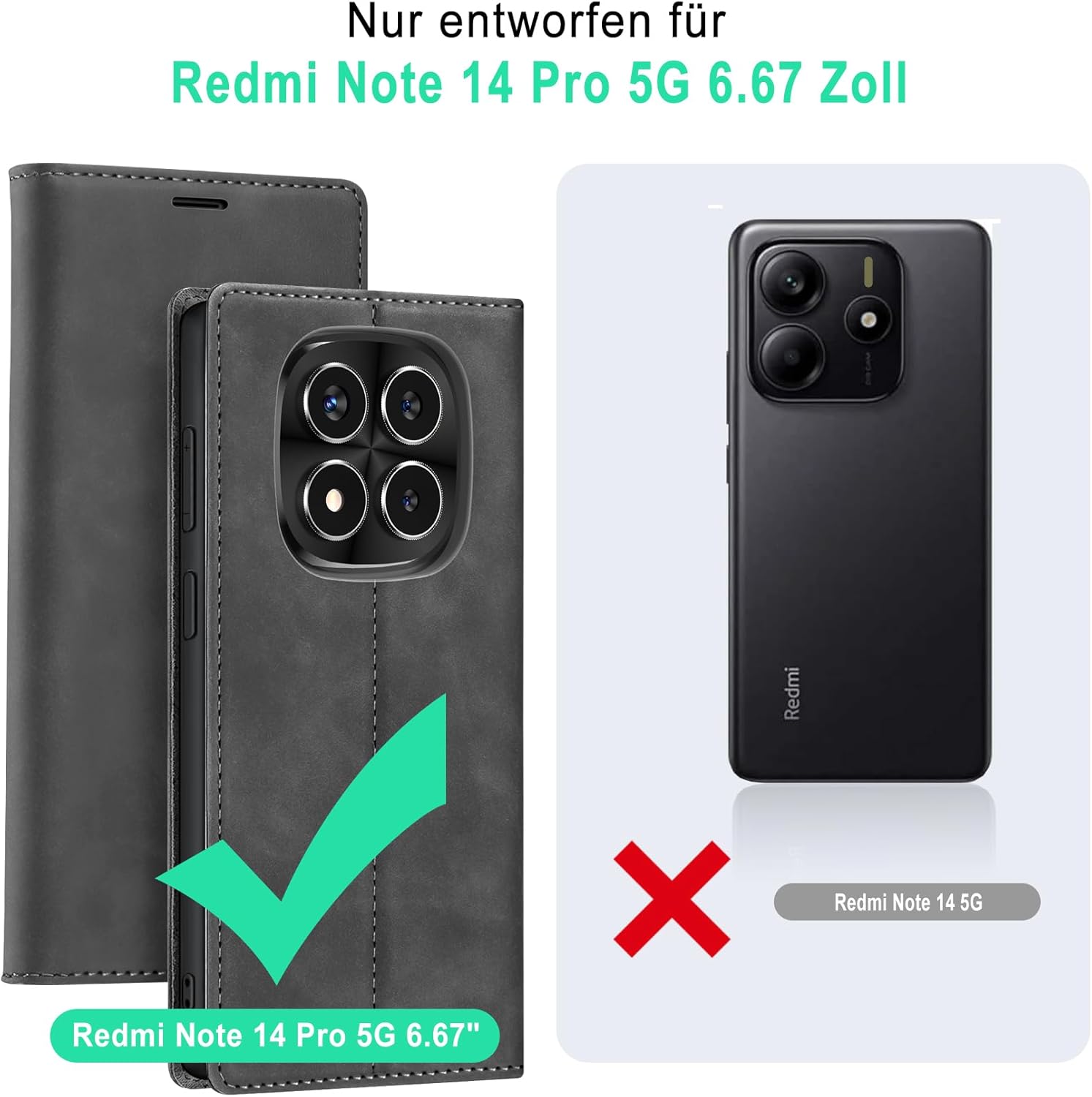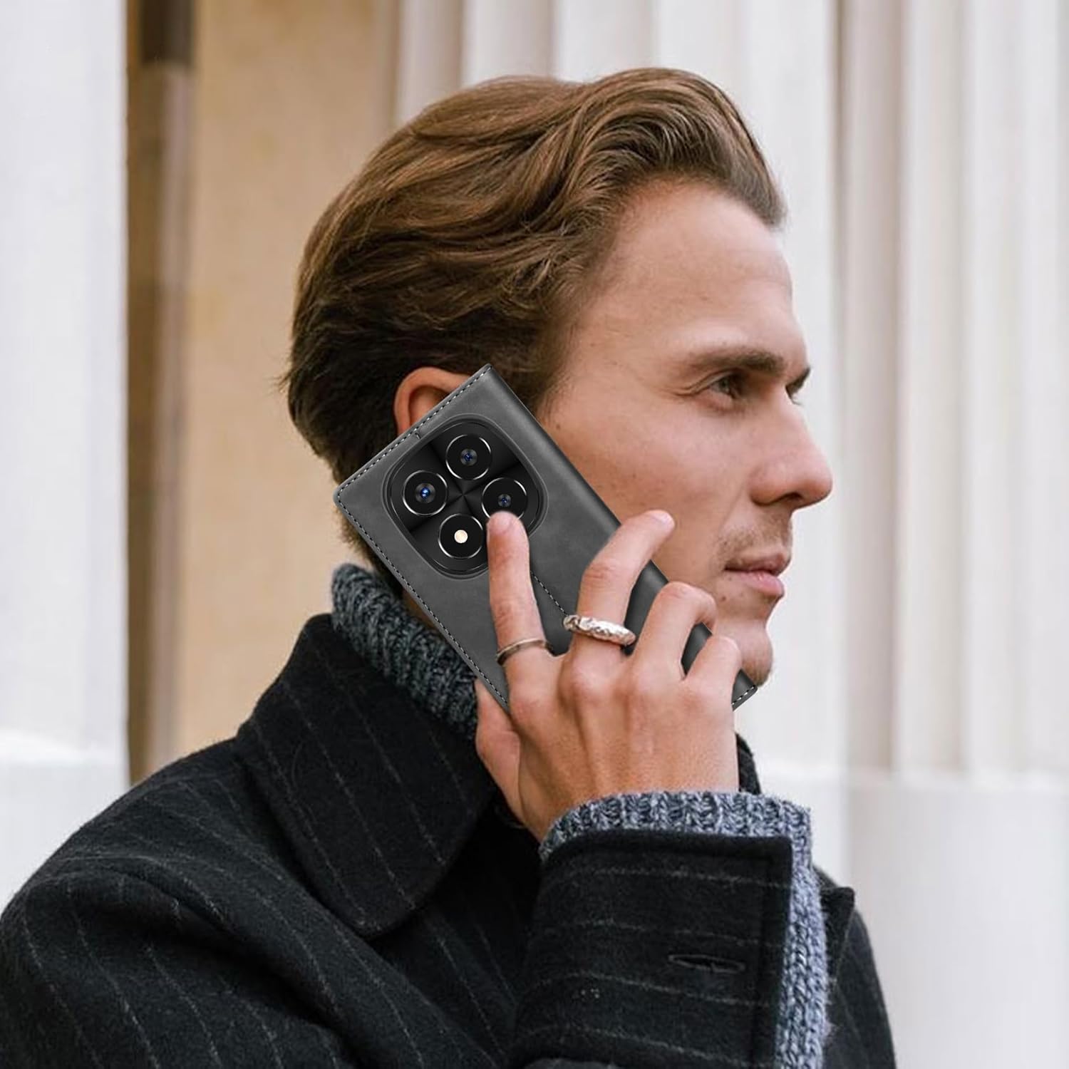 Калъф за мобилен телефон за Xiaomi Redmi Note 14 Pro 5G, кожен калъф, премиум сгъваем калъф-портфейл с магнитен слот за карти, функция стойка, защитен калъф за Redmi Note 14 Pro 5G, сив