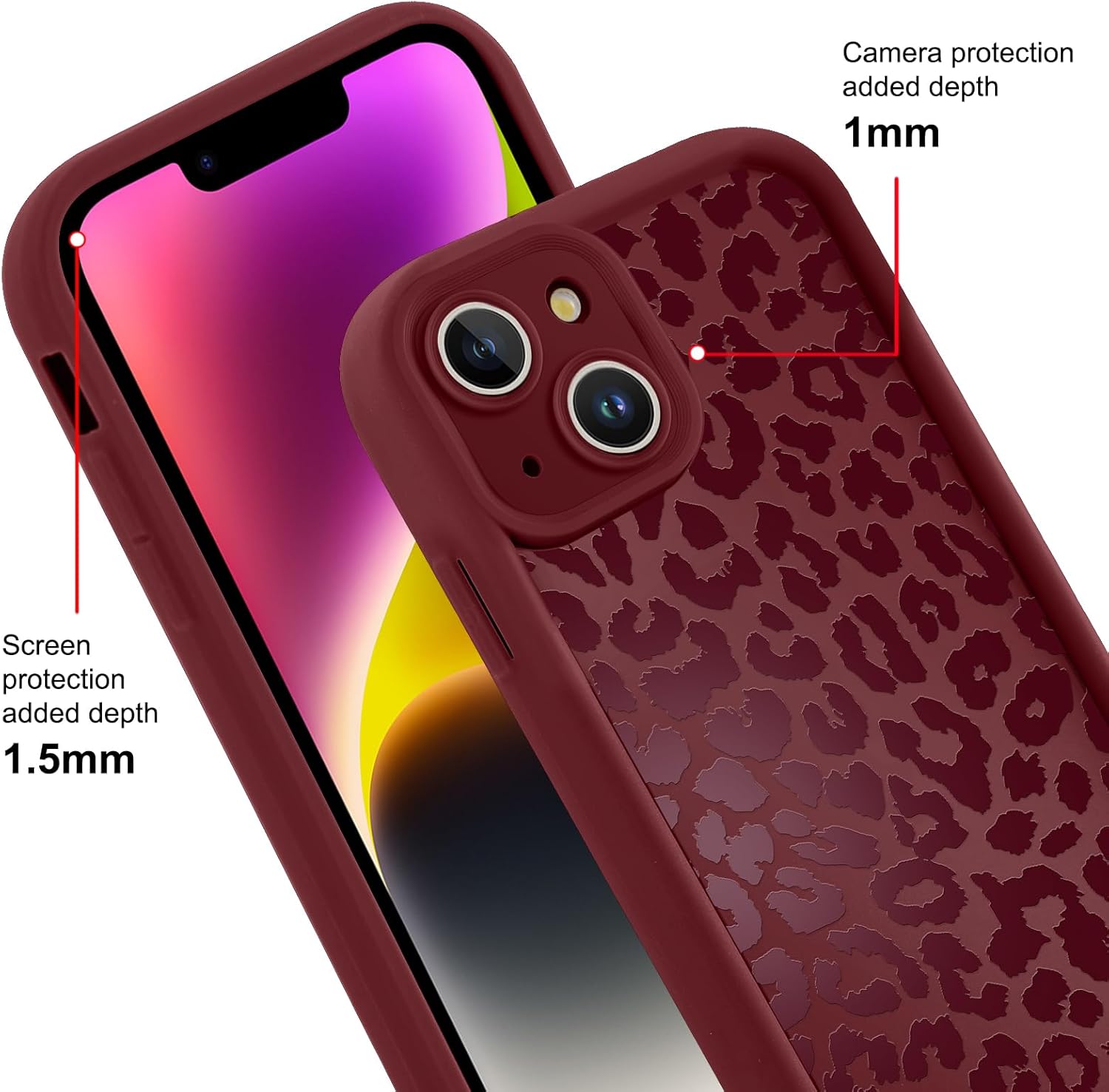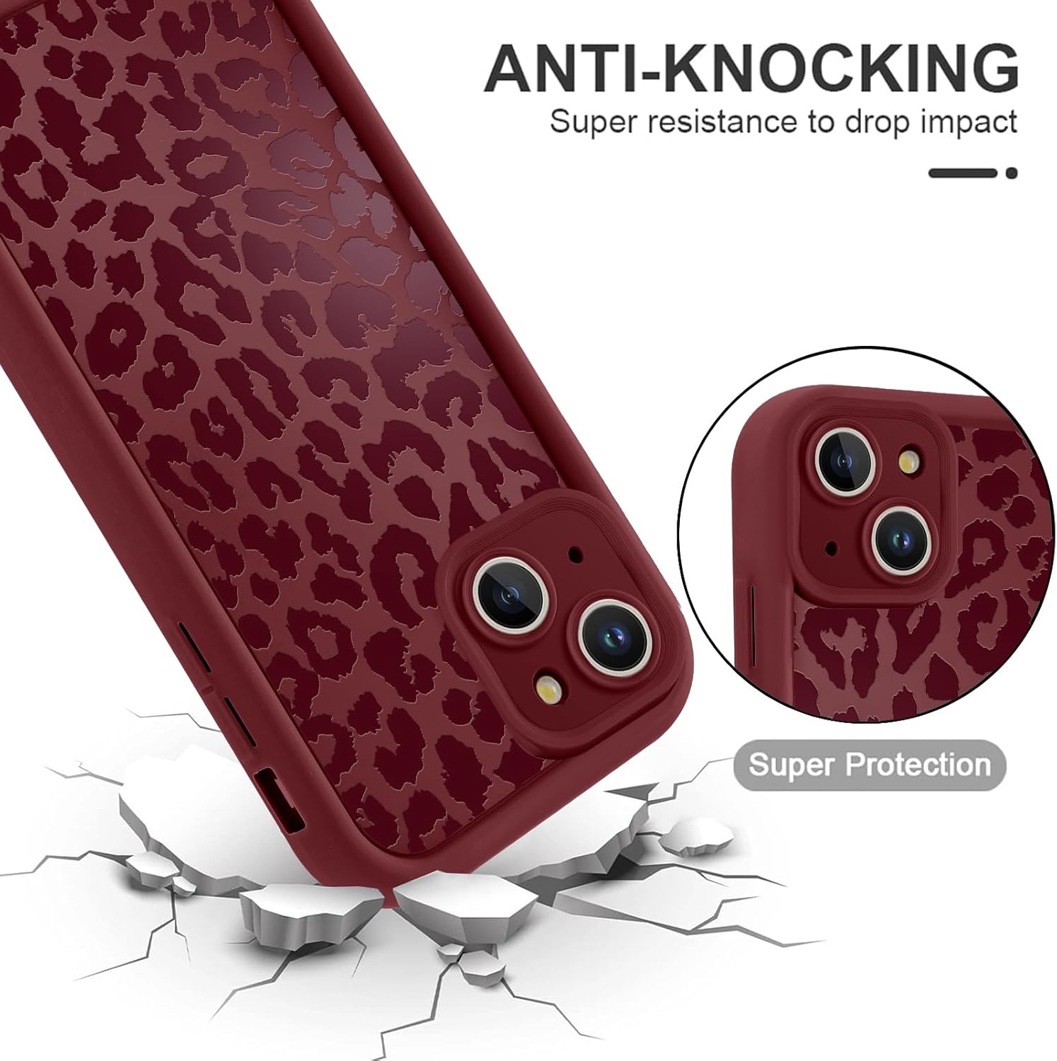 Калъф за мобилен телефон ZhuoFan за iPhone 14 Plus 6.7 инча, естетичен леопардов модел, червен матов дизайн, защитен калъф, ултра мек силиконов калъф за момичета и жени, удароустойчив, защита на камерата