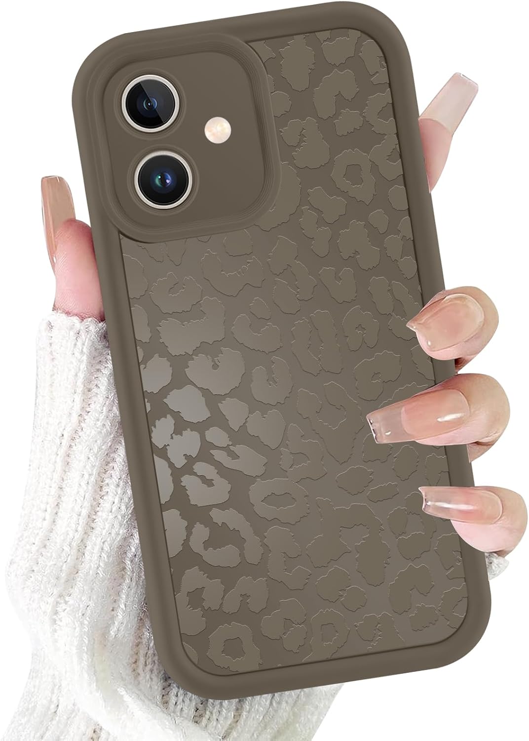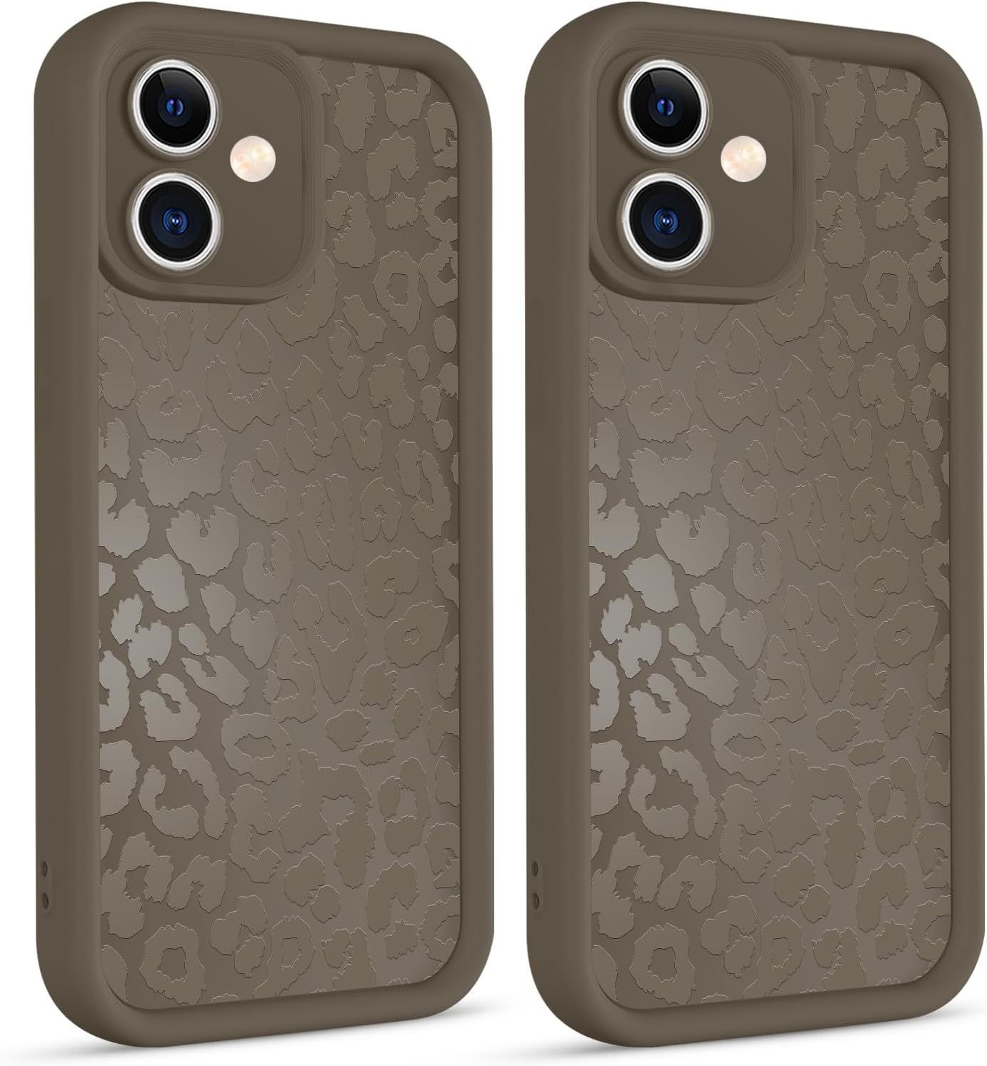 Калъф за мобилен телефон ZhuoFan за iPhone 6.1 инча, естетичен леопардов дизайн, сладък кафяв матов калъф за момичета, дамски, защитен калъф, ултра мек силиконов тънък TPU калъф, удароустойчив, защита на камерата, броня