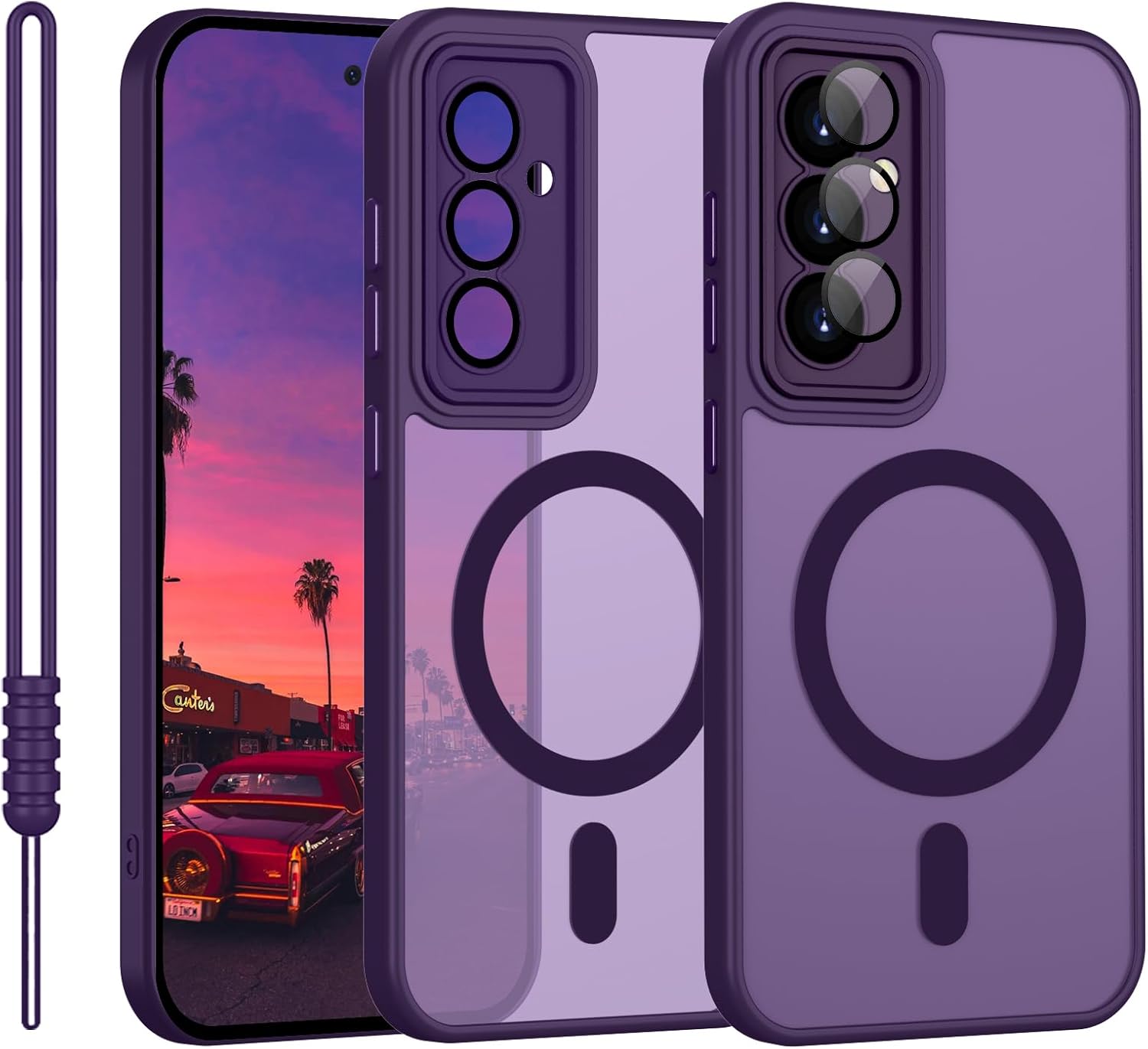 Калъф за Samsung Galaxy A25, Съвместим с MagSafe, Калъф за мобилен телефон за Samsung Galaxy A25, Магнитен матов сензорен протектор за камерата, Неплъзгащ се, Устойчив на надраскване, Удароустойчив, Тъмно лилав