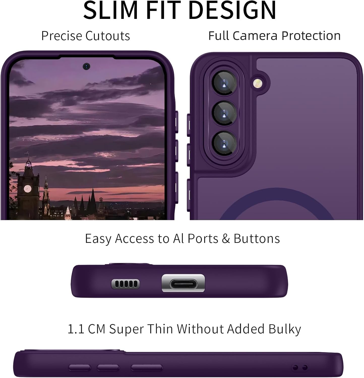 • YUANDMI Тънък магнитен калъф за телефон за Samsung Galaxy S24, не е съвместим с други версии. Поддържа безжично зареждане: