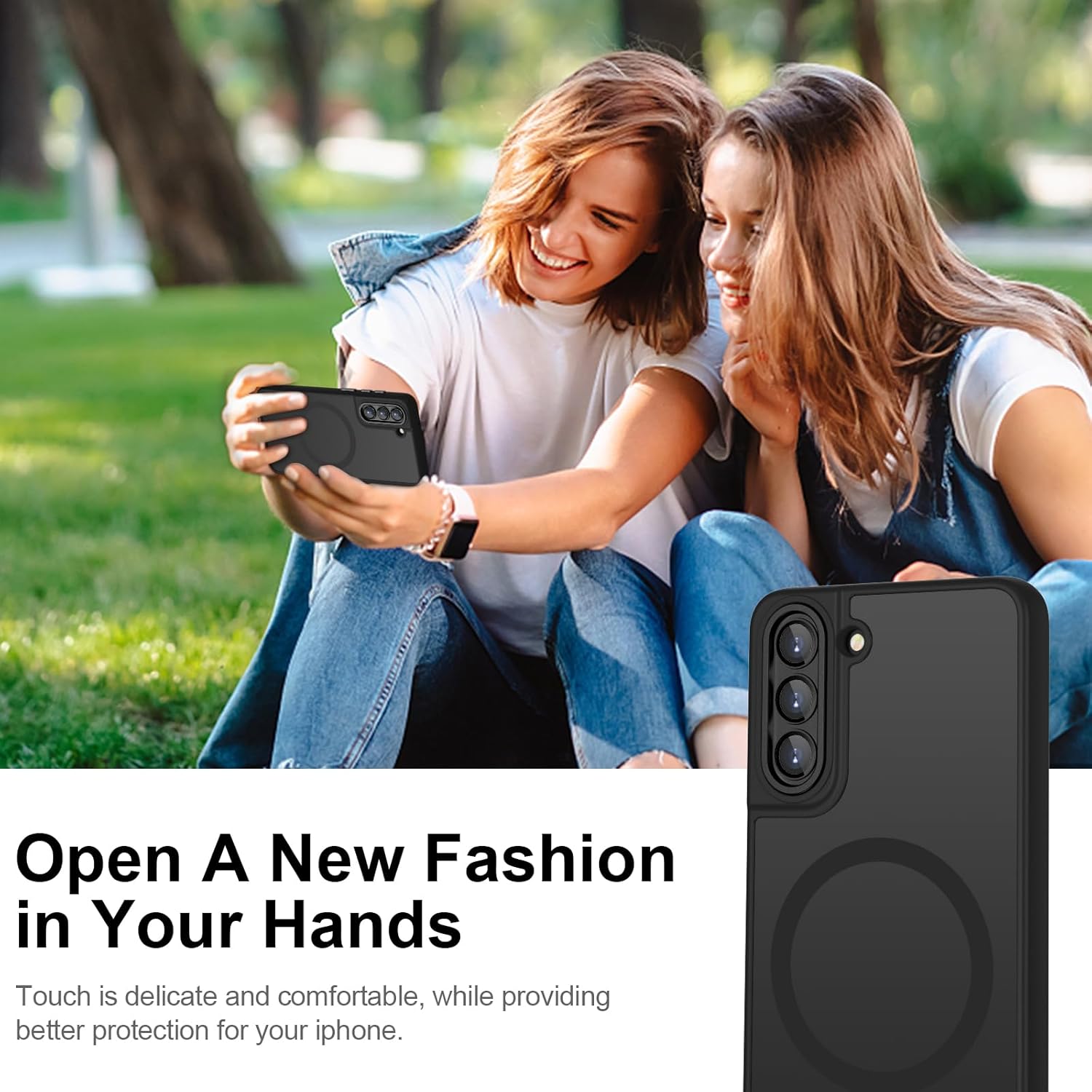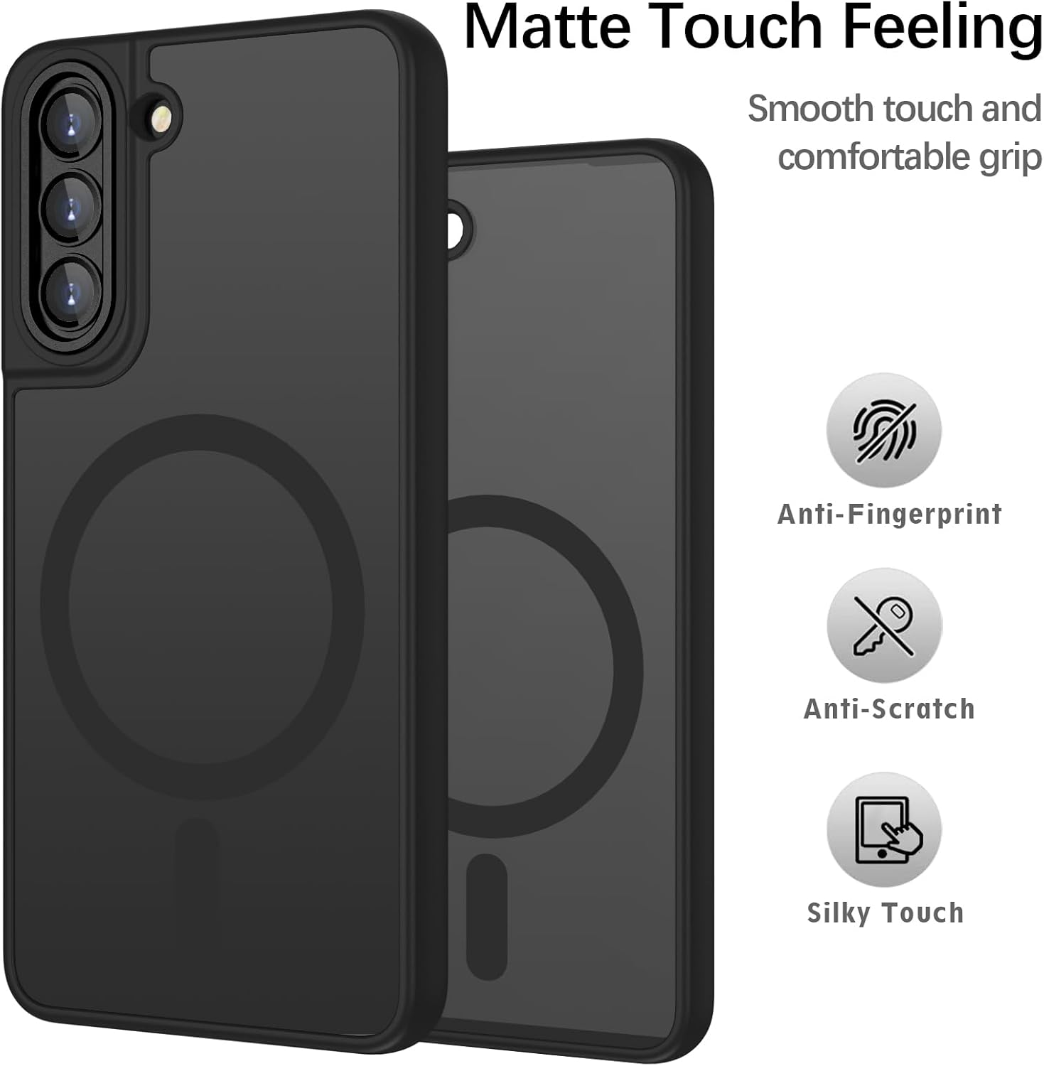Калъф за Samsung Galaxy S21 FE, съвместим с MagSafe, калъф за мобилен телефон за Samsung Galaxy S21 FE, магнитен, матов, със сензорна защита на камерата, неплъзгащ се, устойчив на надраскване, удароустойчив
