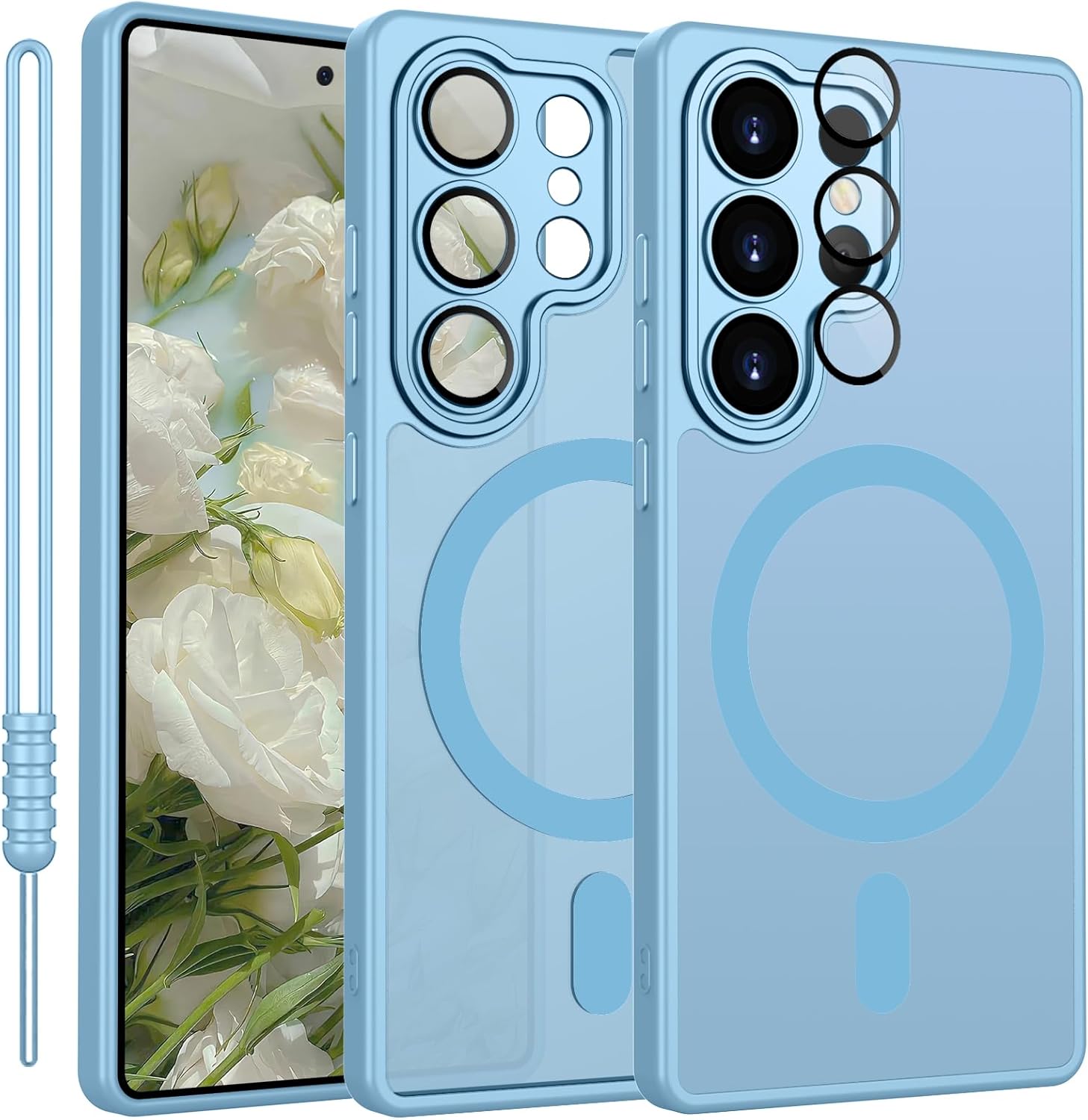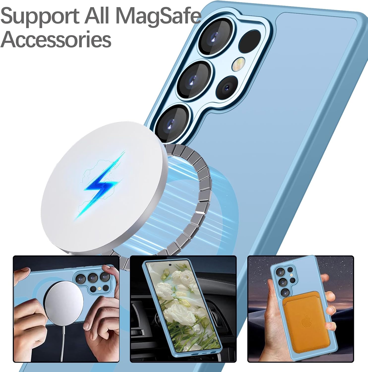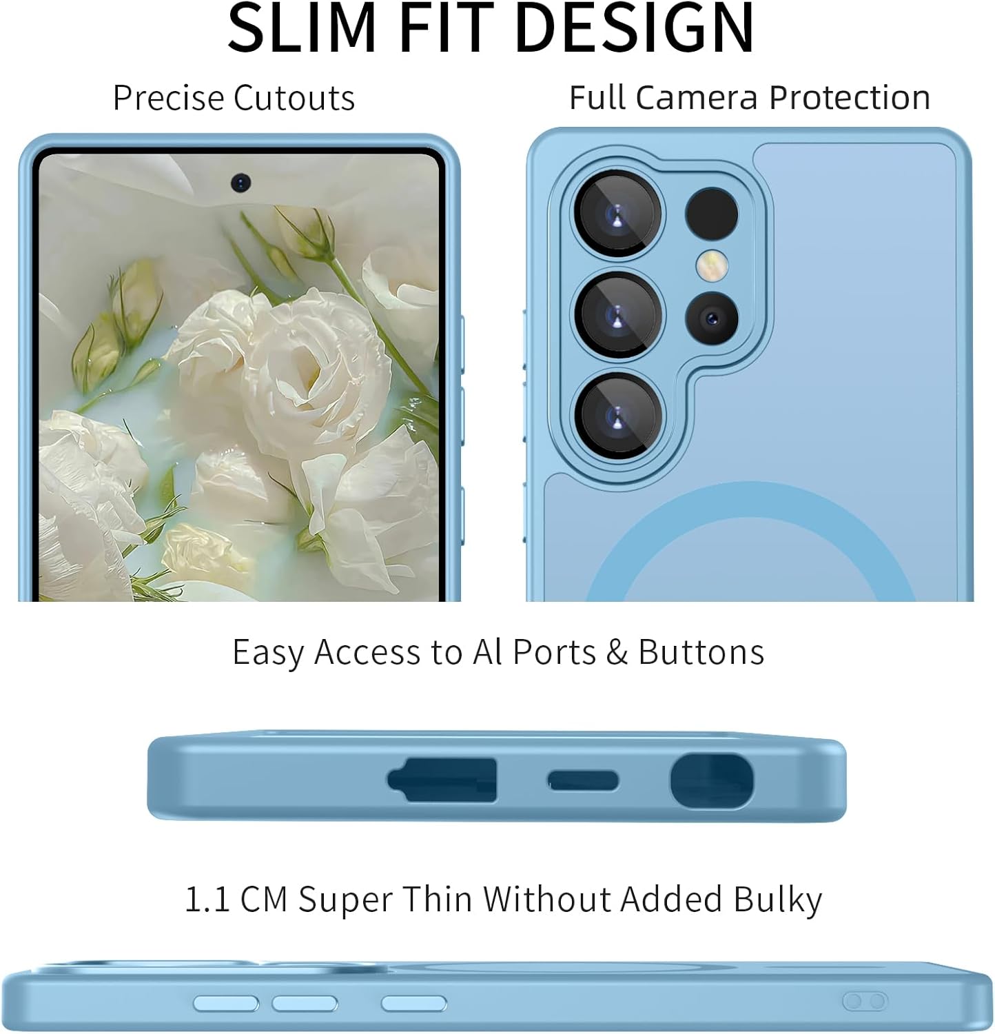 • YUANDMI Тънък магнитен калъф за телефон за Samsung Galaxy S24, не е съвместим с други версии. Поддържа безжично зареждане: