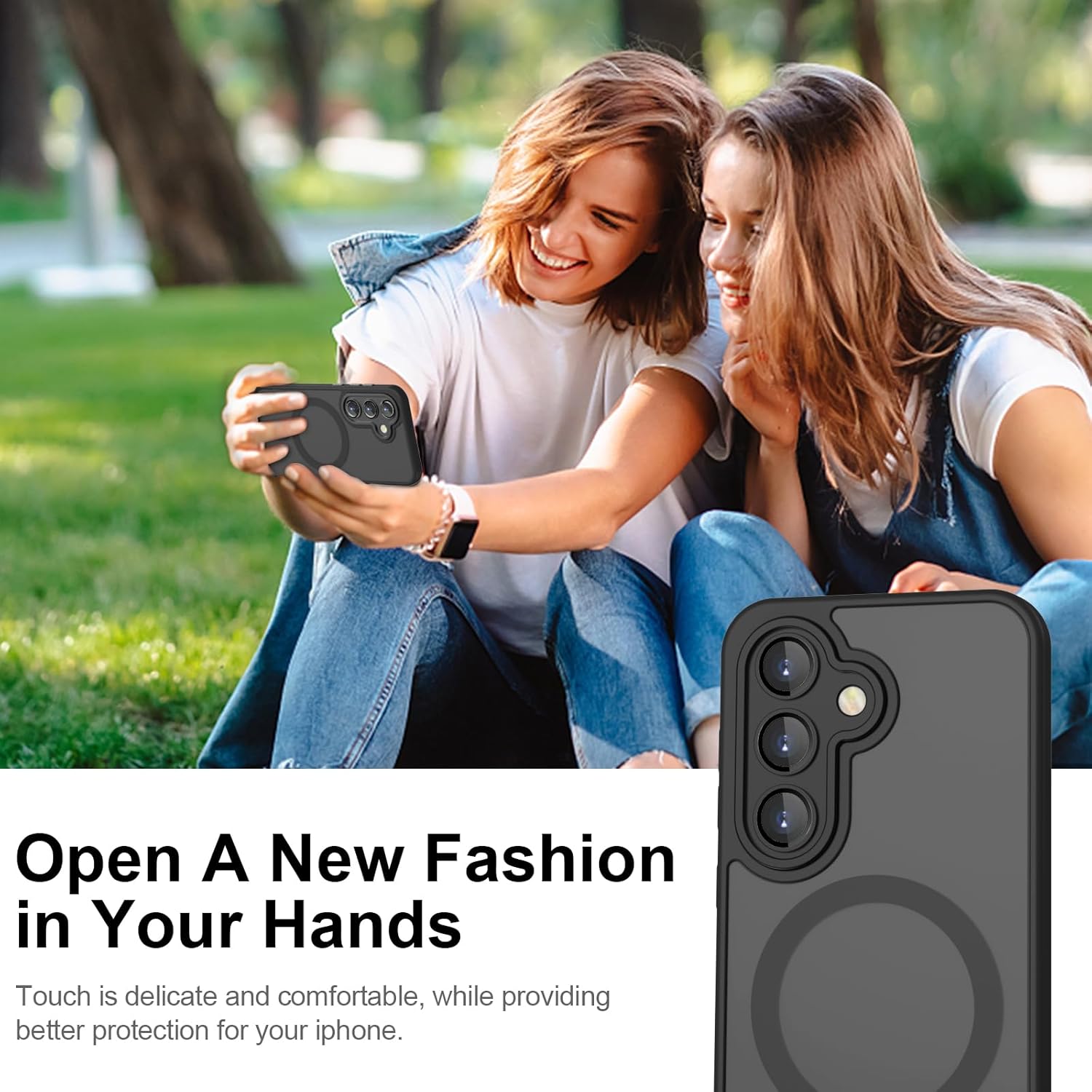 Калъф за Samsung Galaxy S24 FE, съвместим с MagSafe, Калъф за мобилен телефон за Samsung Galaxy S24 FE, магнитен, матов, със сензорна защита на камерата, неплъзгащ се, устойчив на надраскване, удароустойчив