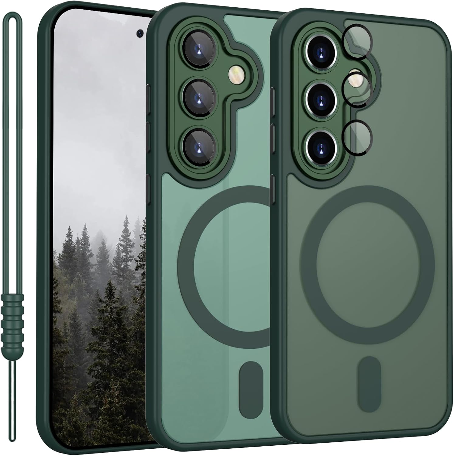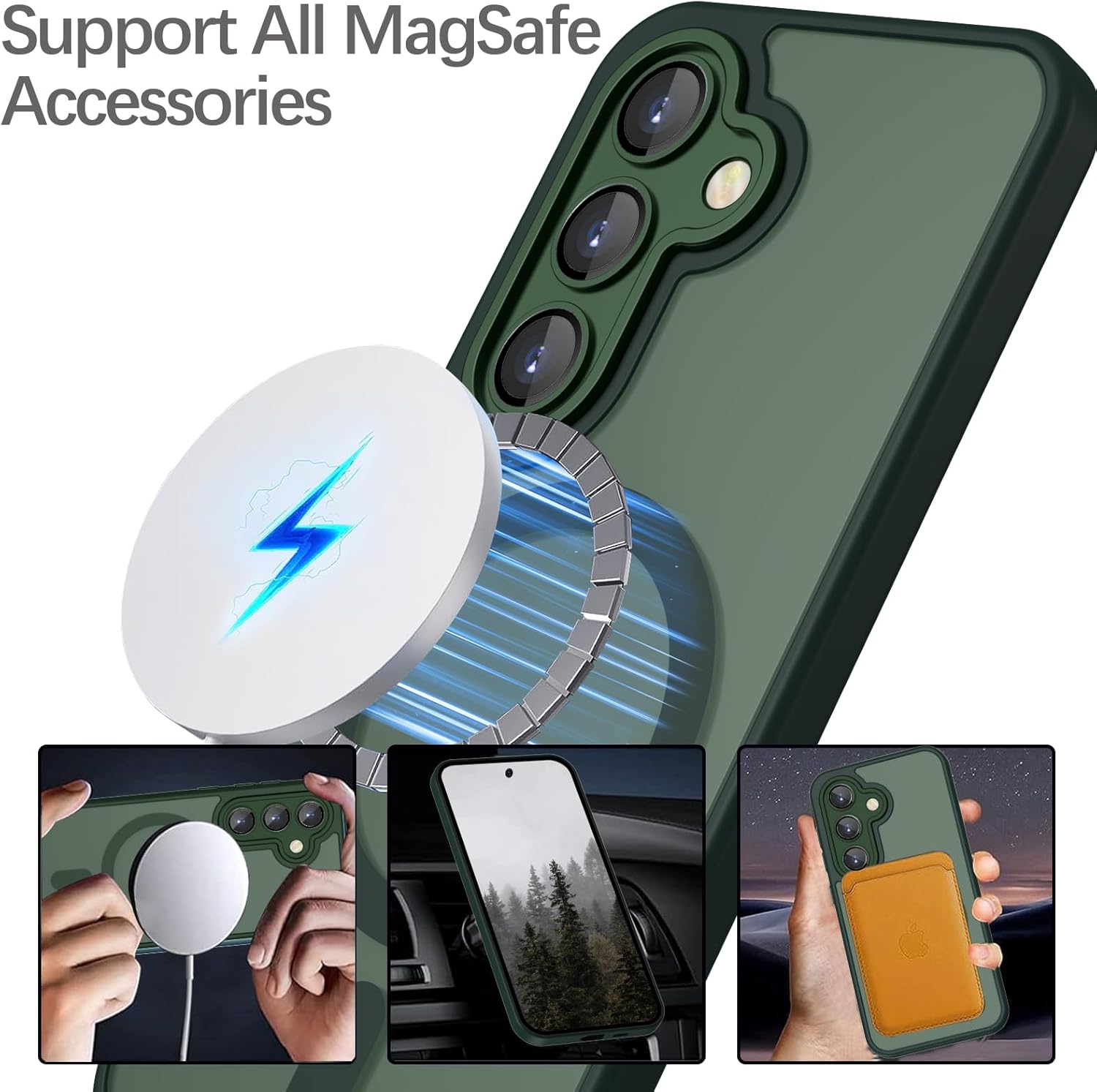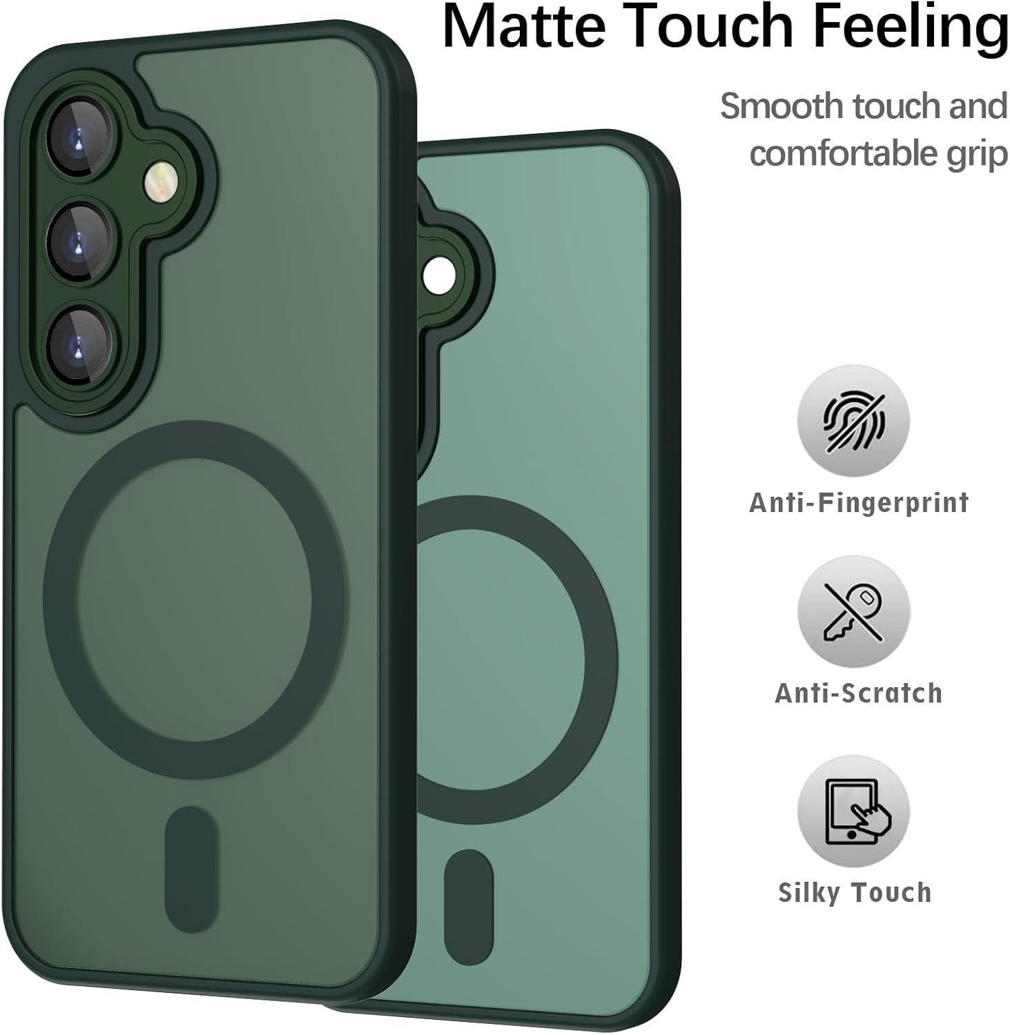 Калъф за Samsung Galaxy S24 FE, съвместим с MagSafe, Калъф за мобилен телефон за Samsung Galaxy S24 FE, магнитен, матов, със сензорна защита на камерата, неплъзгащ се, устойчив на надраскване, удароустойчив