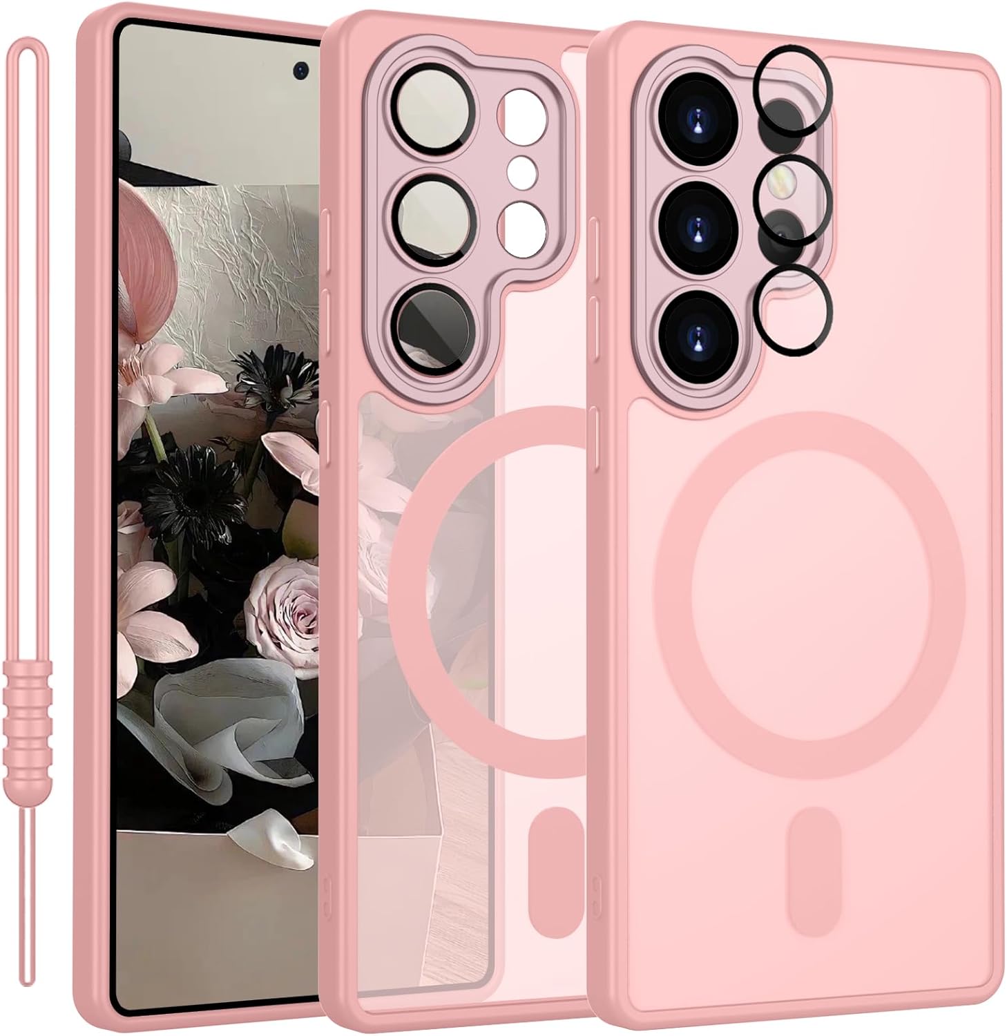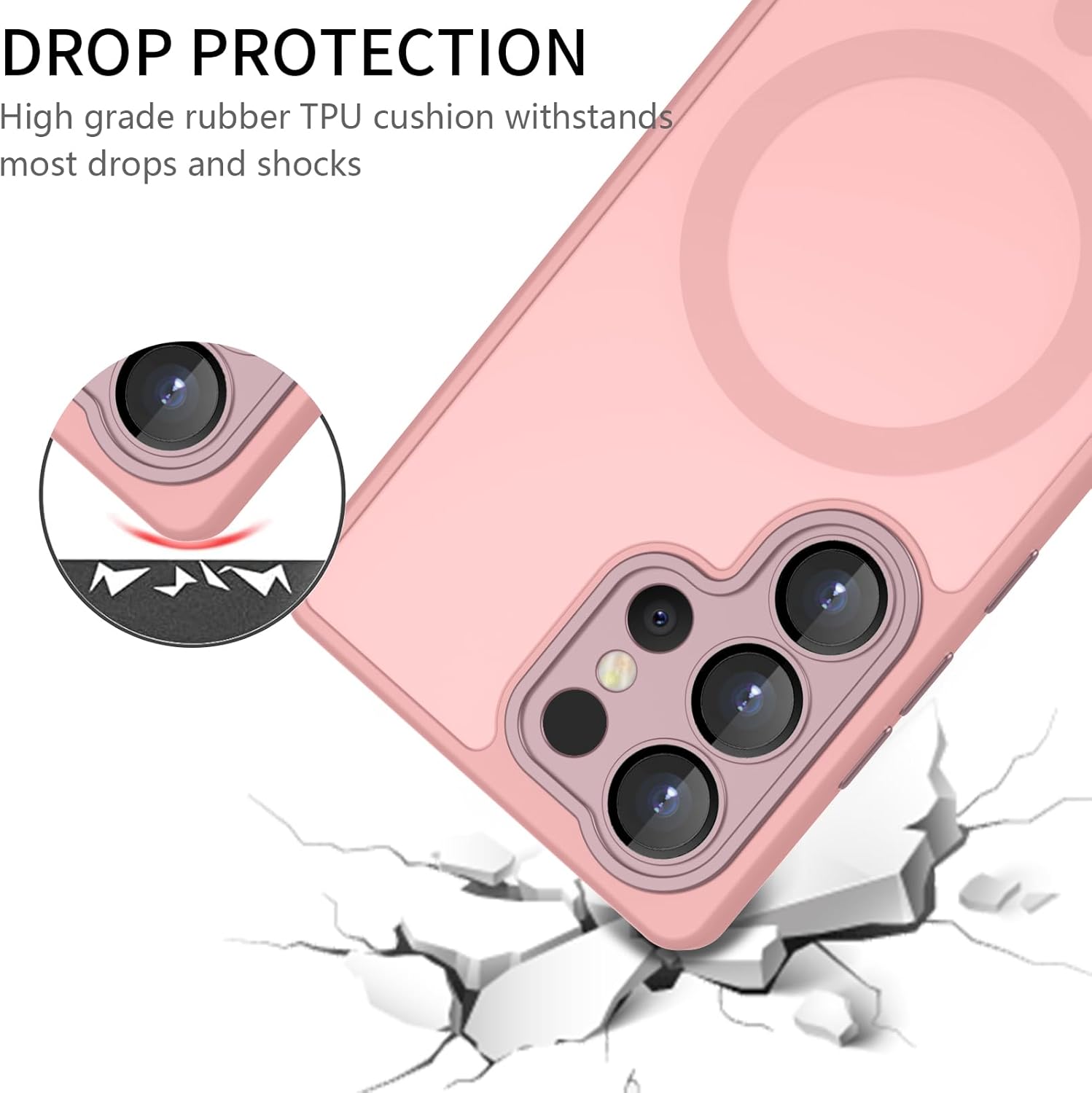 Калъф за Samsung Galaxy S24 Ultra, съвместим с MagSafe, Калъф за мобилен телефон за Samsung Galaxy S24 Ultra, магнитен, матов, със сензорен екран, защита на камерата, неплъзгаща се, устойчива на надраскване защита.