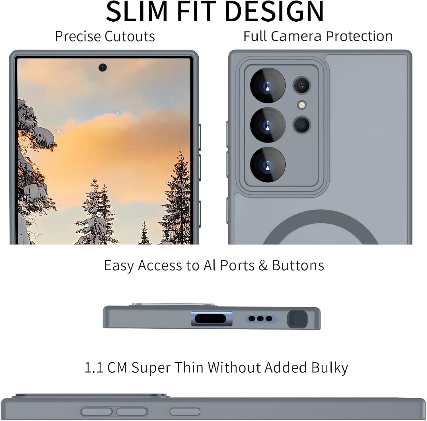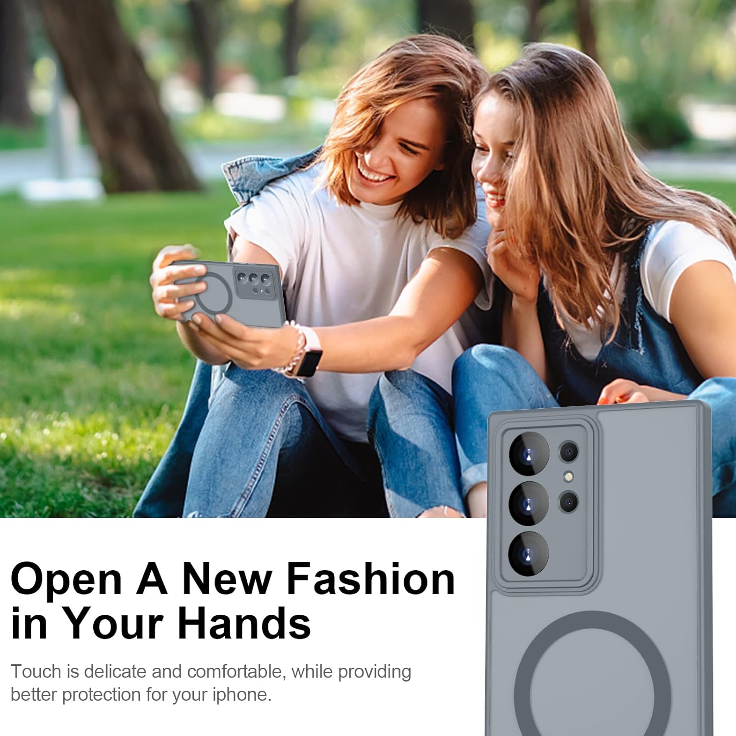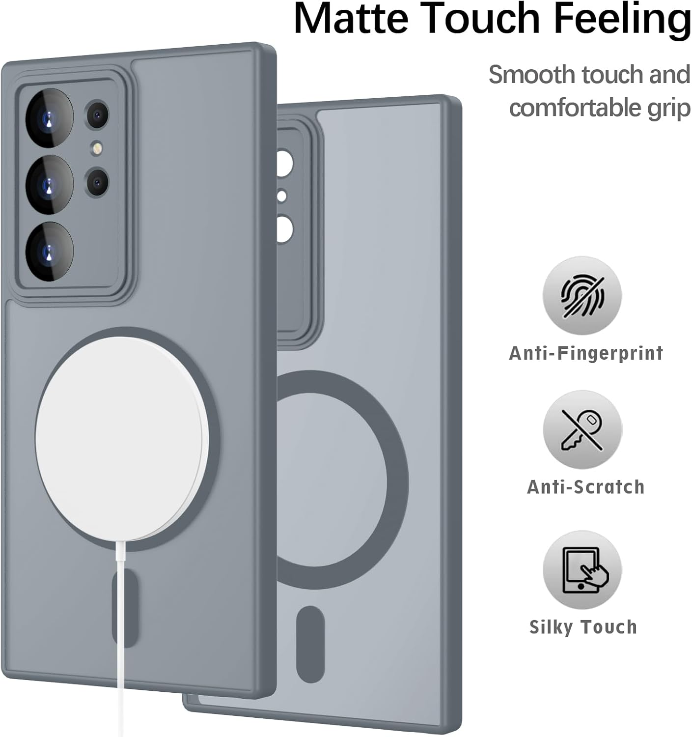 Калъф за Samsung Galaxy S24 Ultra, съвместим с MagSafe, Калъф за мобилен телефон за Samsung Galaxy S24 Ultra, магнитен, матов, със сензорен екран, защита на камерата, неплъзгаща се, устойчива на надраскване защита.