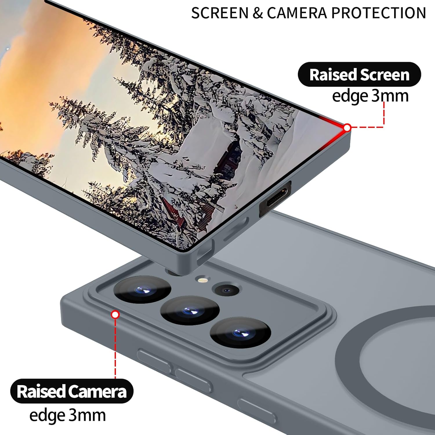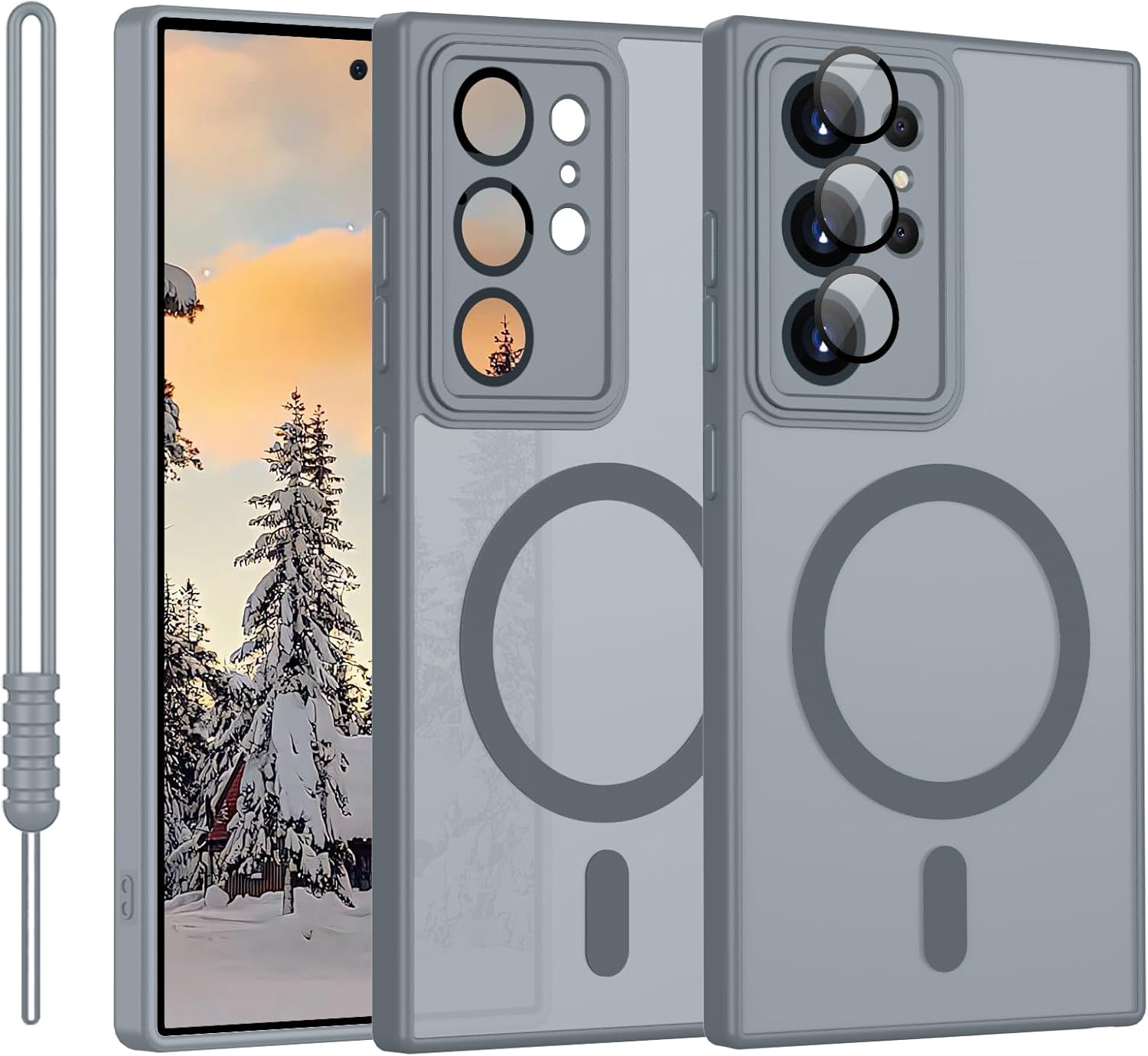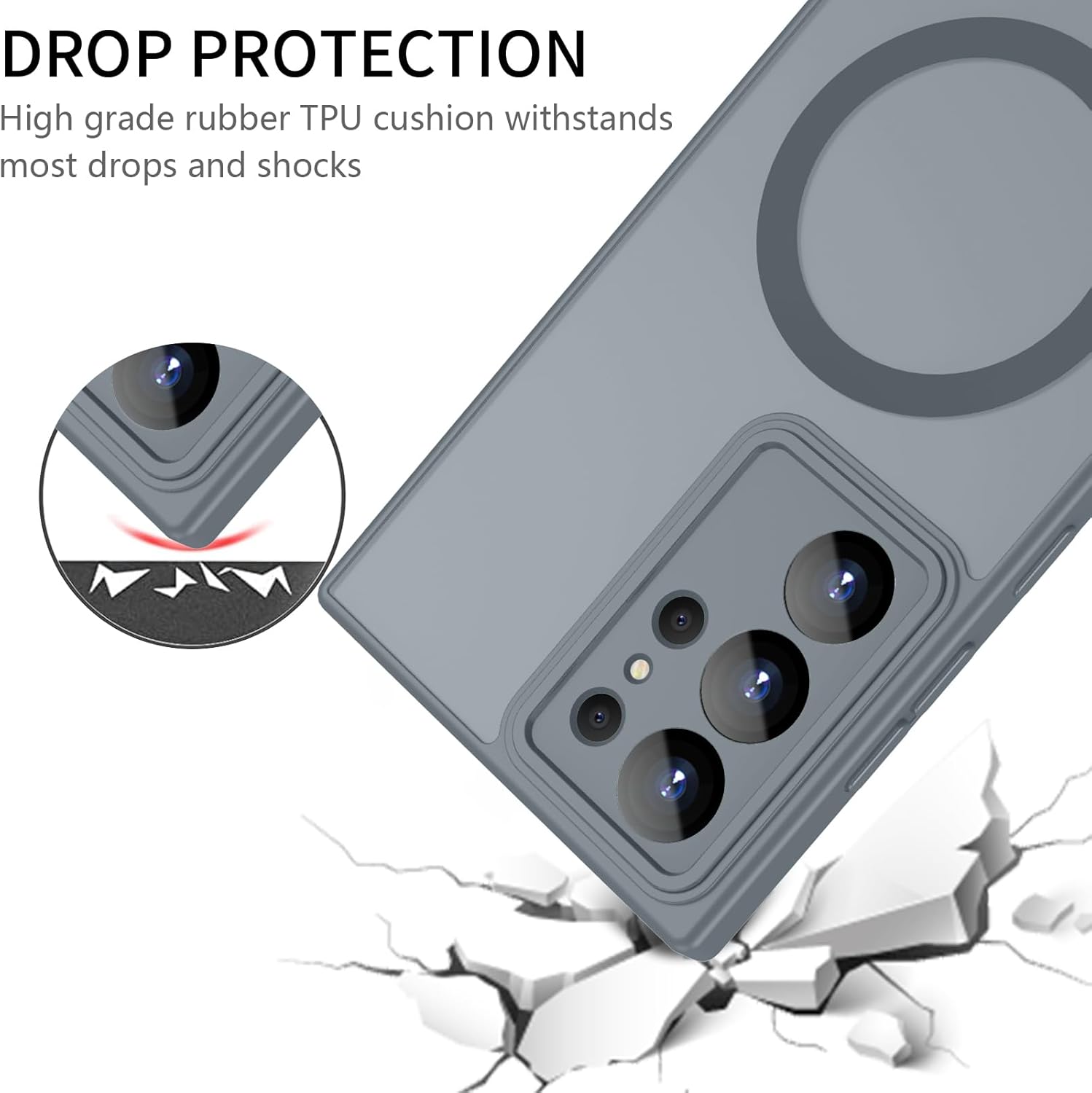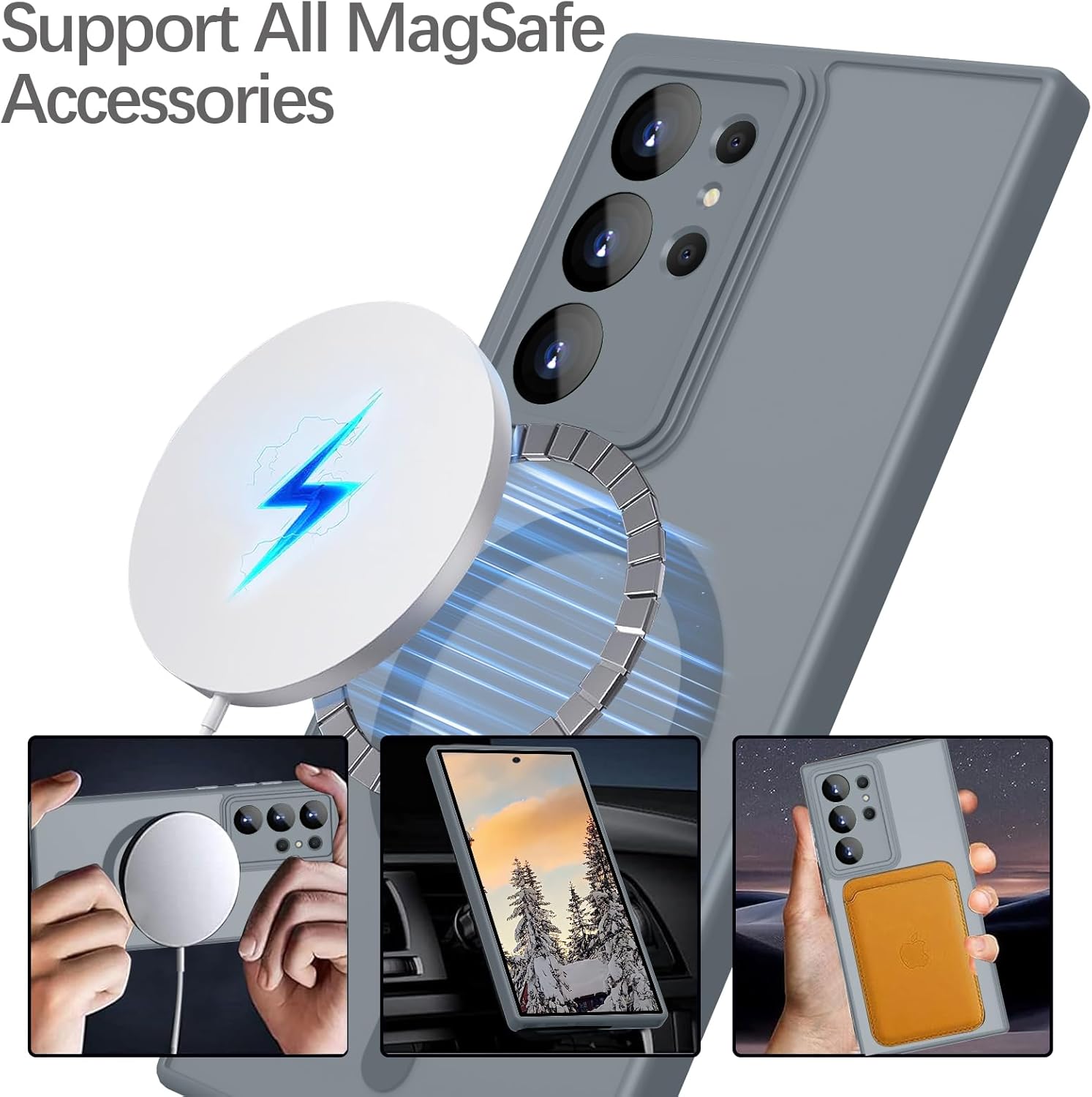 Калъф за Samsung Galaxy S24 Ultra, съвместим с MagSafe, Калъф за мобилен телефон за Samsung Galaxy S24 Ultra, магнитен, матов, със сензорен екран, защита на камерата, неплъзгаща се, устойчива на надраскване защита.