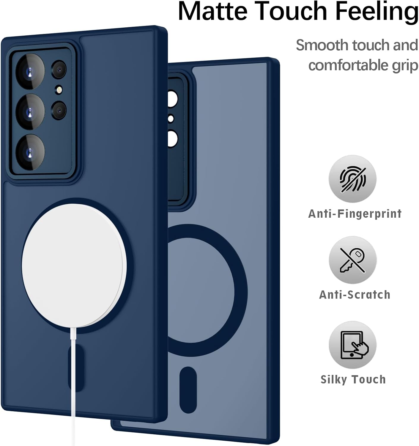 Калъф за Samsung Galaxy S24 Ultra, съвместим с MagSafe, Калъф за мобилен телефон за Samsung Galaxy S24 Ultra, магнитен, матов, със сензорен екран, защита на камерата, неплъзгаща се, устойчива на надраскване защита.