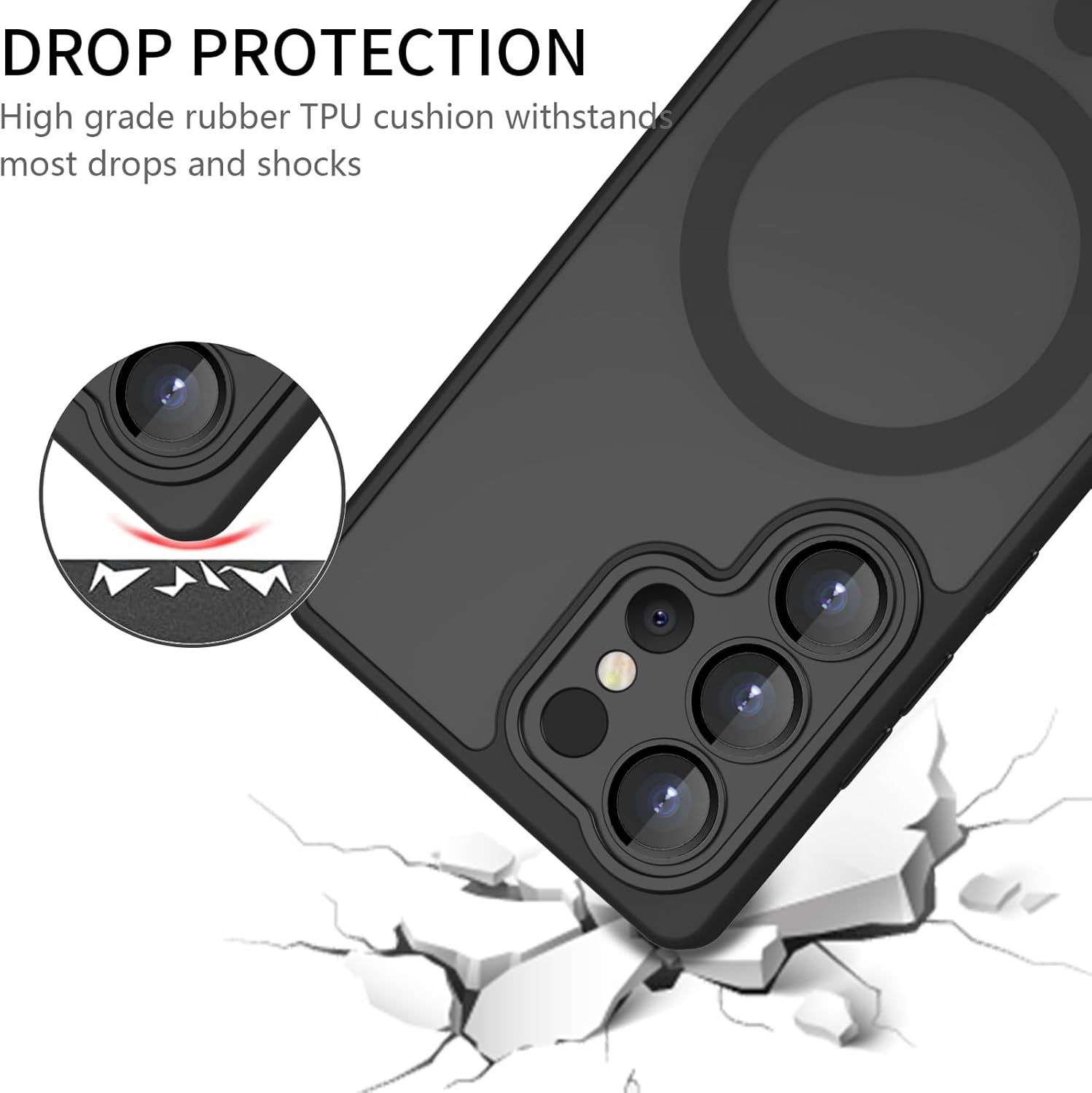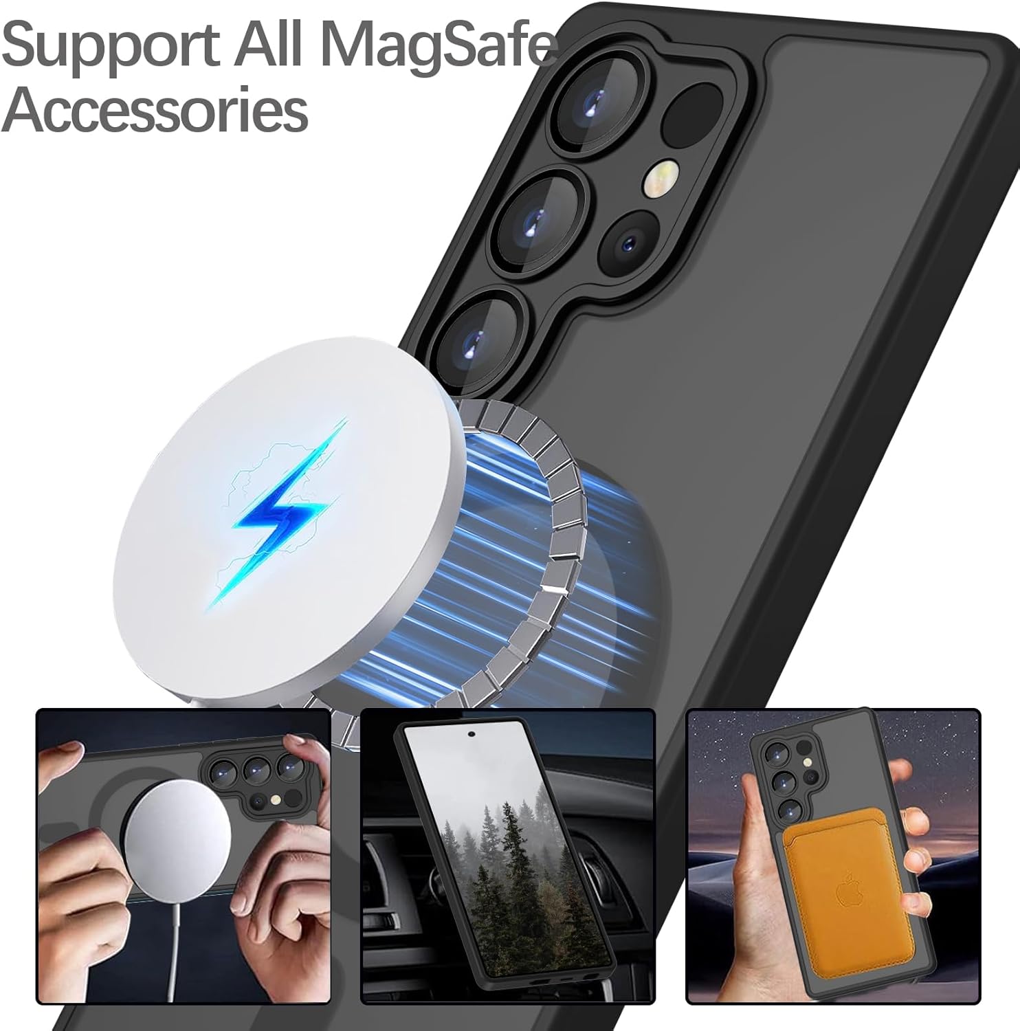 Калъф за Samsung Galaxy S24 Ultra, съвместим с MagSafe, Калъф за мобилен телефон за Samsung Galaxy S24 Ultra, магнитен, матов, със сензорен екран, защита на камерата, неплъзгаща се, устойчива на надраскване защита.