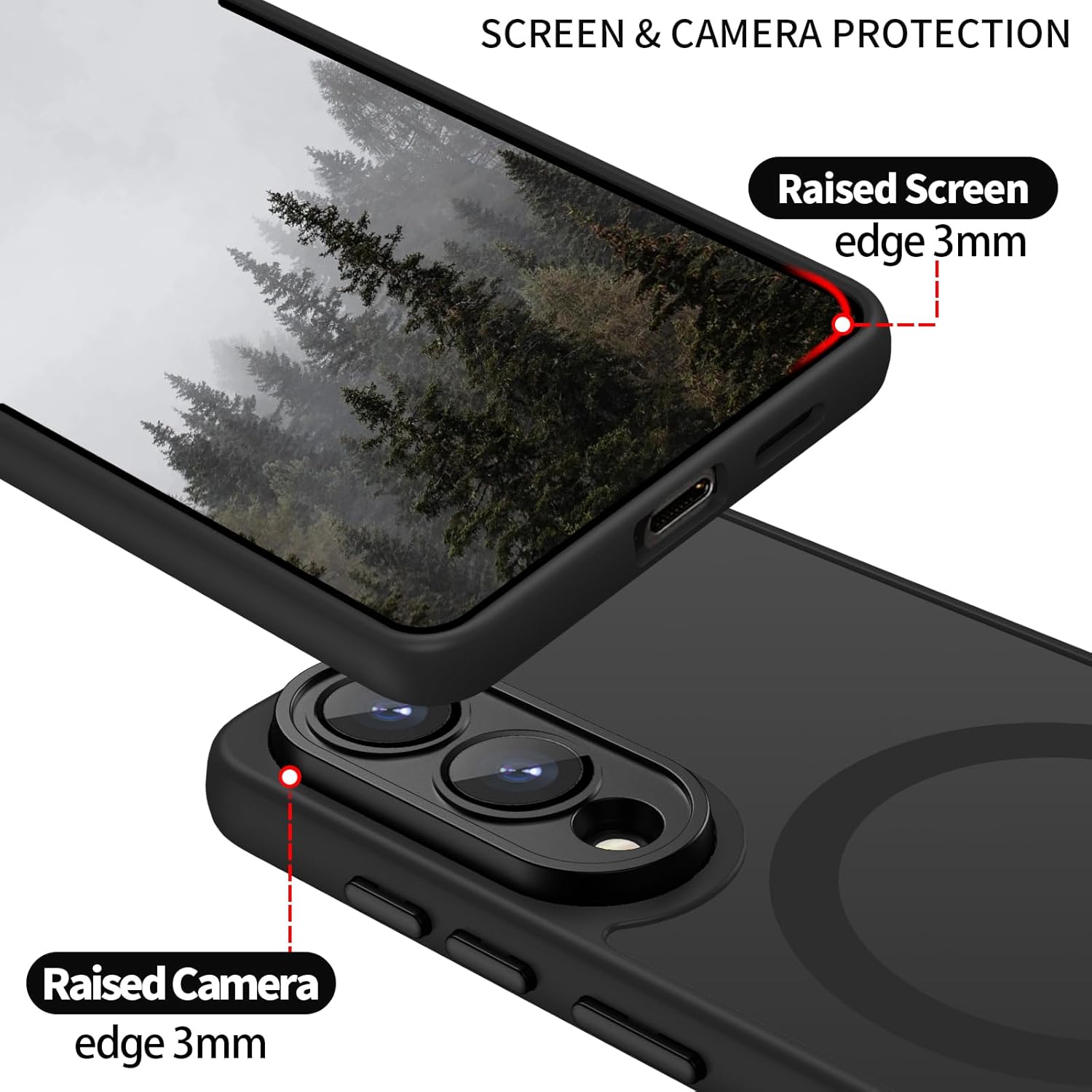 Калъф за Samsung Galaxy S25 Edge, Съвместим с MagSafe, Калъф за мобилен телефон за Samsung Galaxy S25 Edge, Магнитна матова защита на сензорната камера, Неплъзгаща се защита, устойчива на надраскване