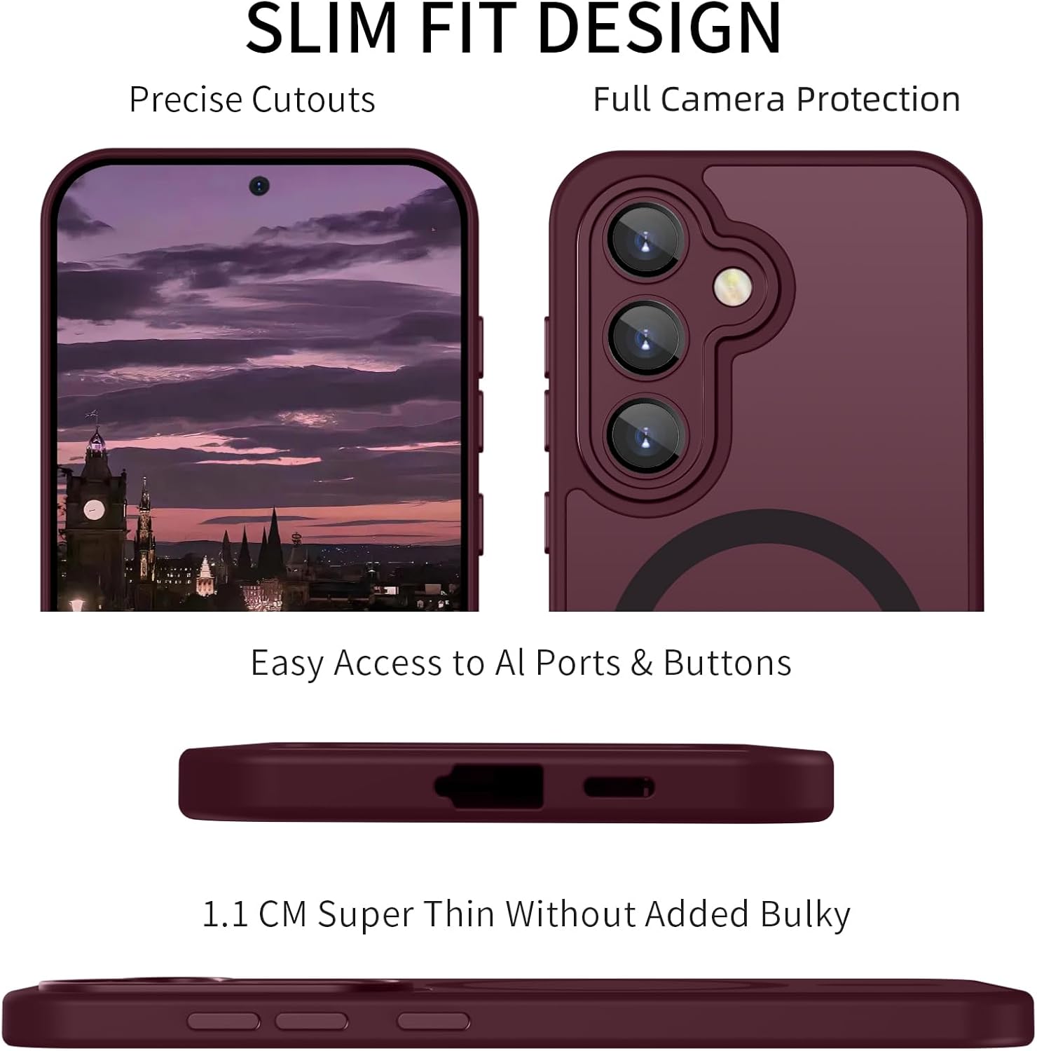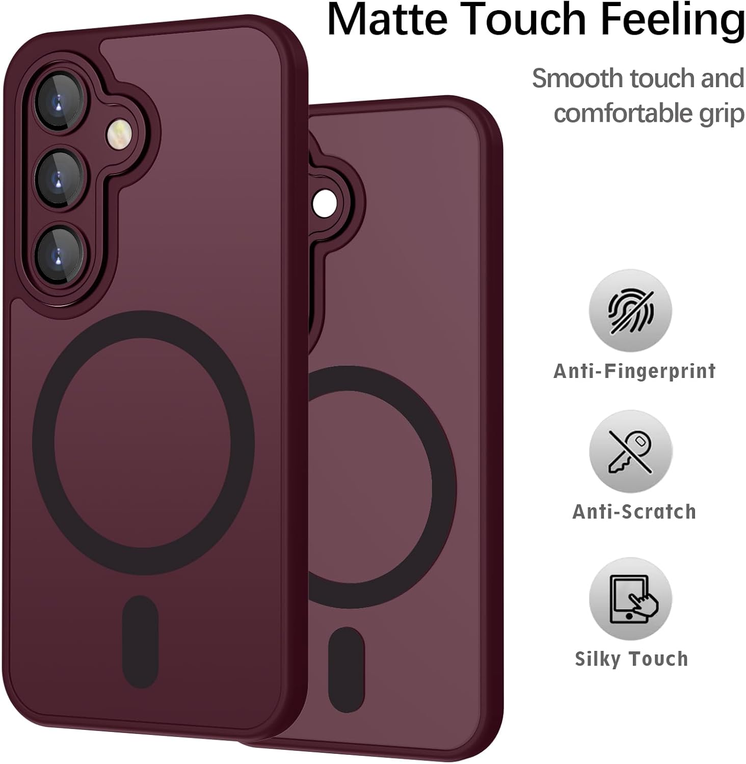 Калъф за Samsung Galaxy S25 FE, съвместим с MagSafe, Калъф за мобилен телефон за Samsung Galaxy S25 FE, магнитен, матов, със сензорна защита на камерата, неплъзгащ се, устойчив на надраскване, удароустойчив