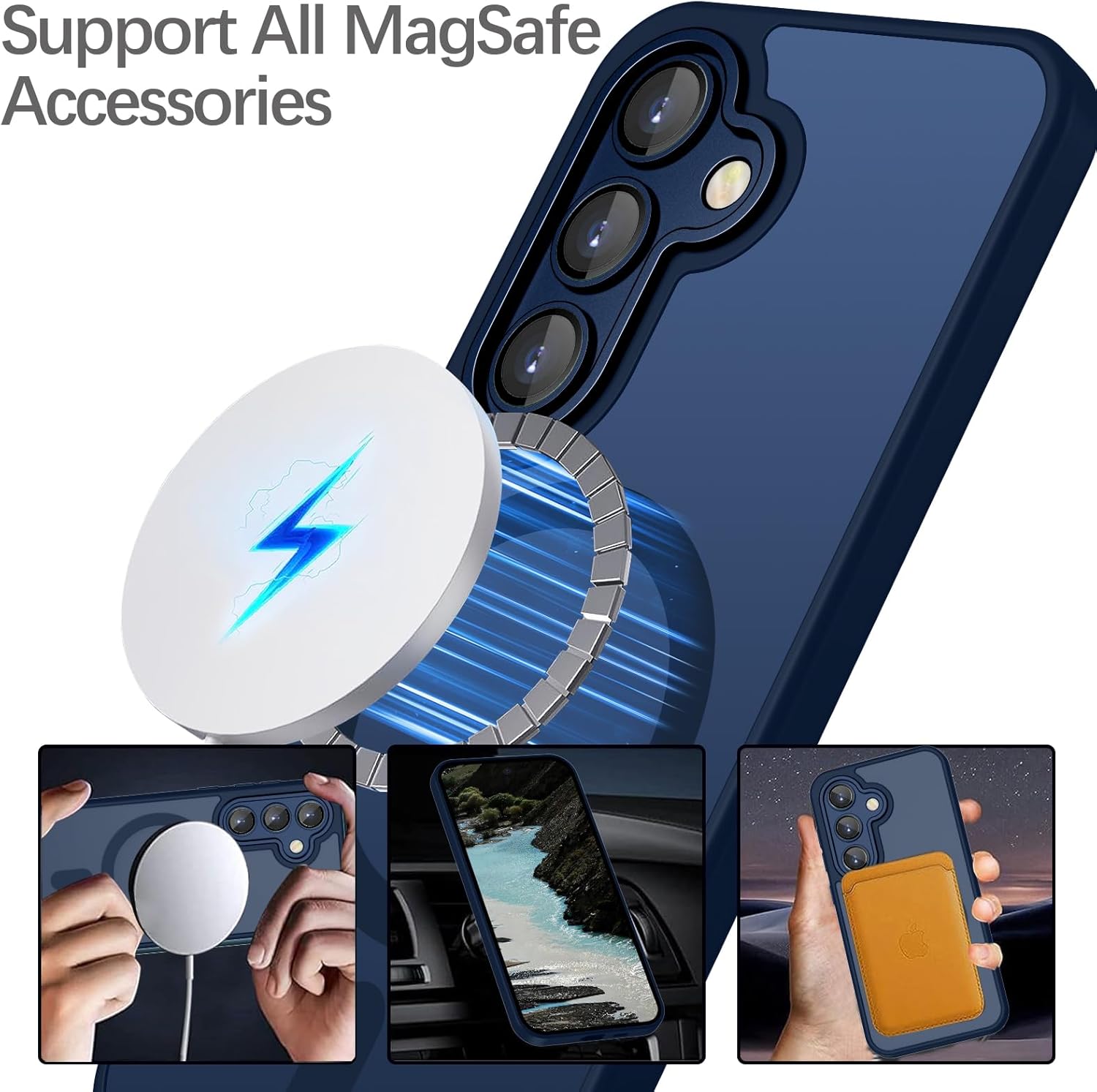 • Този калъф за мобилен телефон за Samsung Galaxy S24 е съвместим с магнитни аксесоари. С вграден магнитен пръстен, осигурява стабилно закрепване и по-бързо безжично зареждане.