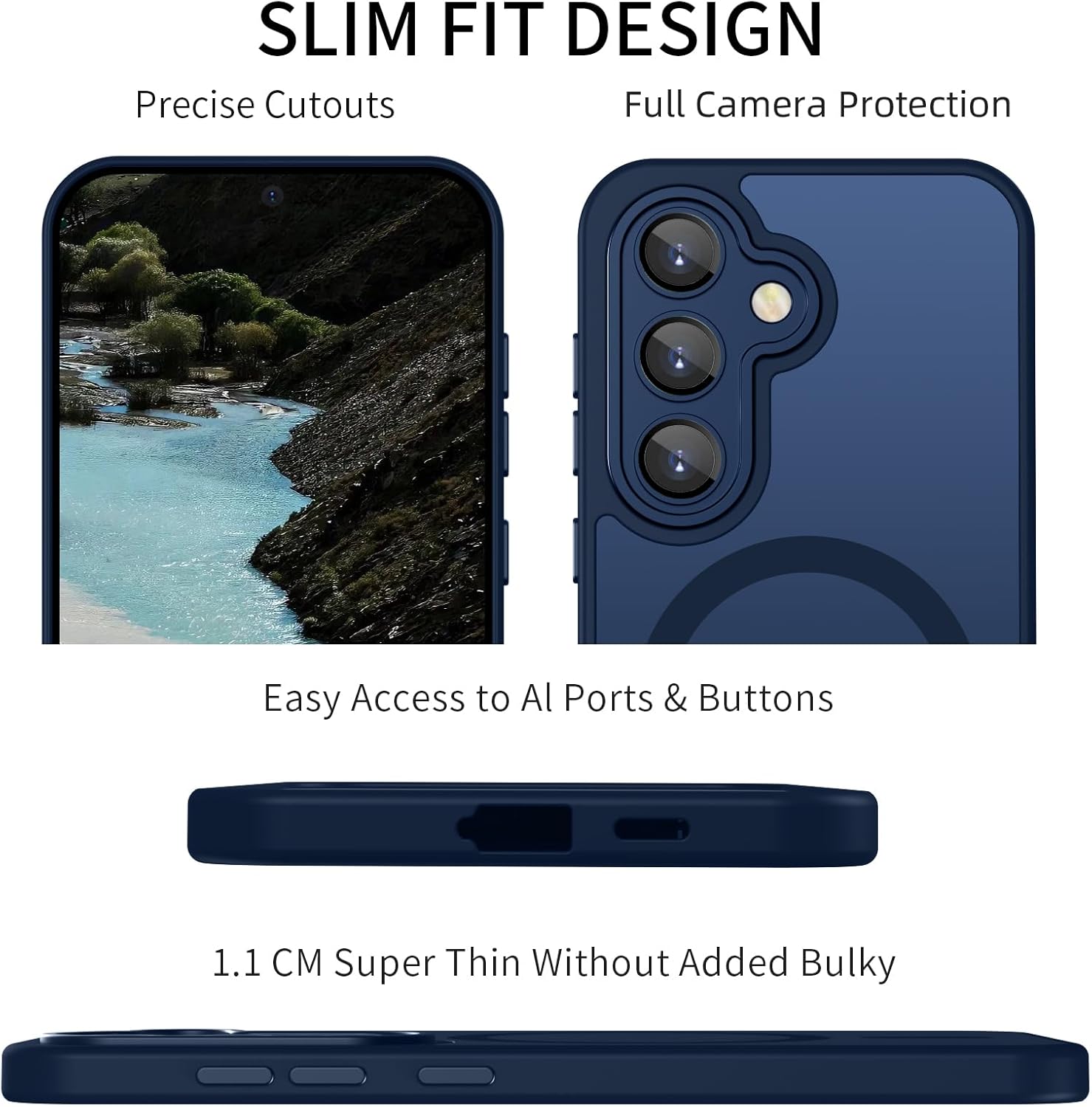 • Slim fit дизайн: стилният, тънък дизайн и мекият защитен материал осигуряват адекватна защита за вашия Samsung Galaxy S24 от драскотини, удари, пръстови отпечатъци и замърсявания. Вграденият мощен магнит позволява по-бързо и лесно безжично зареждане и сигурно закрепване към магнитни аксесоари. Също така перфектно се съчетава с други магнитни аксесоари.