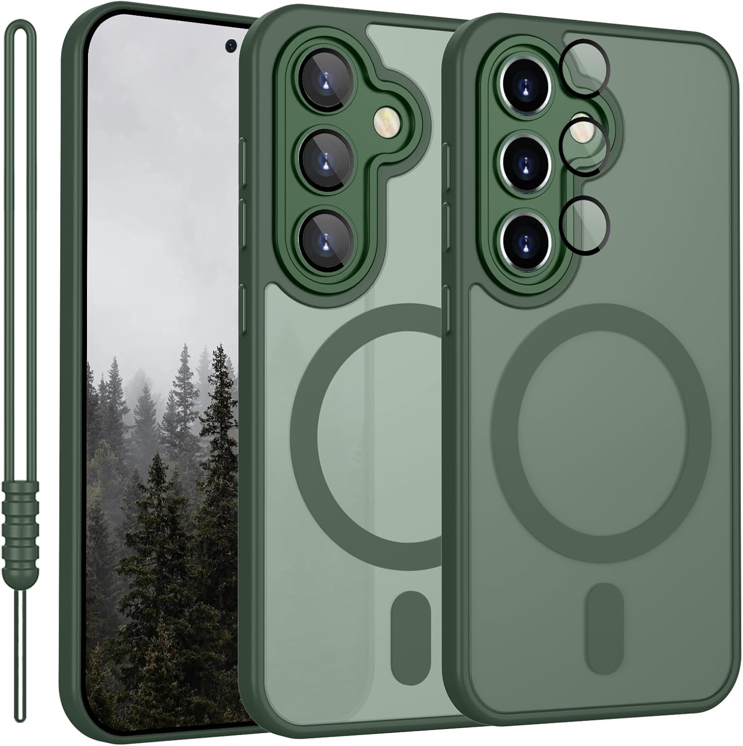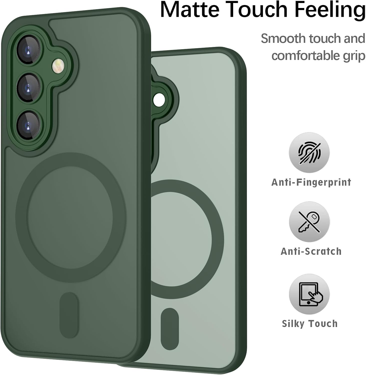 Калъф за Samsung Galaxy S25 FE, съвместим с MagSafe, Калъф за мобилен телефон за Samsung Galaxy S25 FE, магнитен, матов, със сензорна защита на камерата, неплъзгащ се, устойчив на надраскване, удароустойчив