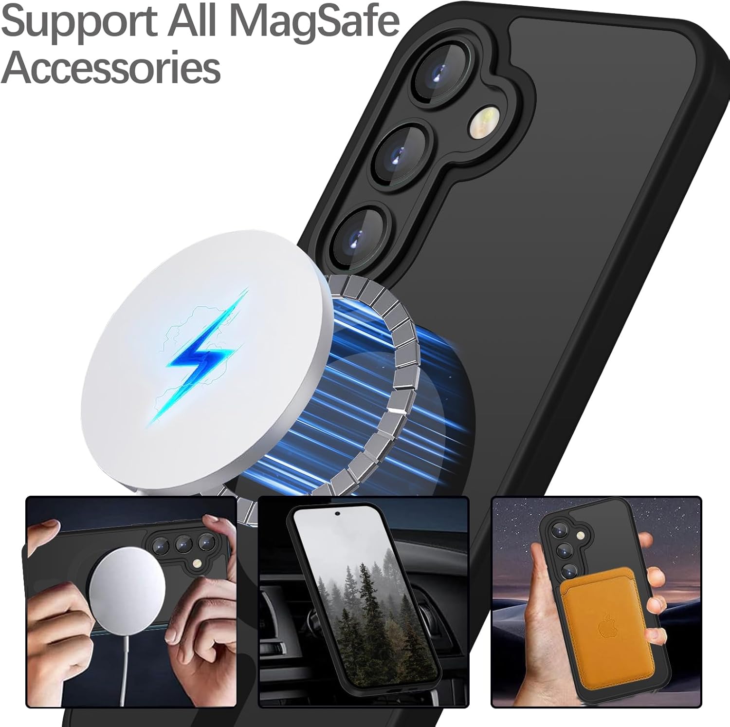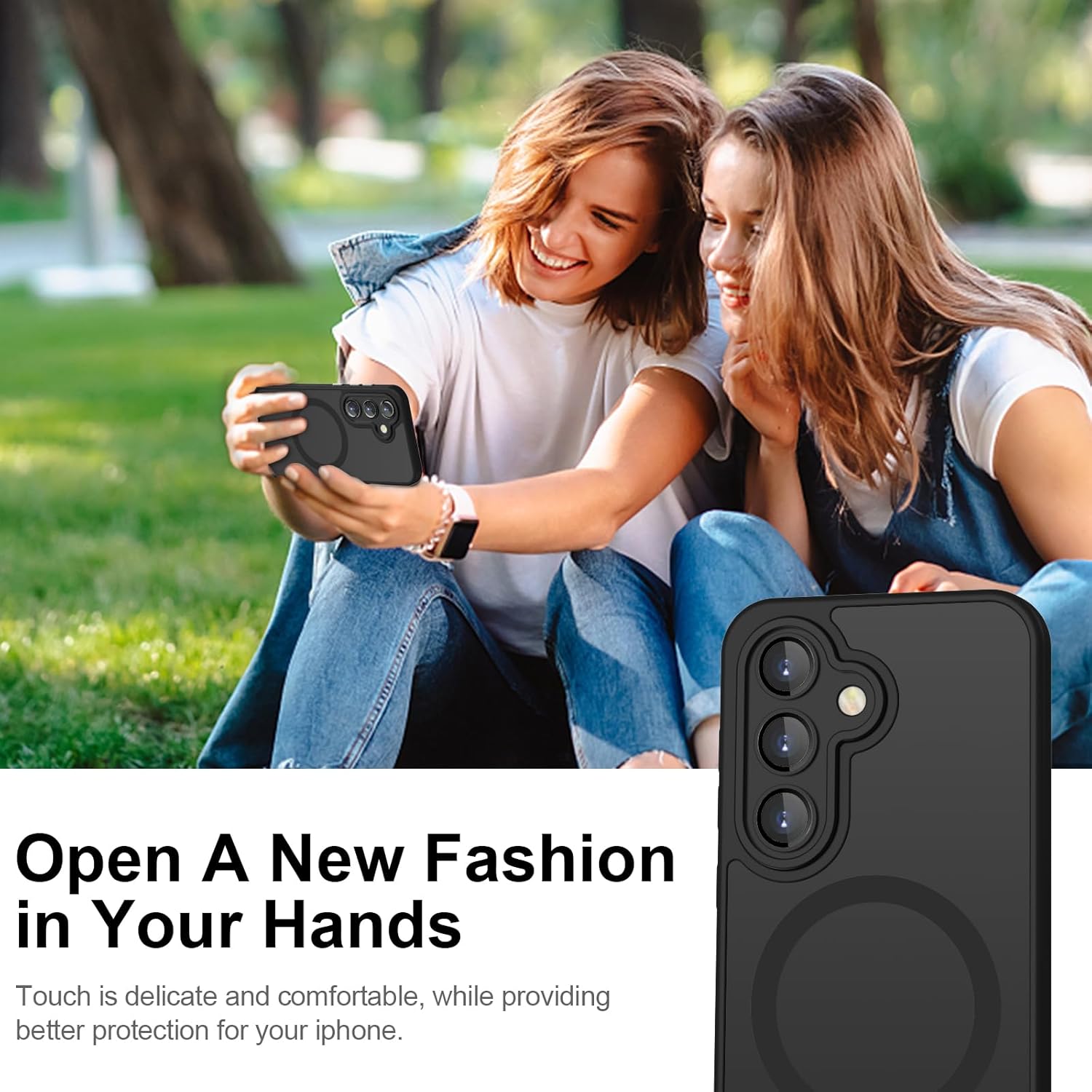 Калъф за Samsung Galaxy S25 FE, съвместим с MagSafe, Калъф за мобилен телефон за Samsung Galaxy S25 FE, магнитен, матов, със сензорна защита на камерата, неплъзгащ се, устойчив на надраскване, удароустойчив