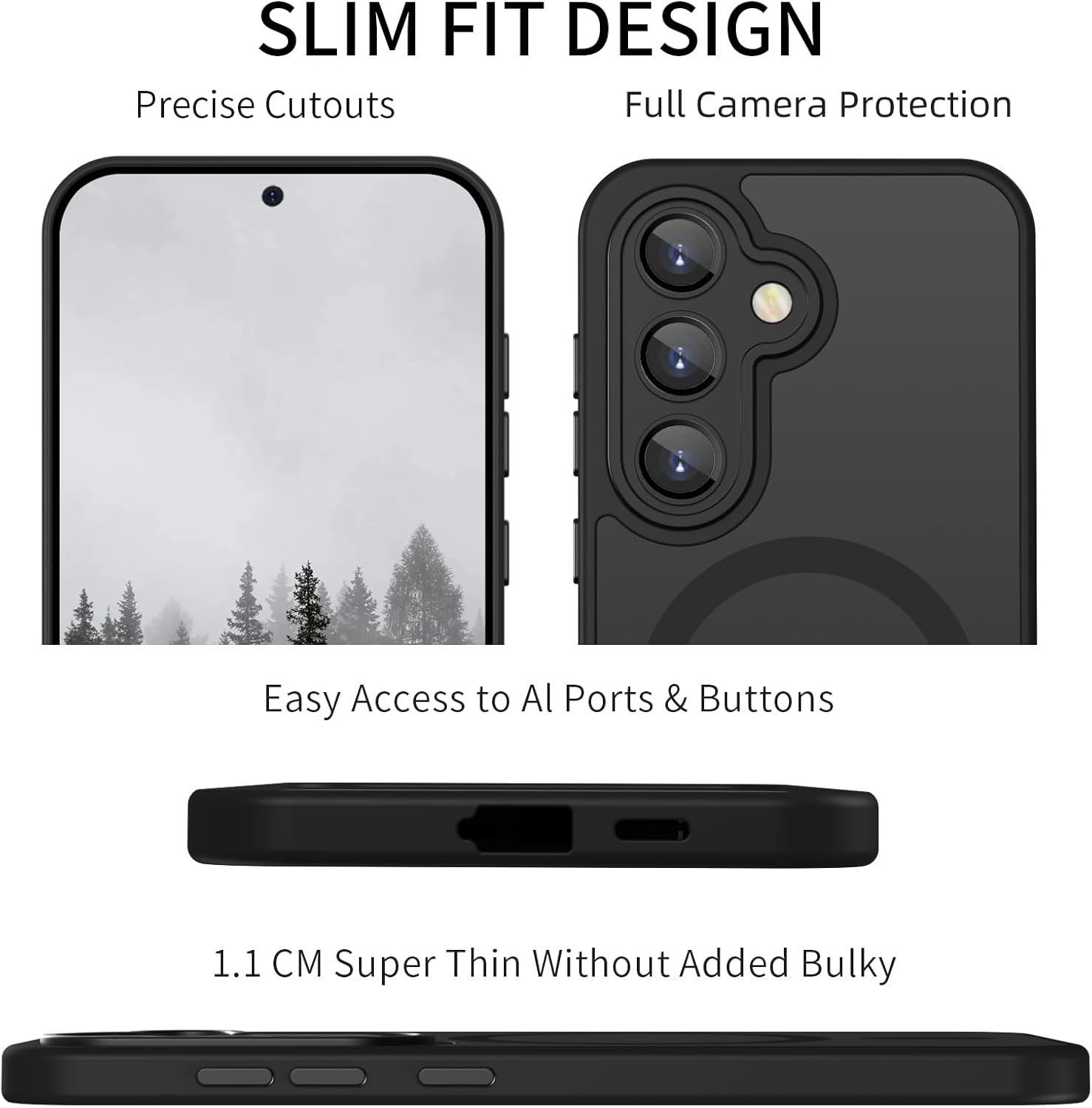 • YUANDMI Тънък магнитен калъф за телефон за Samsung Galaxy S24, не е съвместим с други версии. Поддържа безжично зареждане: