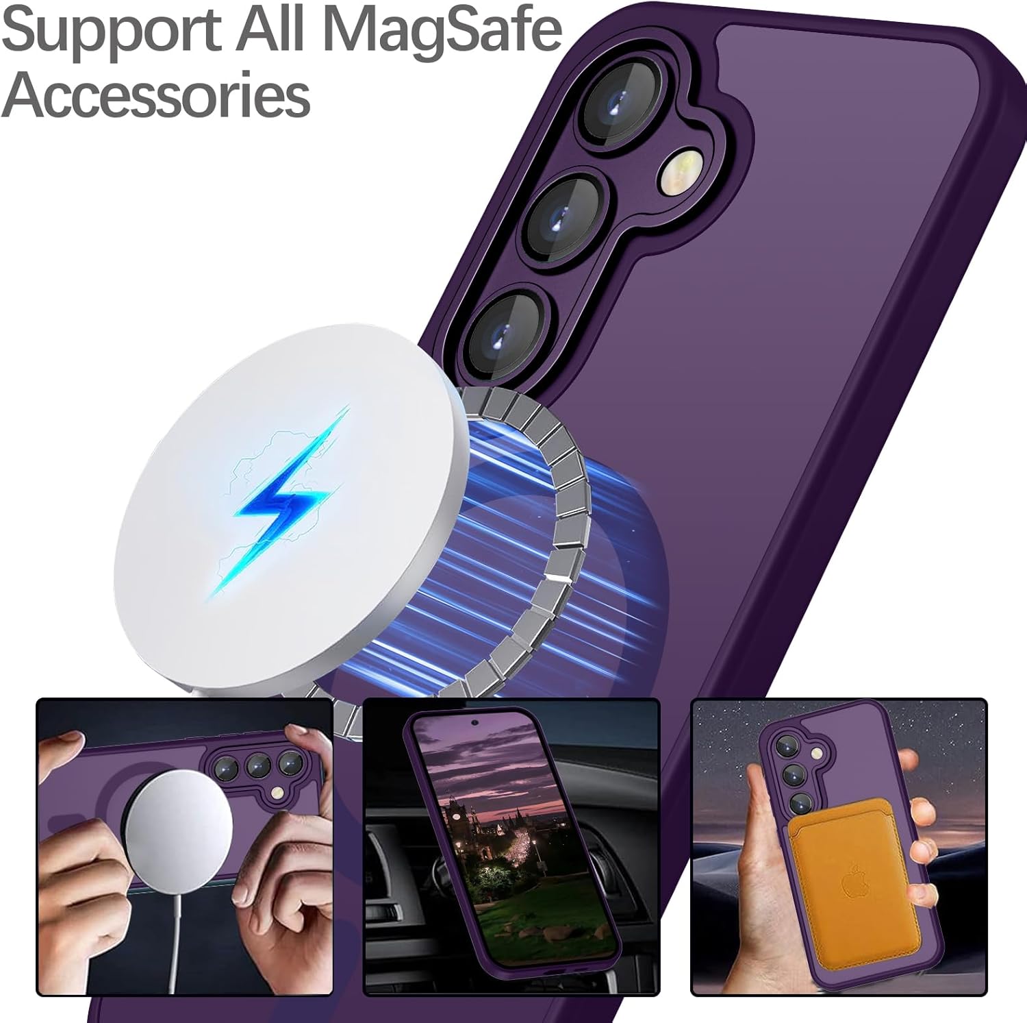• Този калъф за мобилен телефон за Samsung Galaxy S24 е съвместим с магнитни аксесоари. С вграден магнитен пръстен, осигурява стабилно закрепване и по-бързо безжично зареждане.