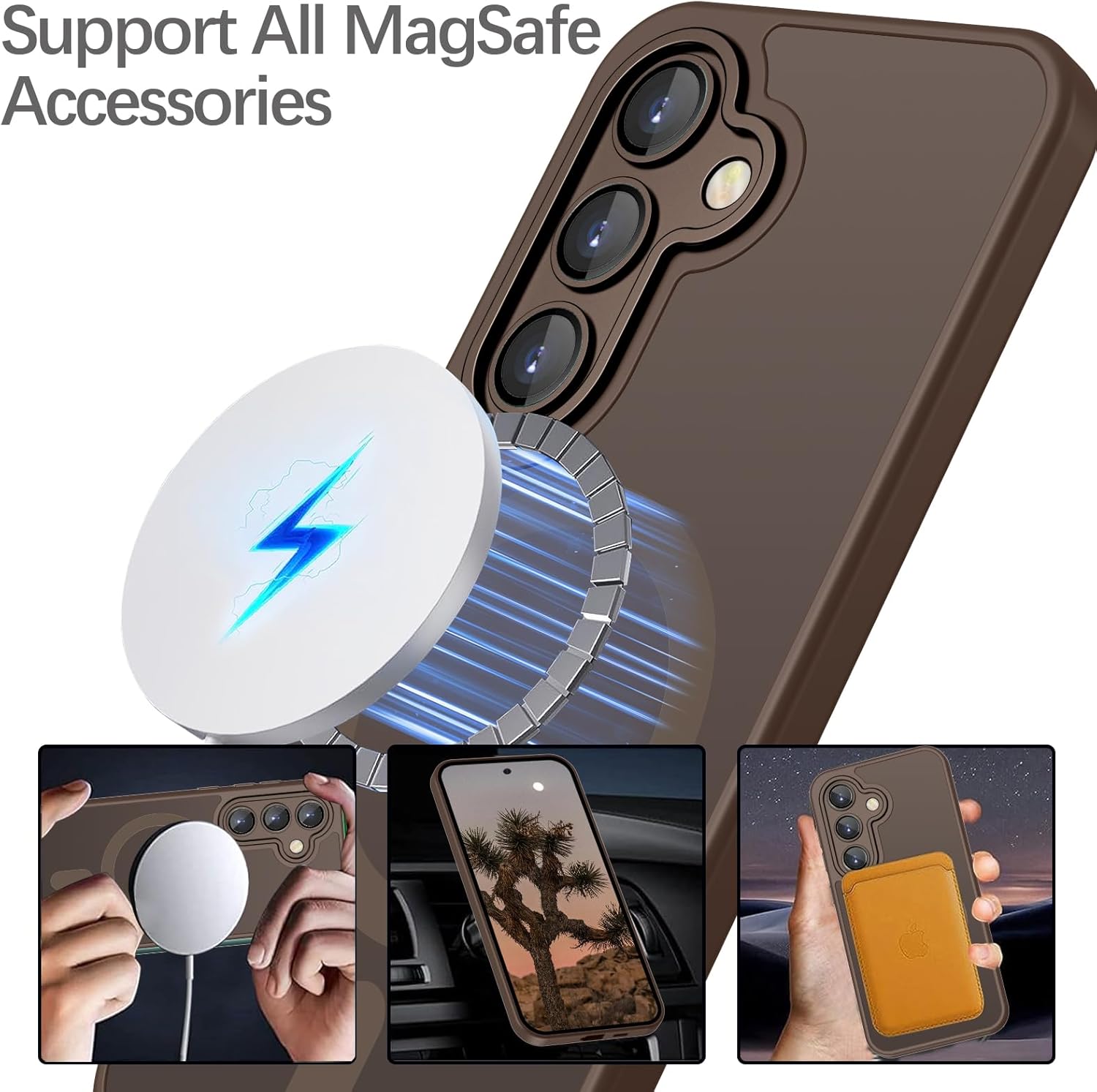 Калъф за Samsung Galaxy S25 FE, съвместим с MagSafe, Калъф за мобилен телефон за Samsung Galaxy S25 FE, магнитен, матов, със сензорна защита на камерата, неплъзгащ се, устойчив на надраскване, удароустойчив