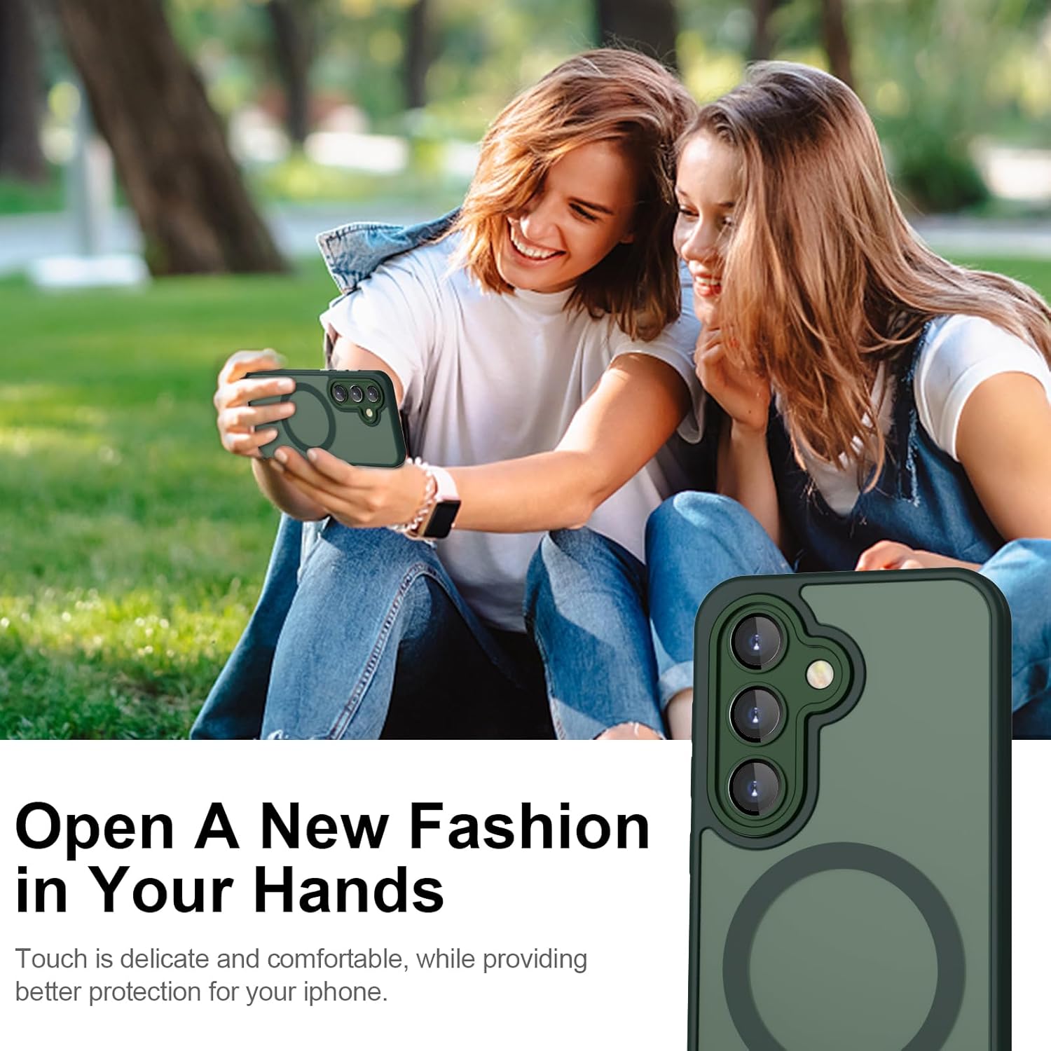 Калъф за Samsung Galaxy S25 Plus, Съвместим с MagSafe, Калъф за мобилен телефон за Samsung Galaxy S25 Plus, Магнитен матов сензорен протектор за камерата, Неплъзгащ се, Устойчив на надраскване, Защита