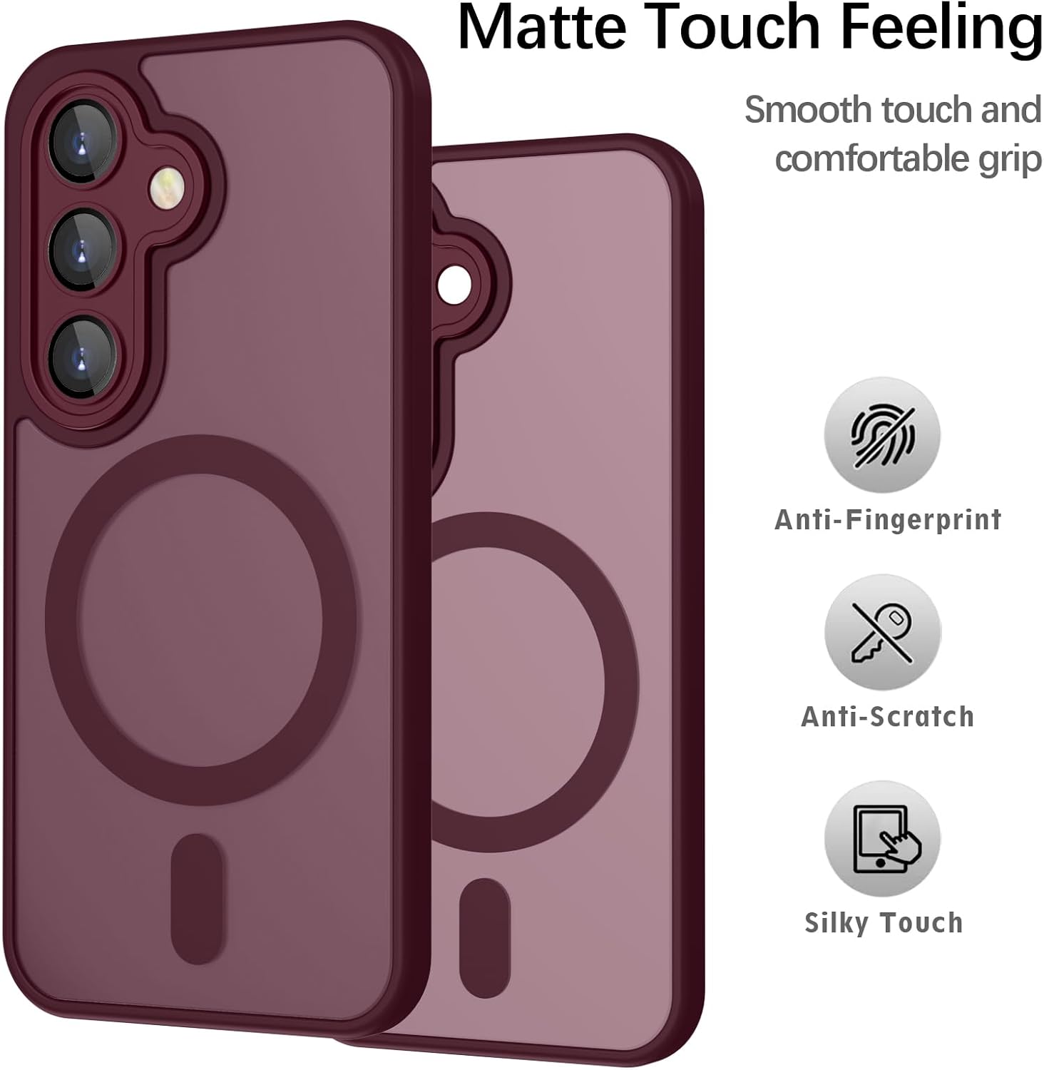 Калъф за Samsung Galaxy S25 Plus, Съвместим с MagSafe, Калъф за мобилен телефон за Samsung Galaxy S25 Plus, Магнитен матов сензорен протектор за камерата, Неплъзгащ се, Устойчив на надраскване, Защита