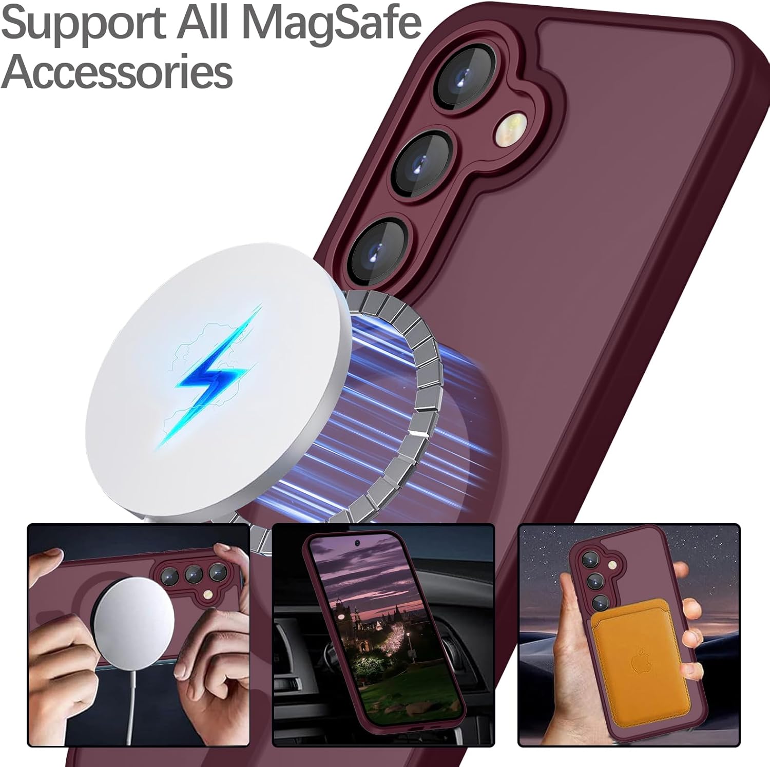 • Този калъф за мобилен телефон за Samsung Galaxy S24 е съвместим с магнитни аксесоари. С вграден магнитен пръстен, осигурява стабилно закрепване и по-бързо безжично зареждане.