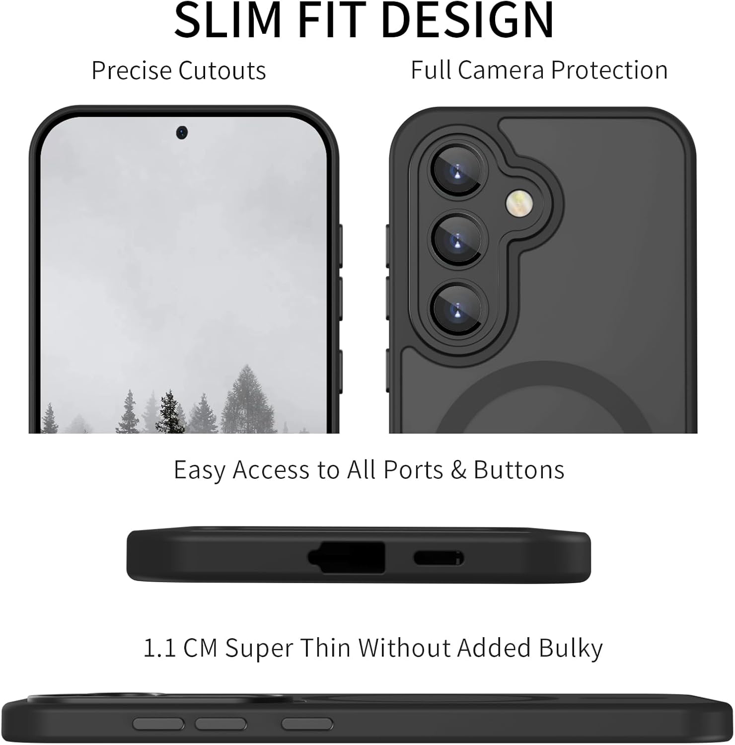 • Slim fit дизайн: стилният, тънък дизайн и мекият защитен материал осигуряват адекватна защита за вашия Samsung Galaxy S24 от драскотини, удари, пръстови отпечатъци и замърсявания. Вграденият мощен магнит позволява по-бързо и лесно безжично зареждане и сигурно закрепване към магнитни аксесоари. Също така перфектно се съчетава с други магнитни аксесоари.