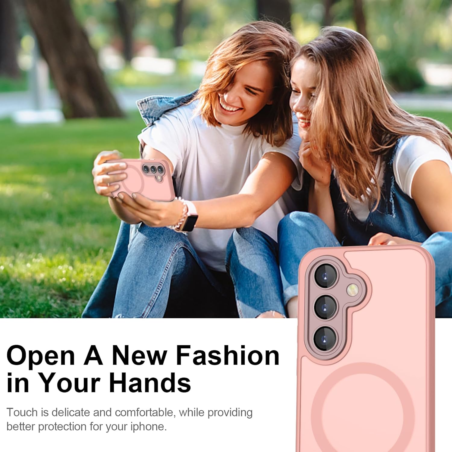 Калъф за Samsung Galaxy S25, Съвместим с MagSafe, Калъф за мобилен телефон за Samsung Galaxy S25, Магнитна матова защита на сензорната камера, Неплъзгащ се, Устойчив на надраскване, Удароустойчив, Розов