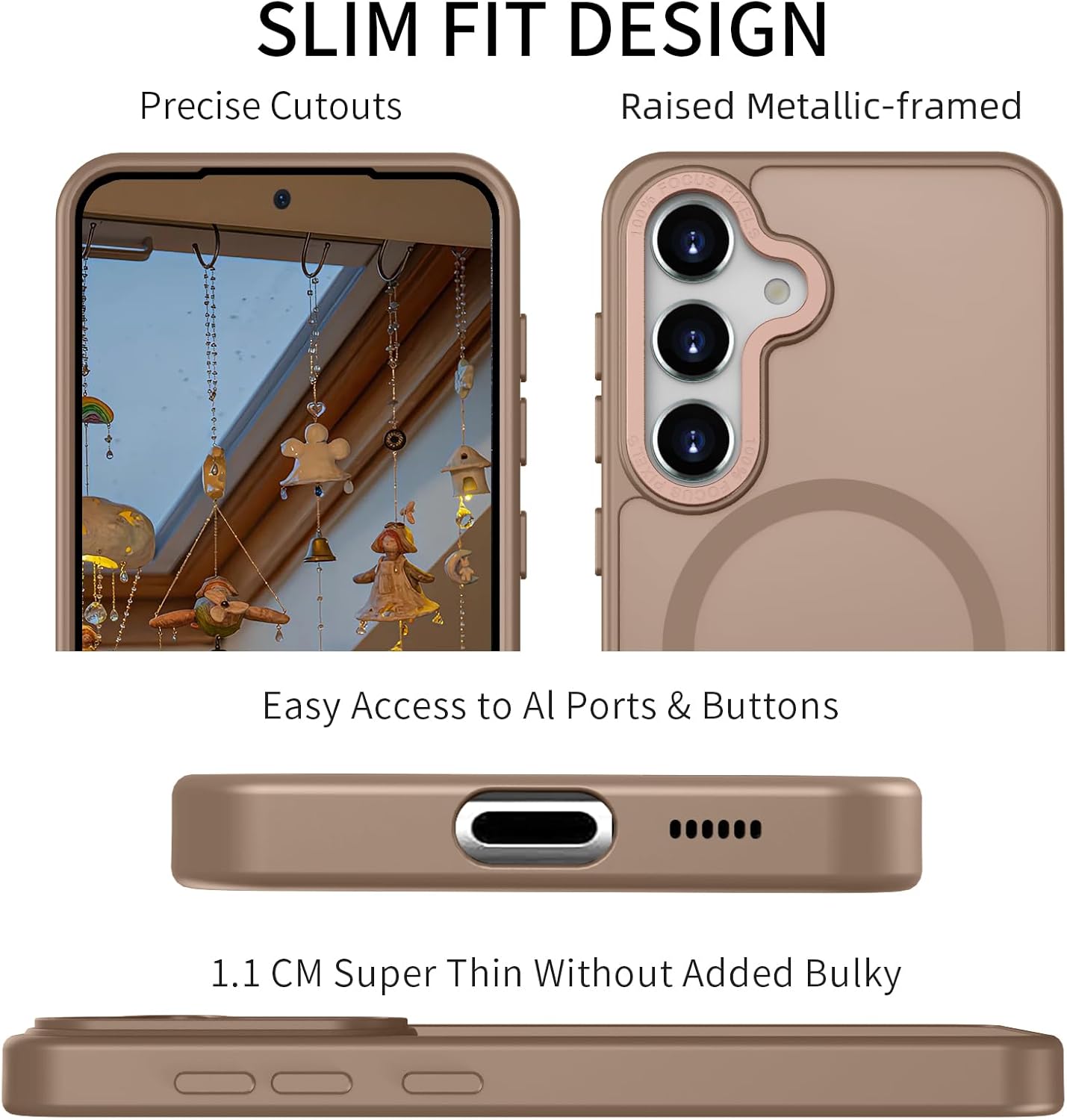 • Slim fit дизайн: стилният, тънък дизайн и мекият защитен материал осигуряват адекватна защита за вашия Samsung Galaxy S24 от драскотини, удари, пръстови отпечатъци и замърсявания. Вграденият мощен магнит позволява по-бързо и лесно безжично зареждане и сигурно закрепване към магнитни аксесоари. Също така перфектно се съчетава с други магнитни аксесоари.