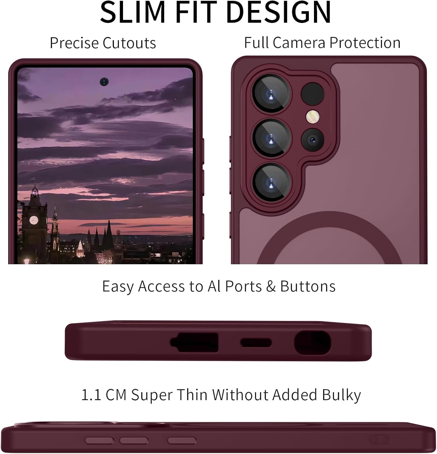 • Slim fit дизайн: стилният, тънък дизайн и мекият защитен материал осигуряват адекватна защита за вашия Samsung Galaxy S24 от драскотини, удари, пръстови отпечатъци и замърсявания. Вграденият мощен магнит позволява по-бързо и лесно безжично зареждане и сигурно закрепване към магнитни аксесоари. Също така перфектно се съчетава с други магнитни аксесоари.