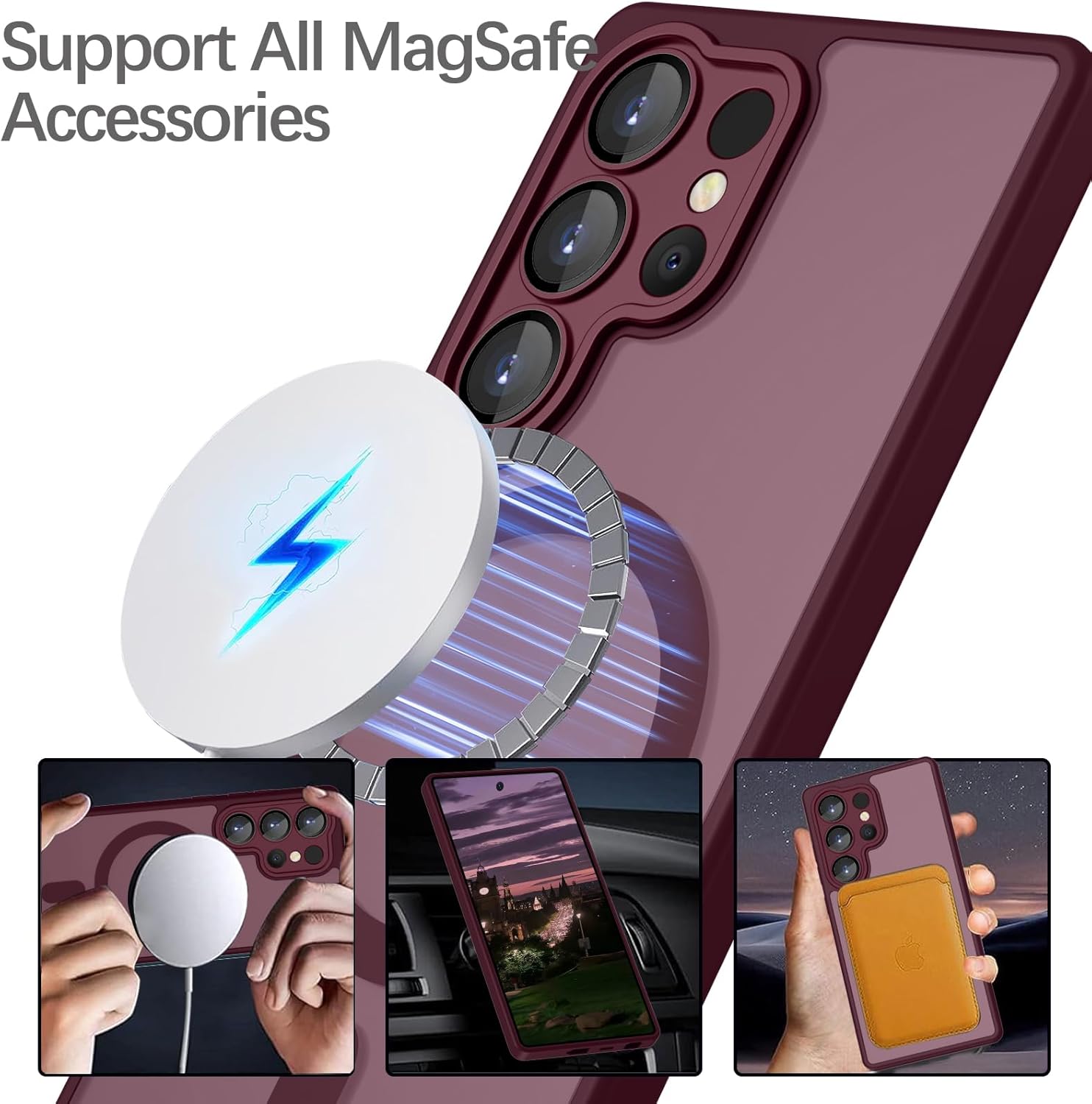 • Този калъф за мобилен телефон за Samsung Galaxy S24 е съвместим с магнитни аксесоари. С вграден магнитен пръстен, осигурява стабилно закрепване и по-бързо безжично зареждане.