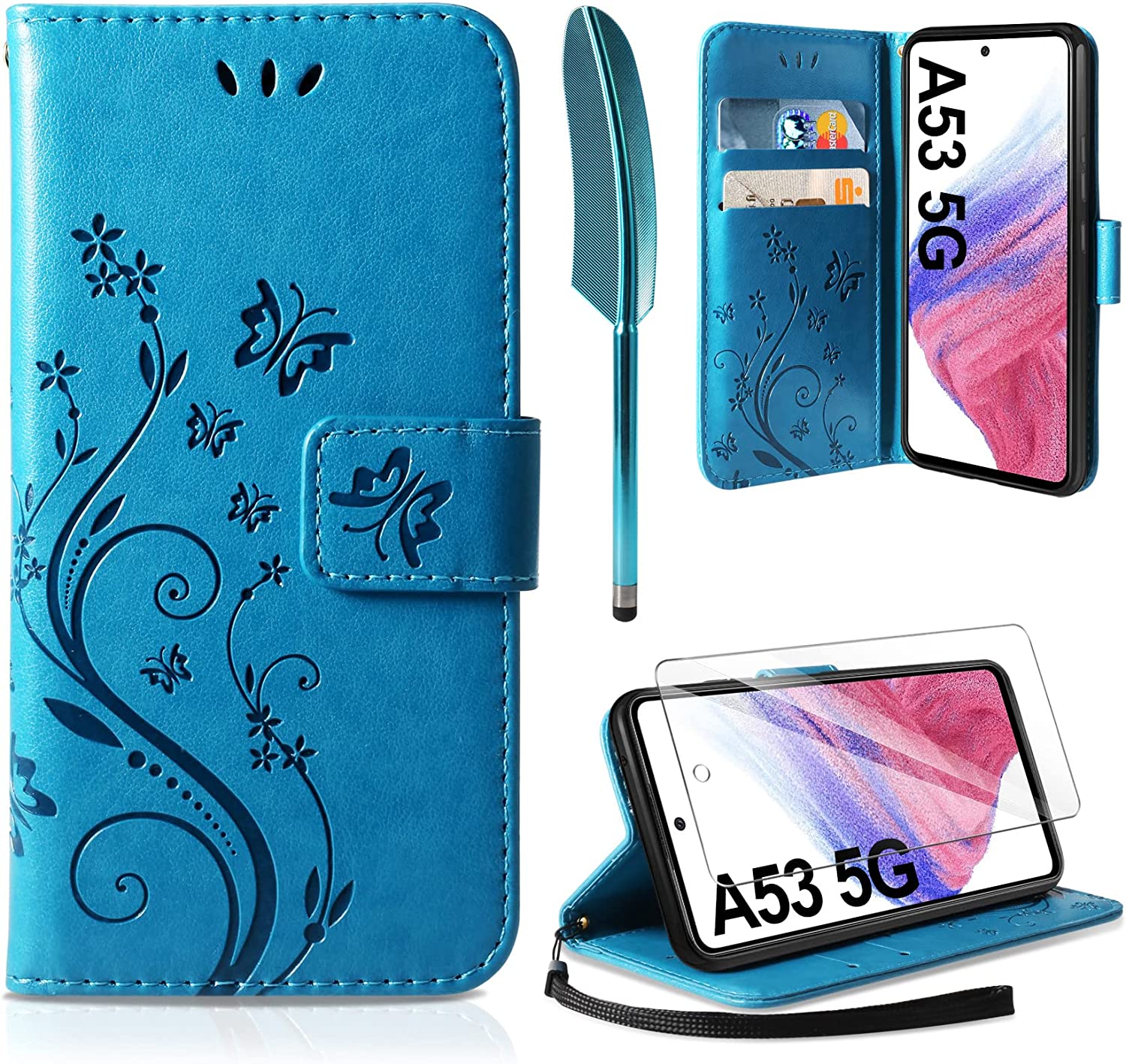 • Специално проектиран калъф за мобилен телефон, съвместим със Samsung Galaxy A53 5G. Пакетът включва: Кожен калъф за Samsung Galaxy A53 5G, протектор за екрана и сензорна писалка