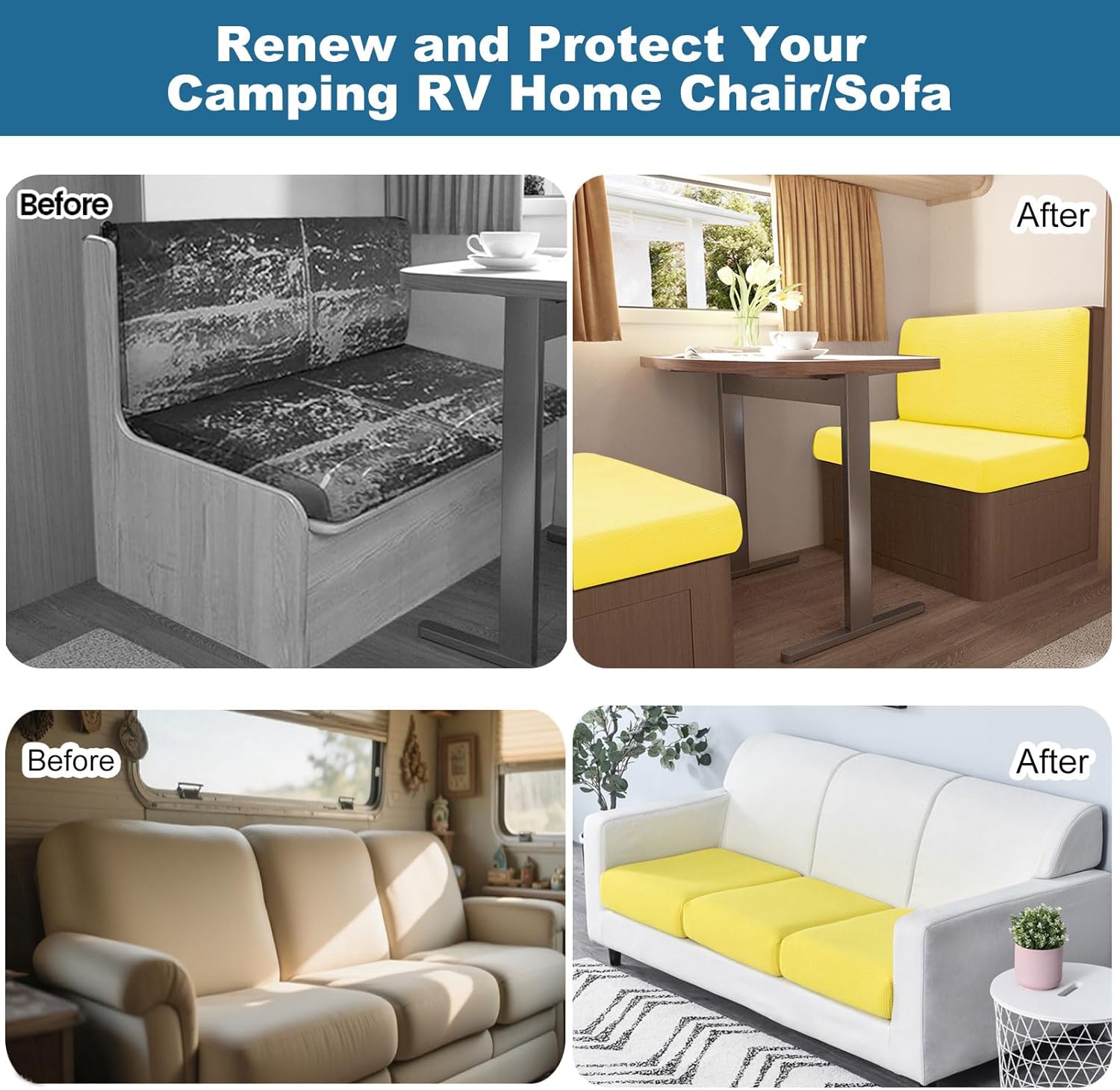 Калъф за възглавница за каравани и кемпери. Разтеглив жакардов калъф с еластична лента за облегалката, възглавницата на пейката и дивана за вътрешна и външна употреба (жълт, Д 150-190 см Ш 50-65 см)