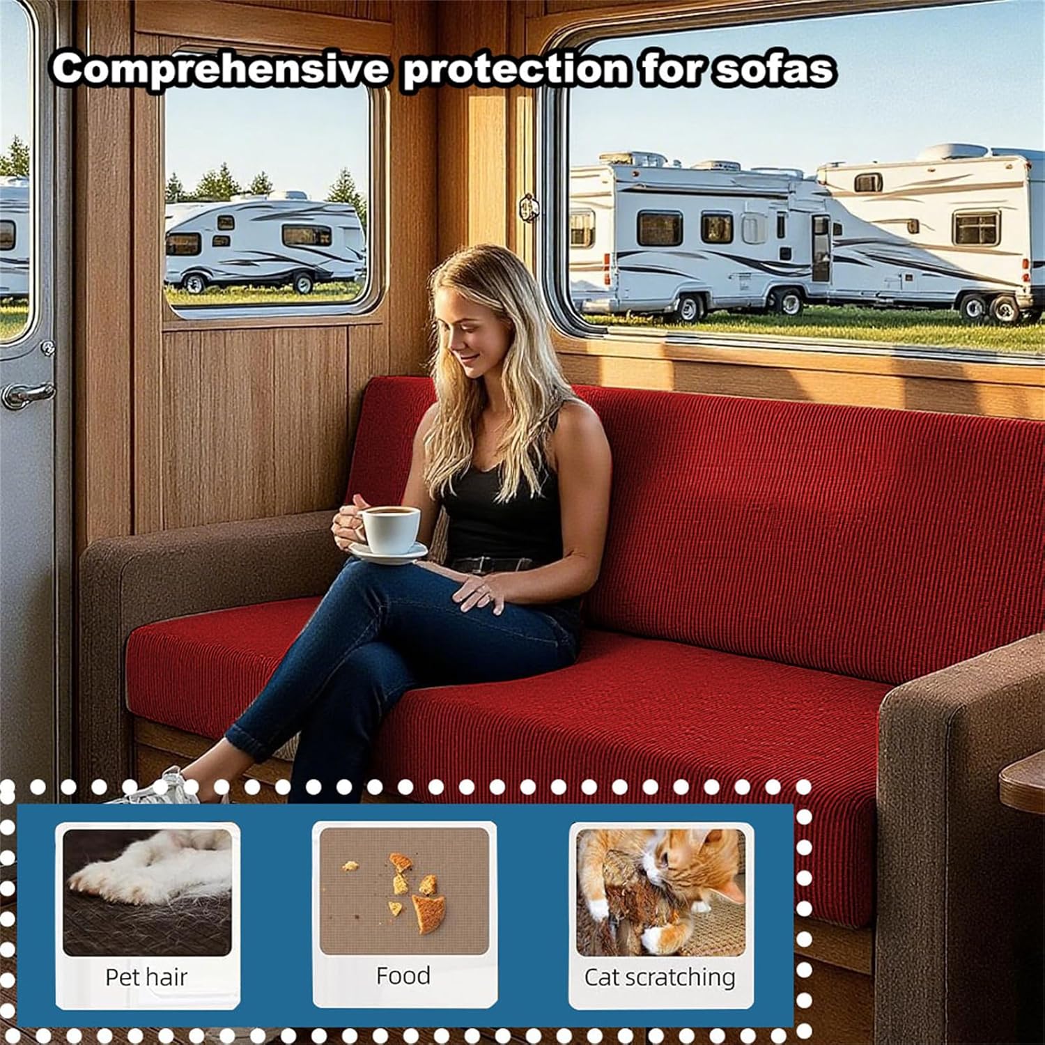 Калъф за възглавница за каравани и кемпери. Разтеглив жакардов калъф с еластична лента за облегалката, възглавницата за пейката и дивана за вътрешна и външна употреба (бордово червено, Д 230-280 см Ш 50-65 см)