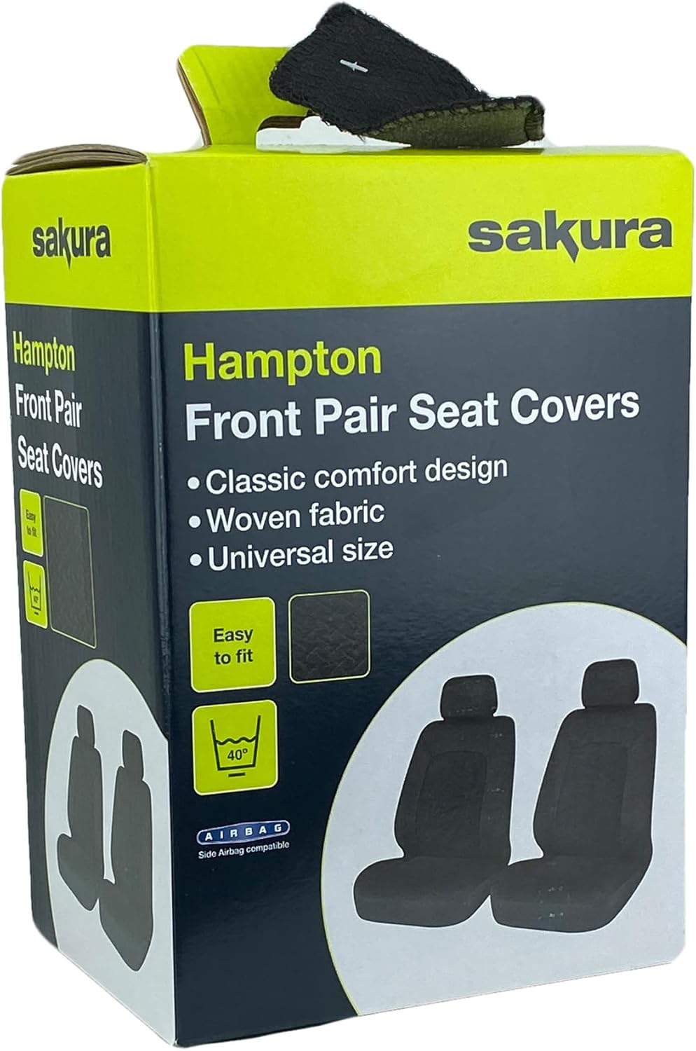 Калъфи за предни седалки Sakura SS5401 за кола и ван, Hampton, 1 чифт, черни, универсални, лесно поставяне