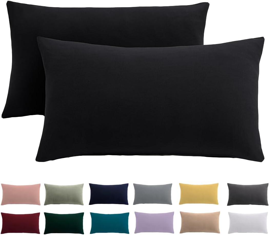 Калъфка за възглавница 30 x 50 см, Комплект от 2 - Калъфки за възглавници 30 x 50 см, Черна, за възглавници, 100% микрофибърна калъфка за възглавница, Не се глади и не се намачква с цип