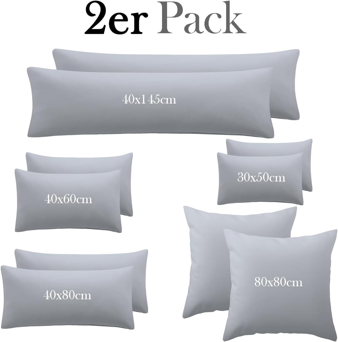 Калъфка за възглавница 40 x 80 см, Комплект от 2 - Калъфки за възглавници 40 x 80 см, Сиви, 100% микрофибърни калъфки за възглавници с цип, Меки и удобни