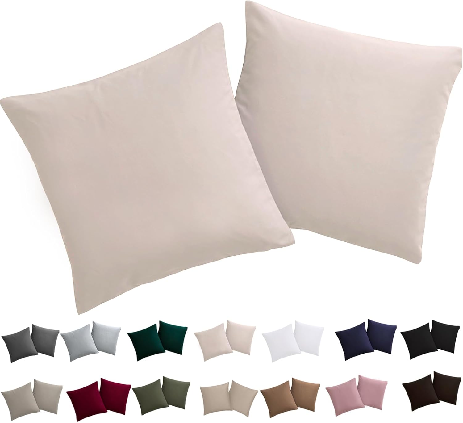 Калъфка за възглавница 80 x 80 см, Комплект от 2 - Калъфка за възглавница 80 x 80 см, Бежова, 100% микрофибър, Не се глади и не се намачква с цип
